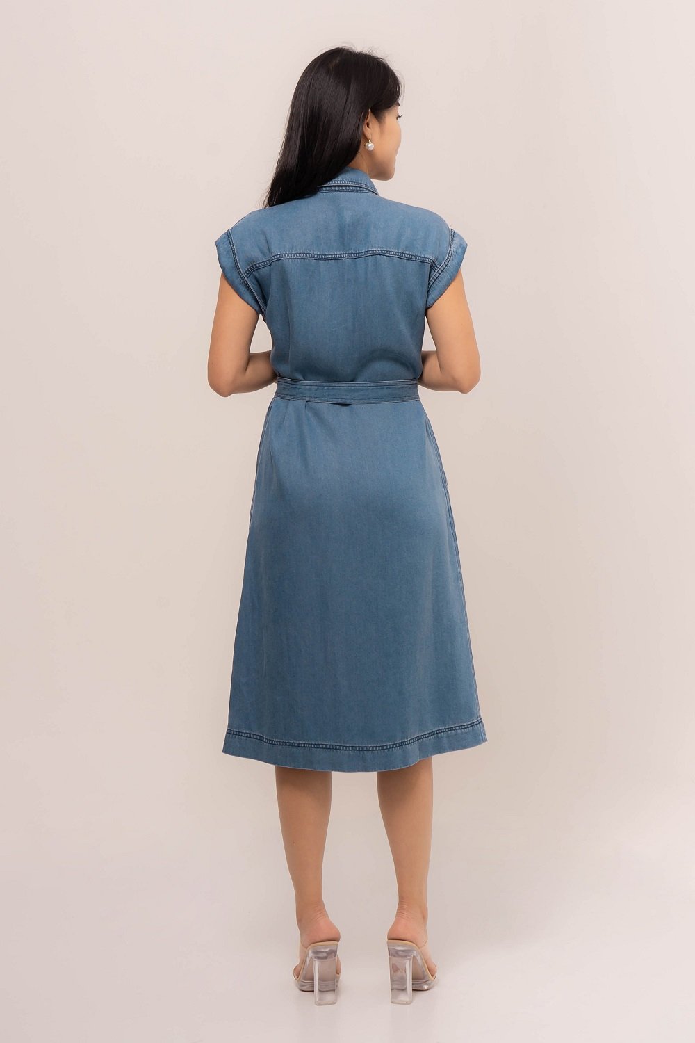 Effortlessly stylish from shoulder down, this denim Aglea Denim Dress is your go-to for laid-back sophistication.