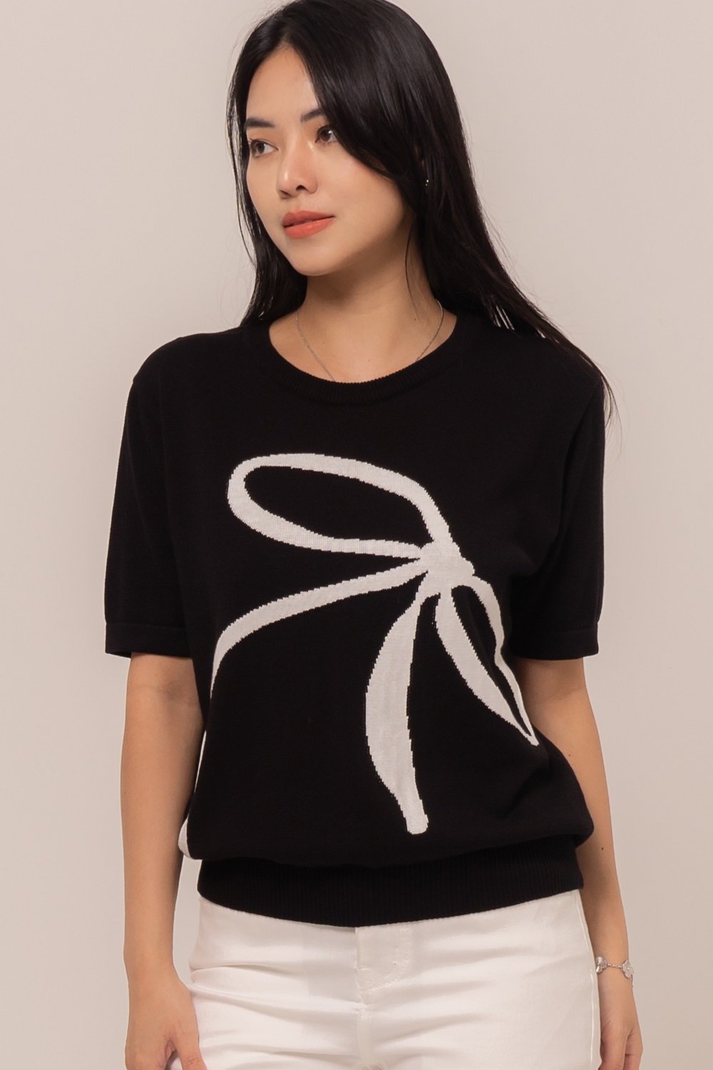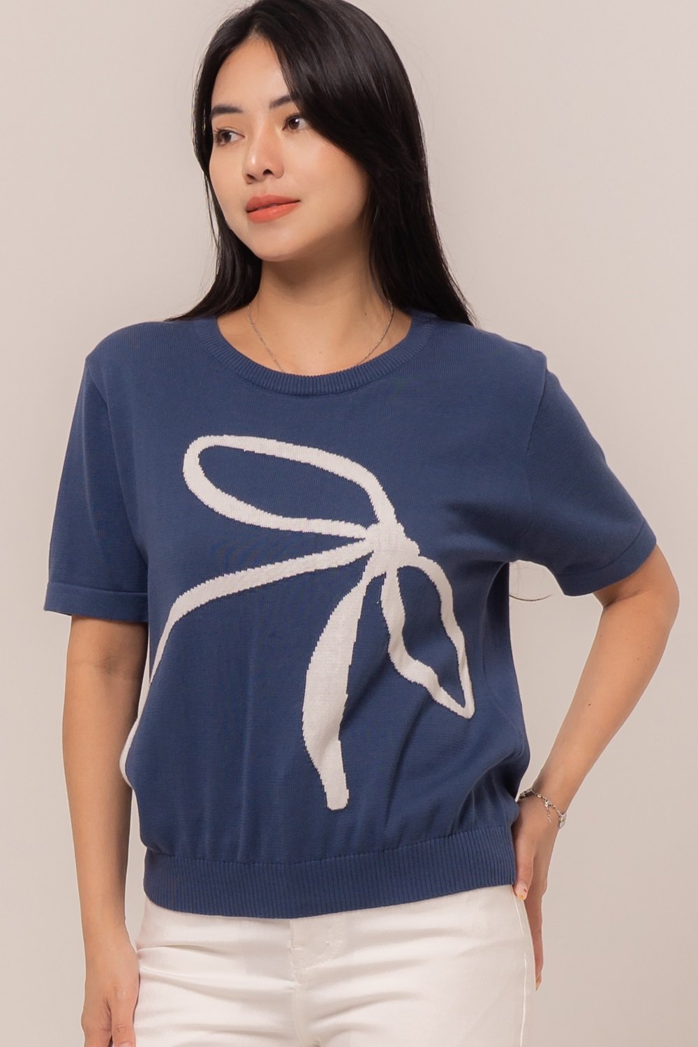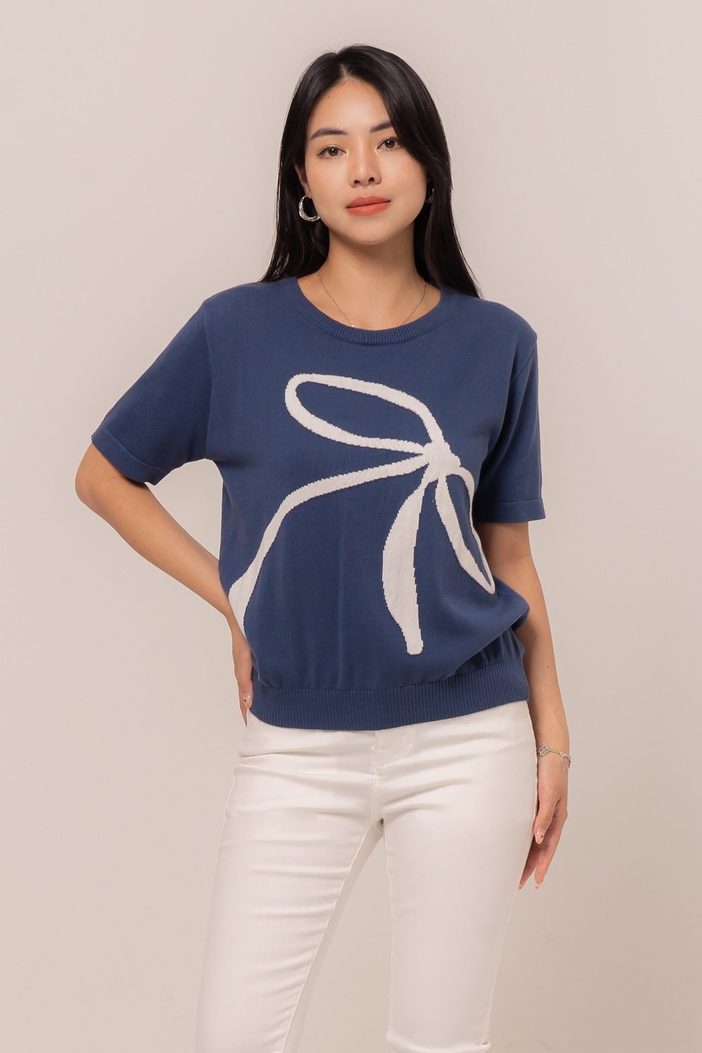 An Agnesha Top makes you comfortably! Adorned in simple details, this knit top will be your favourite!