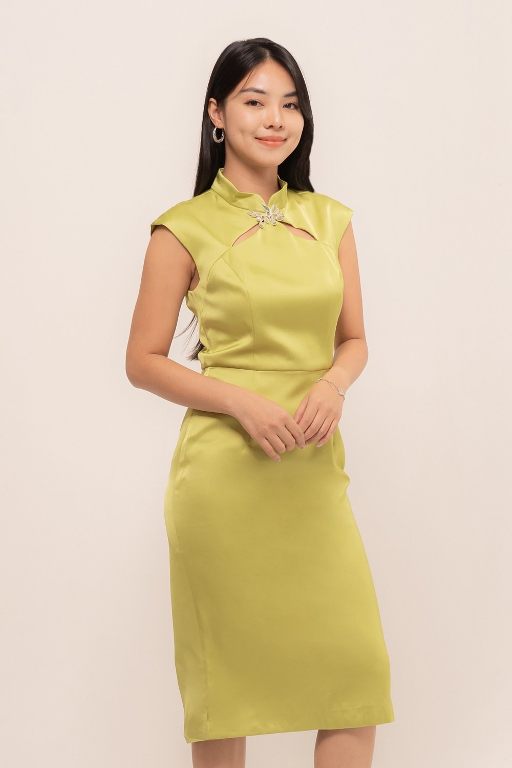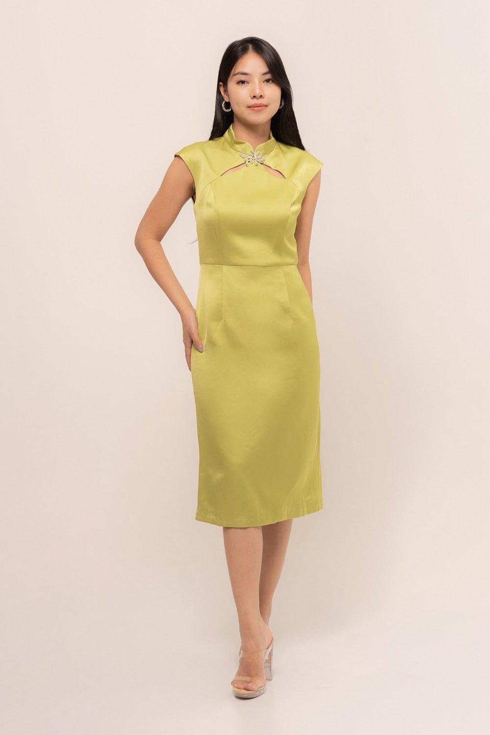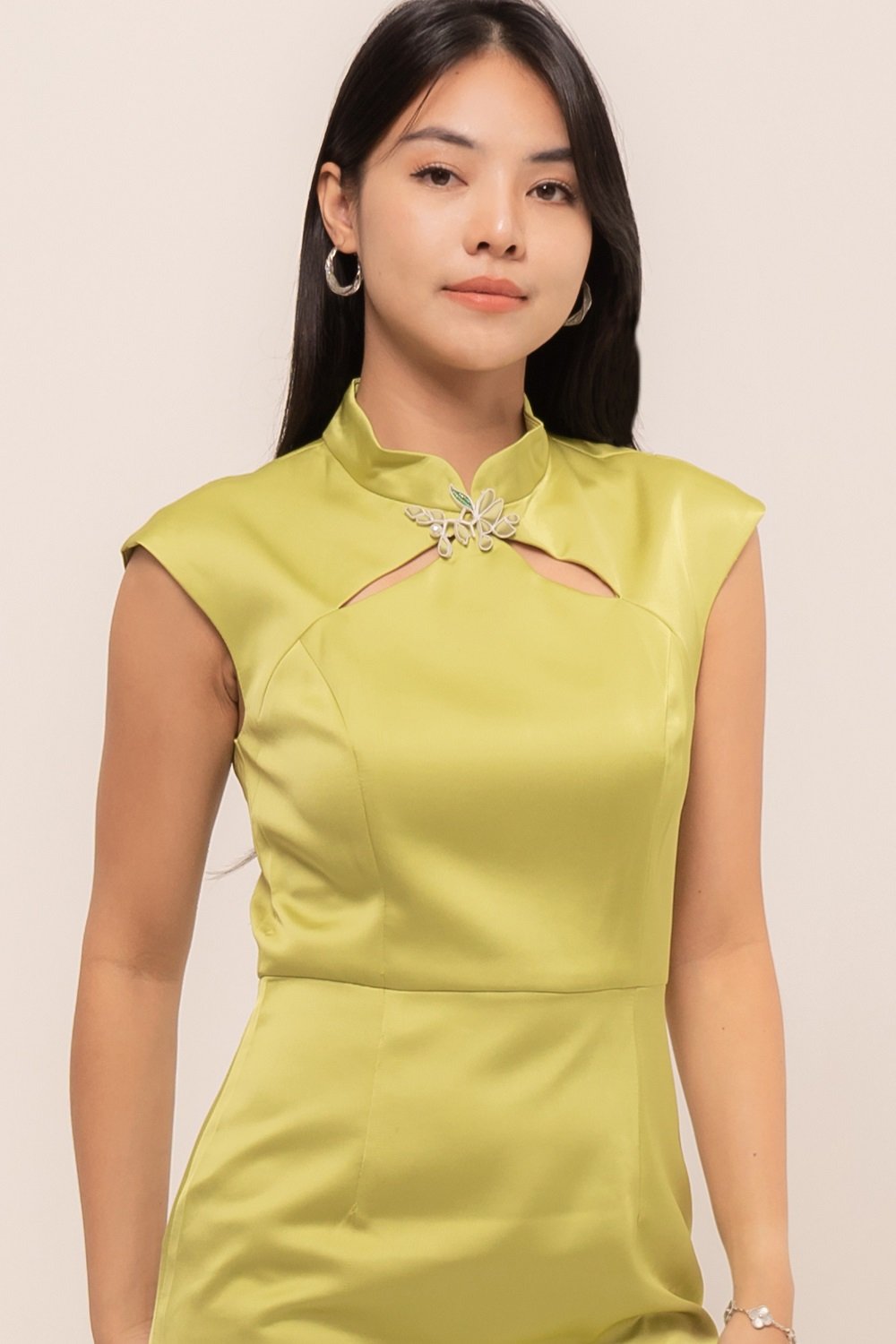 -Kancing mandarin dengan manik menawan pada bagian depan