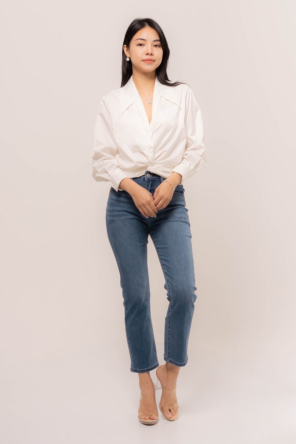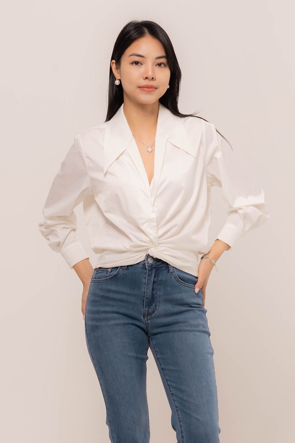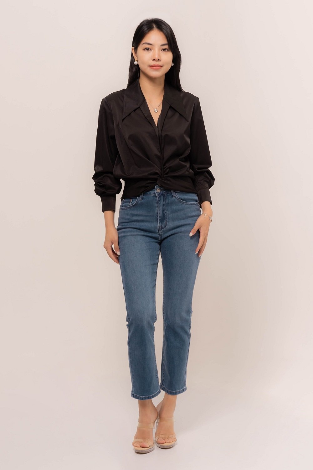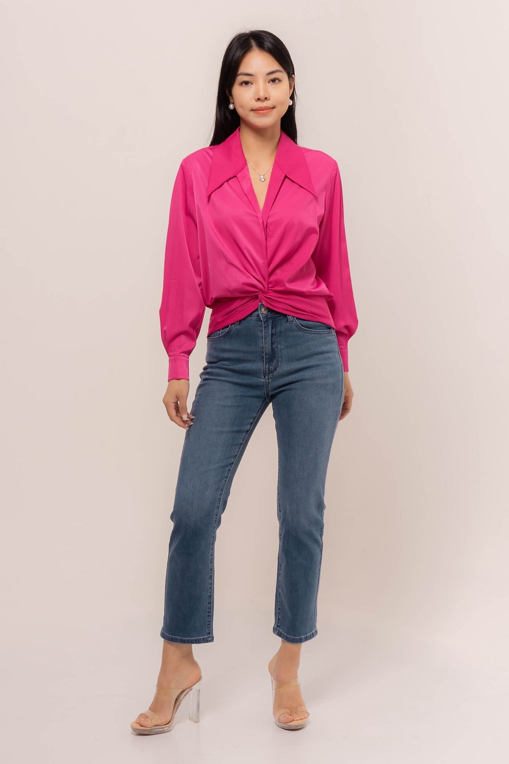 Get ready for the long day. Kaeryn Long Sleeves Top gathers at the bottom twisted to complement any body shape