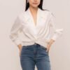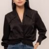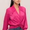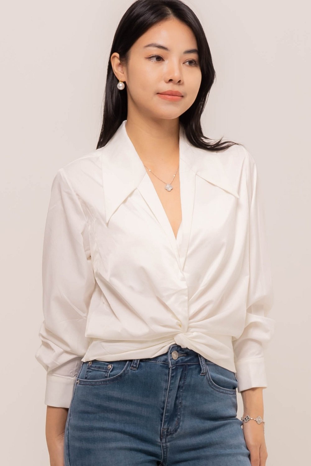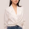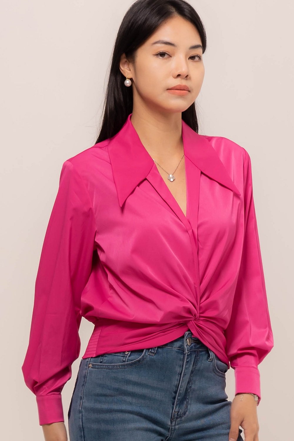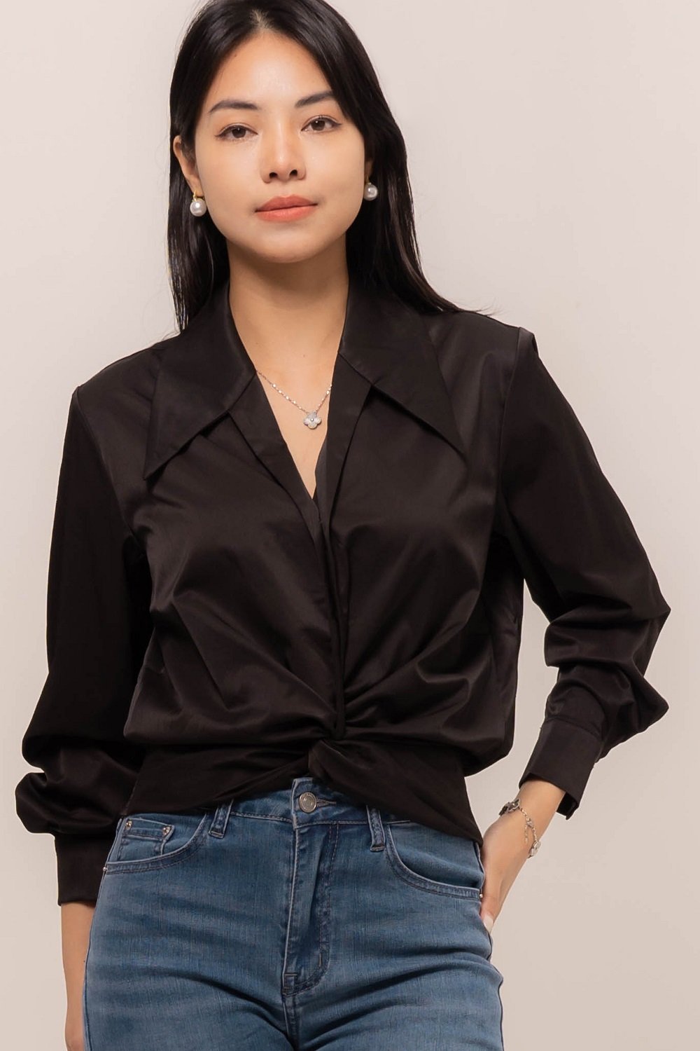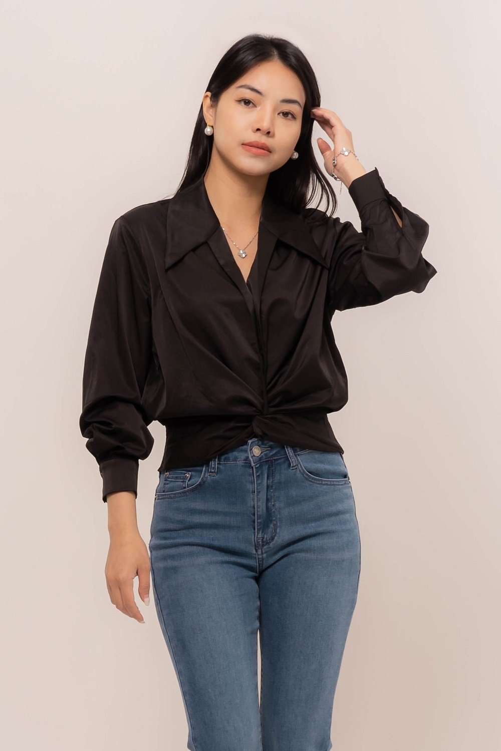 Get ready for the long day. Kaeryn Long Sleeves Top gathers at the bottom twisted to complement any body shape