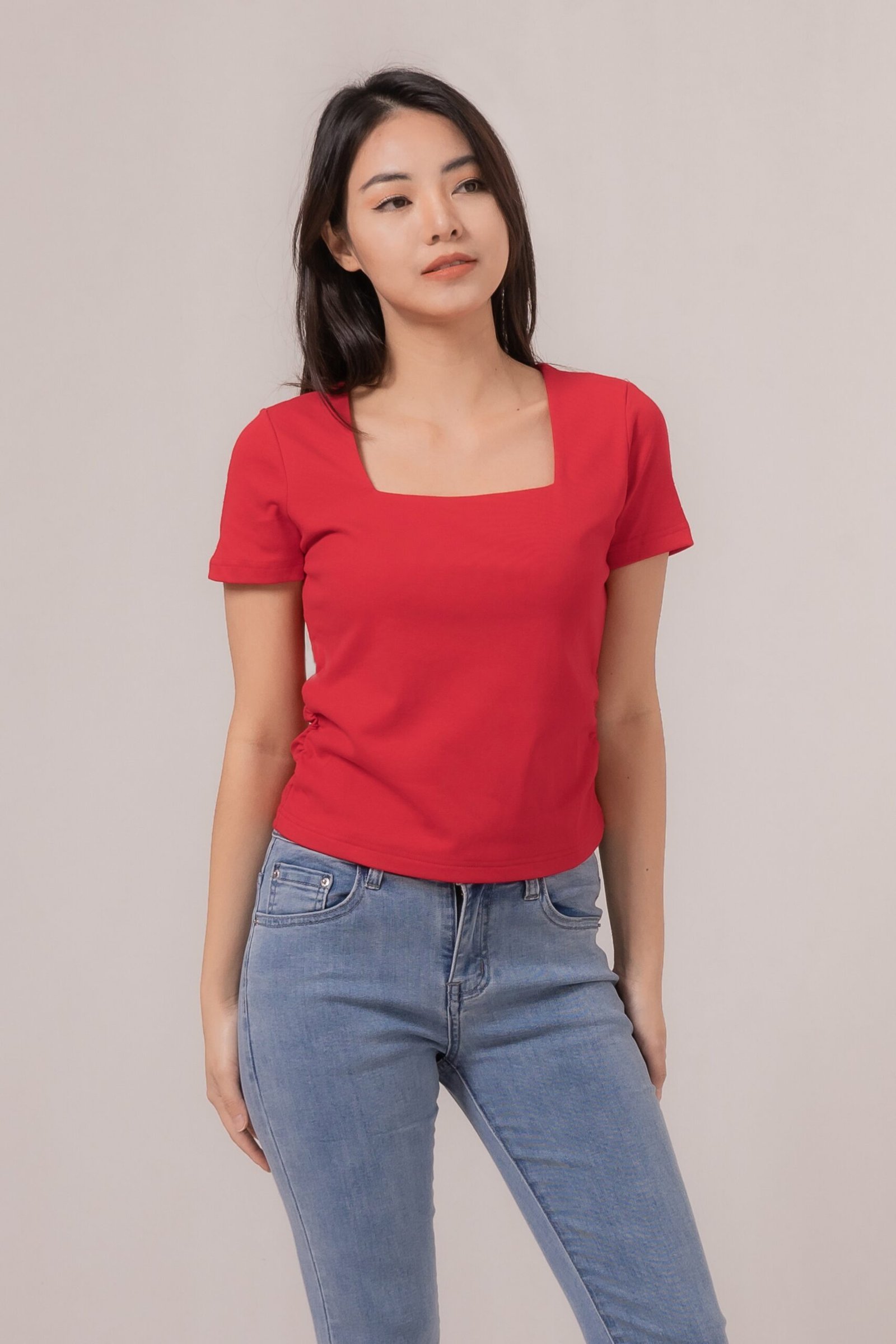 -Detail square neck yang menawan