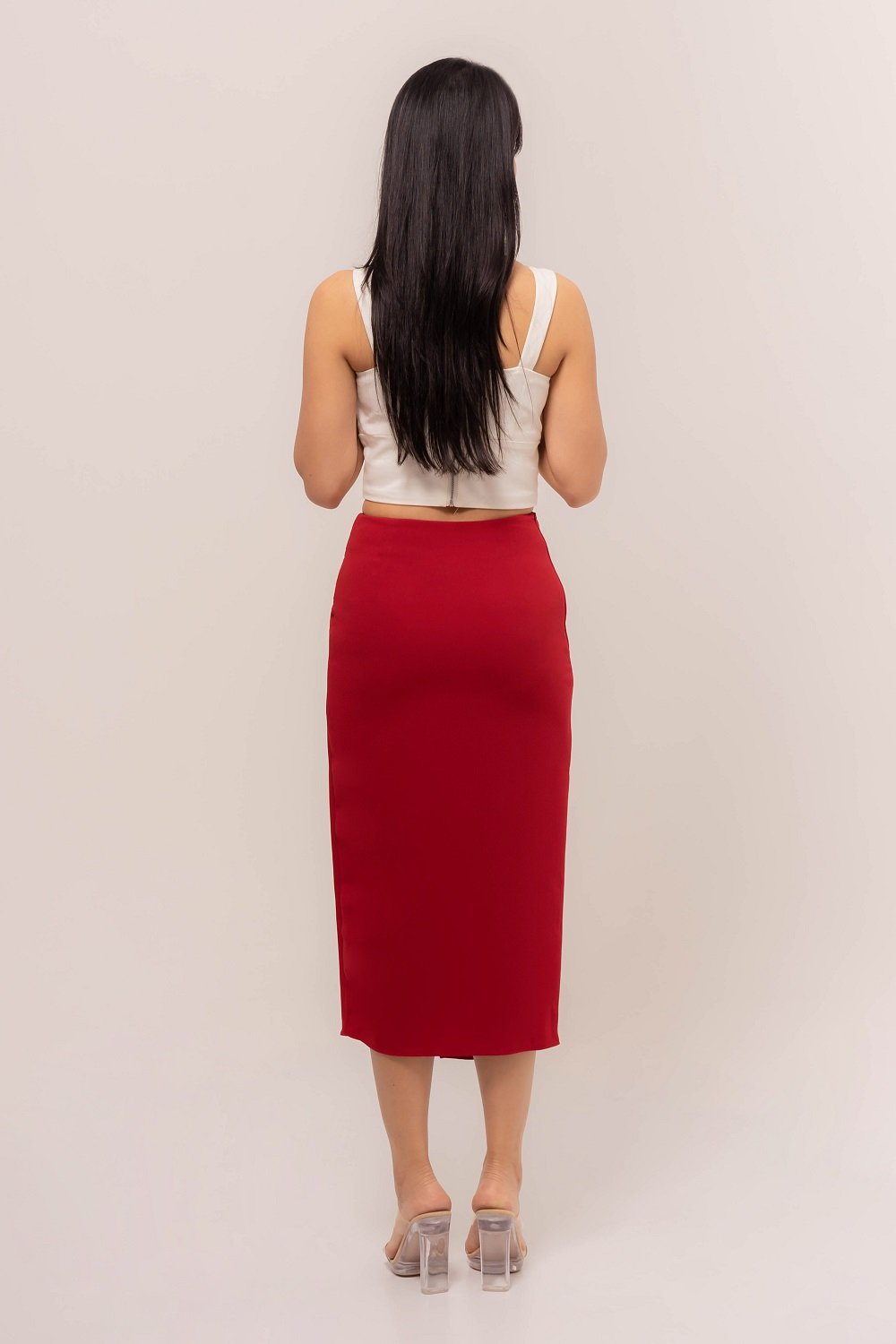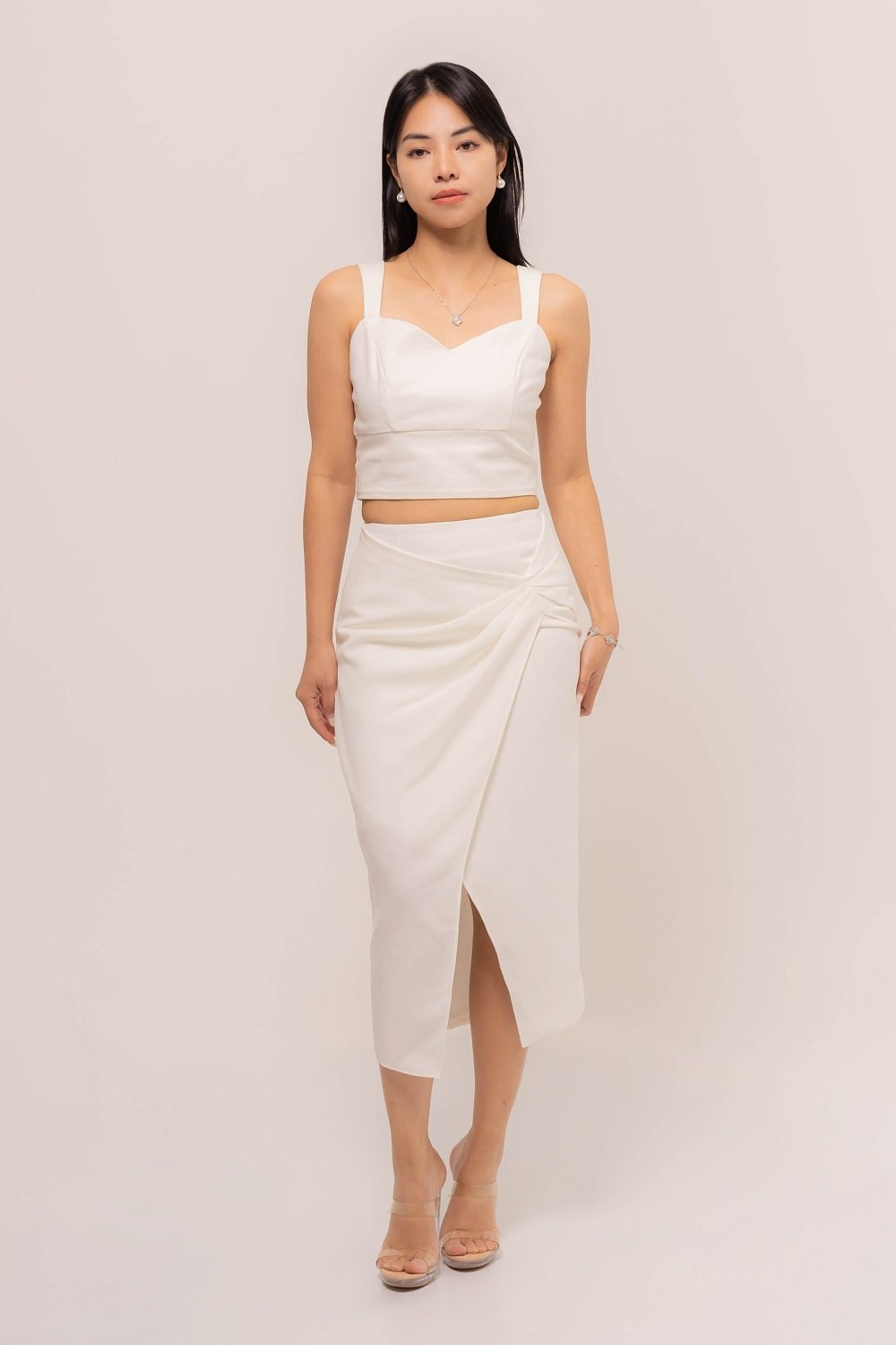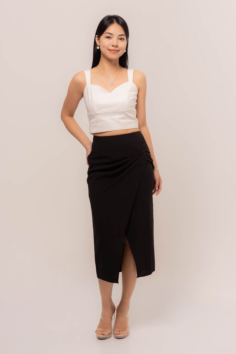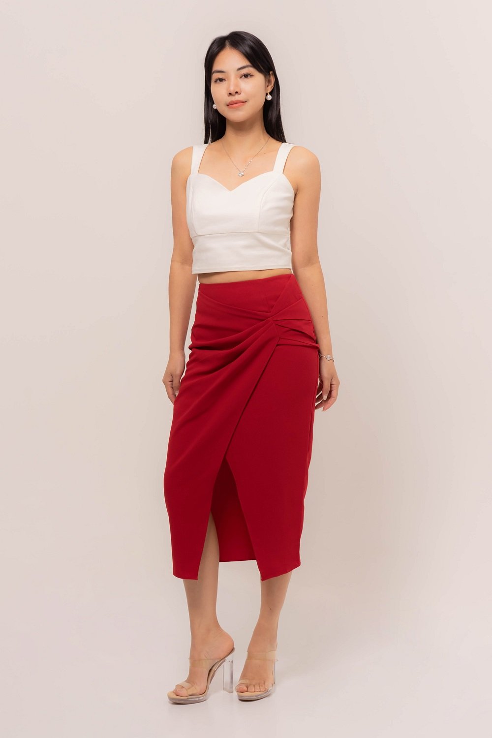 Elegant and effortlessly feminine, this Carina Side Draped Skirt is designed to flatter your silhouette with chic front slit.