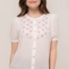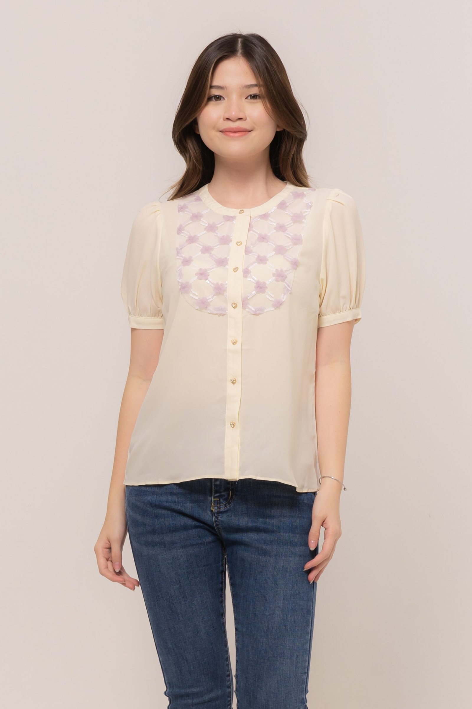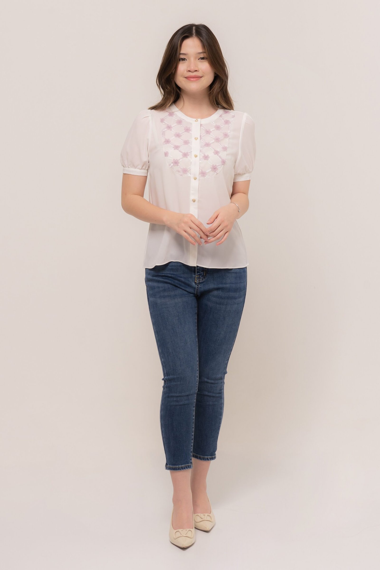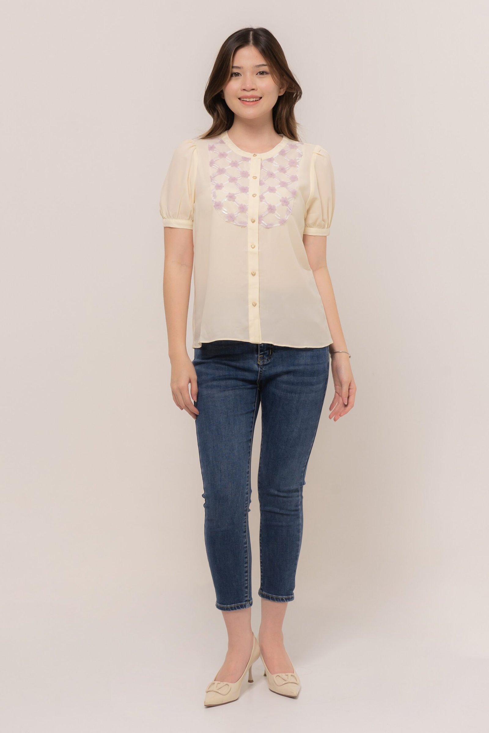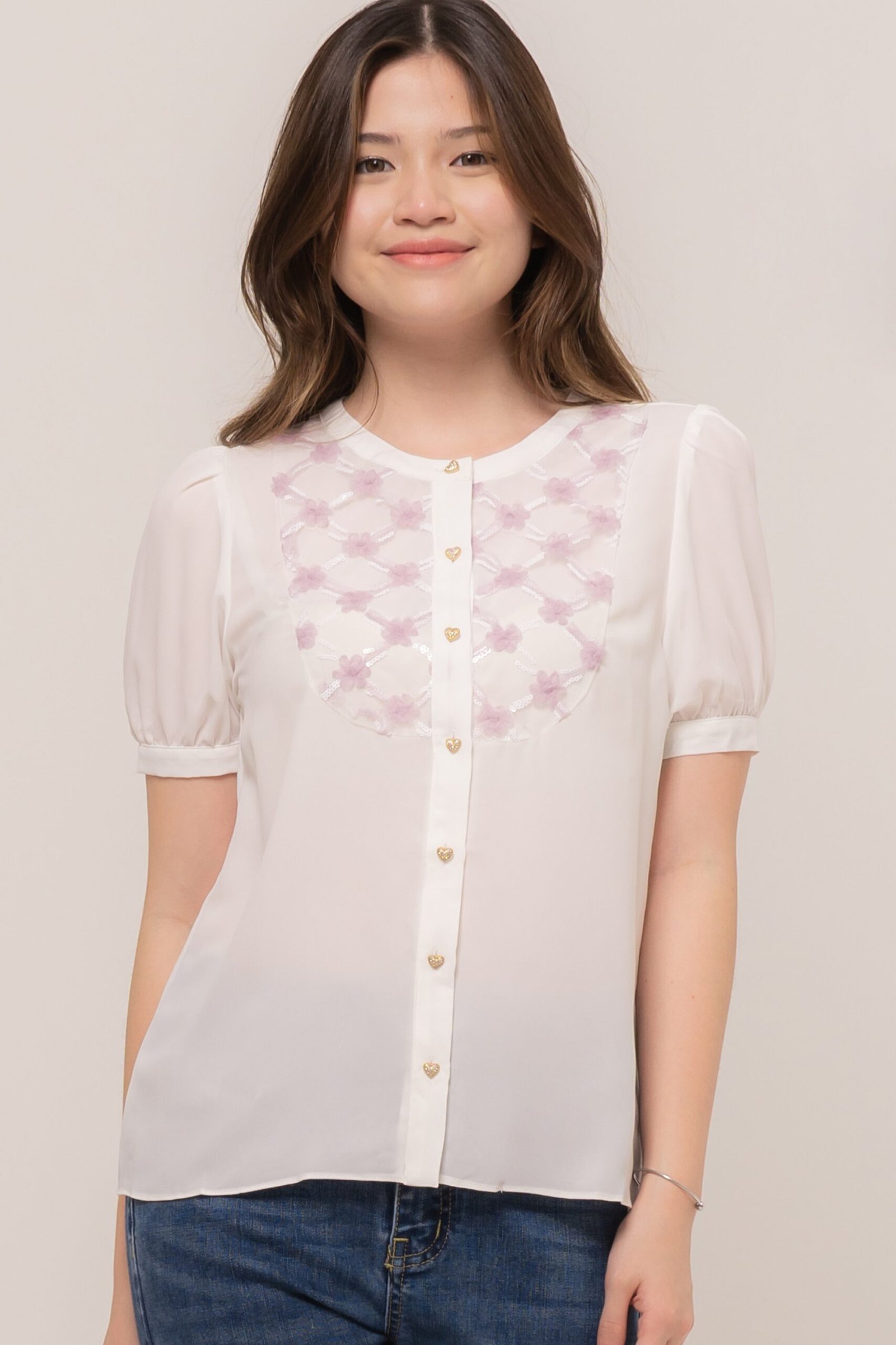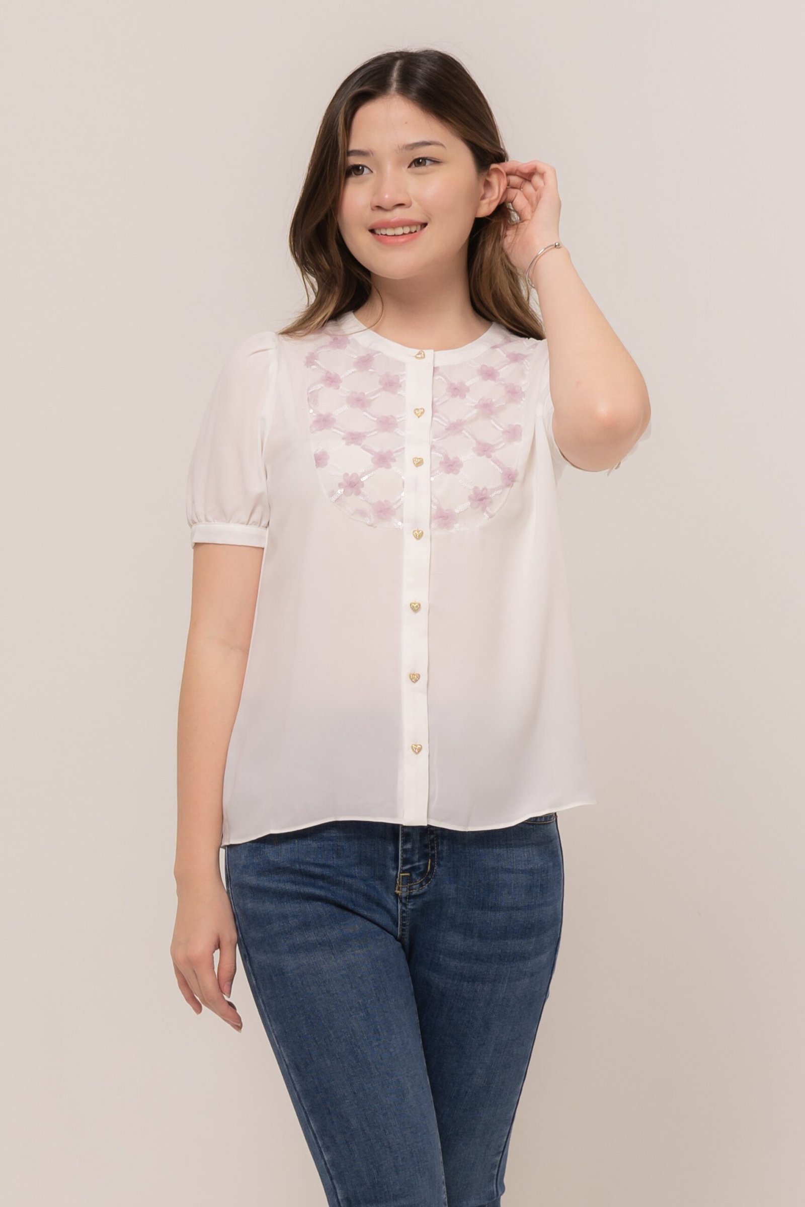 Wear something casual but make a statement everywhere with our Carlotta Top, featuring the beautiful flower at the front