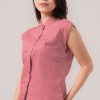 An essential for the office, this top features functional buttons down the front adn cap sleeves