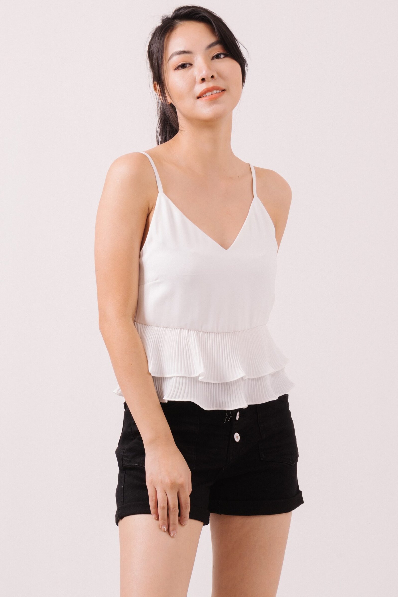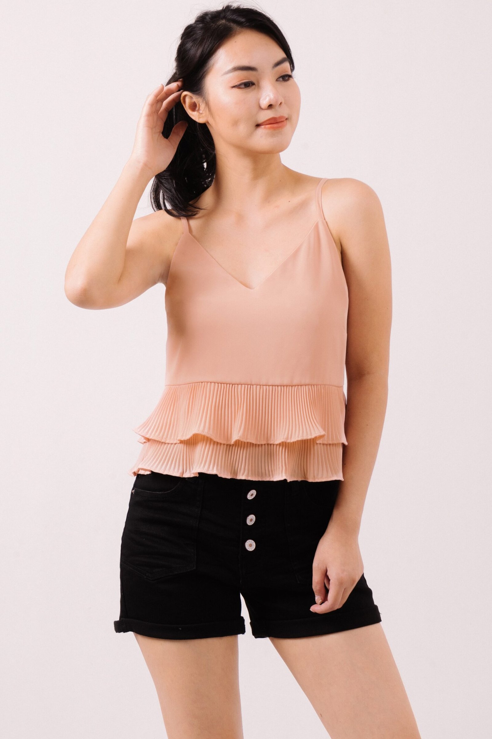 Masuk ke suasana akhir pekan dengan ruffle dan pleats yang menyenangkan.Tali yang bisa disesuaikan dengan slider.