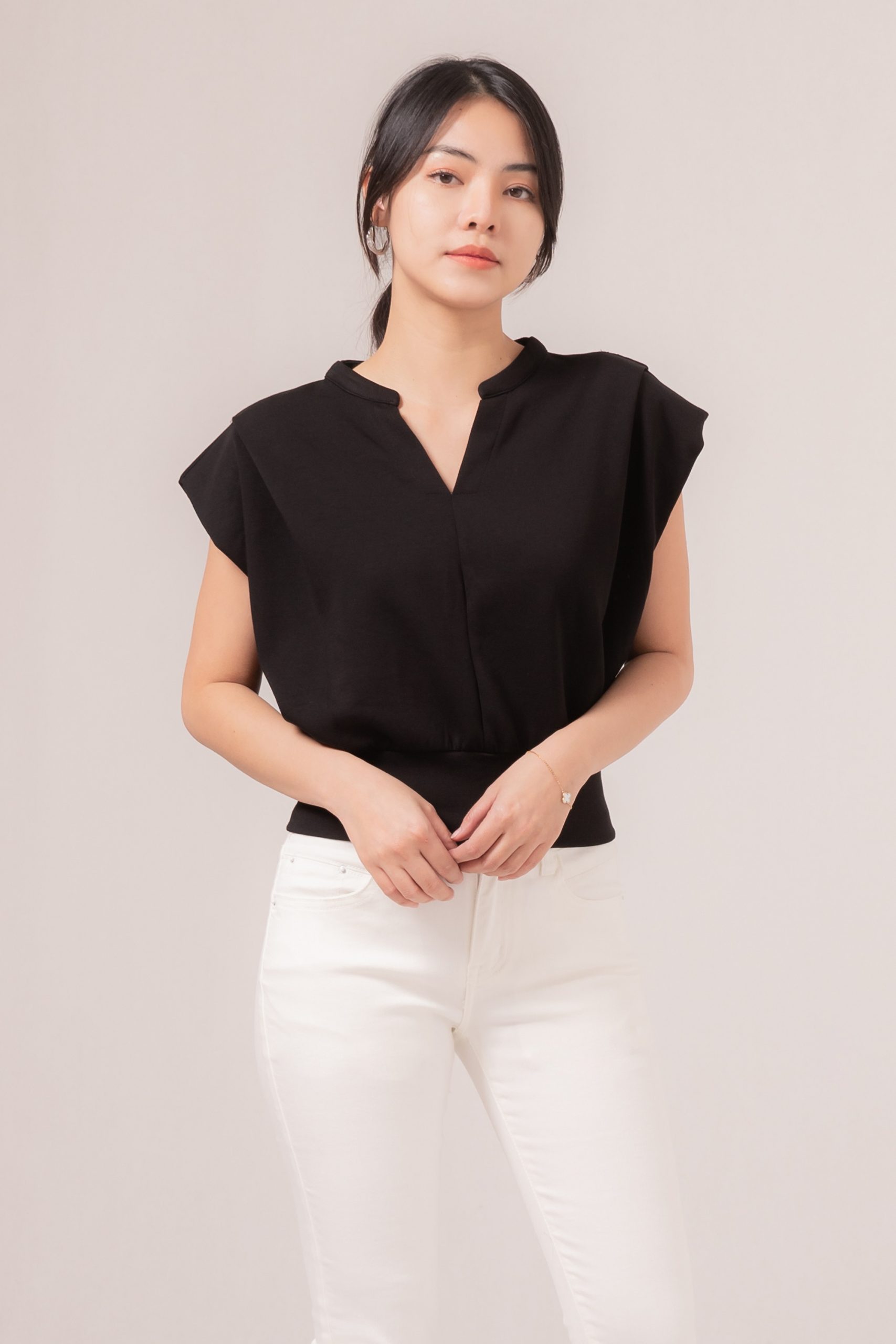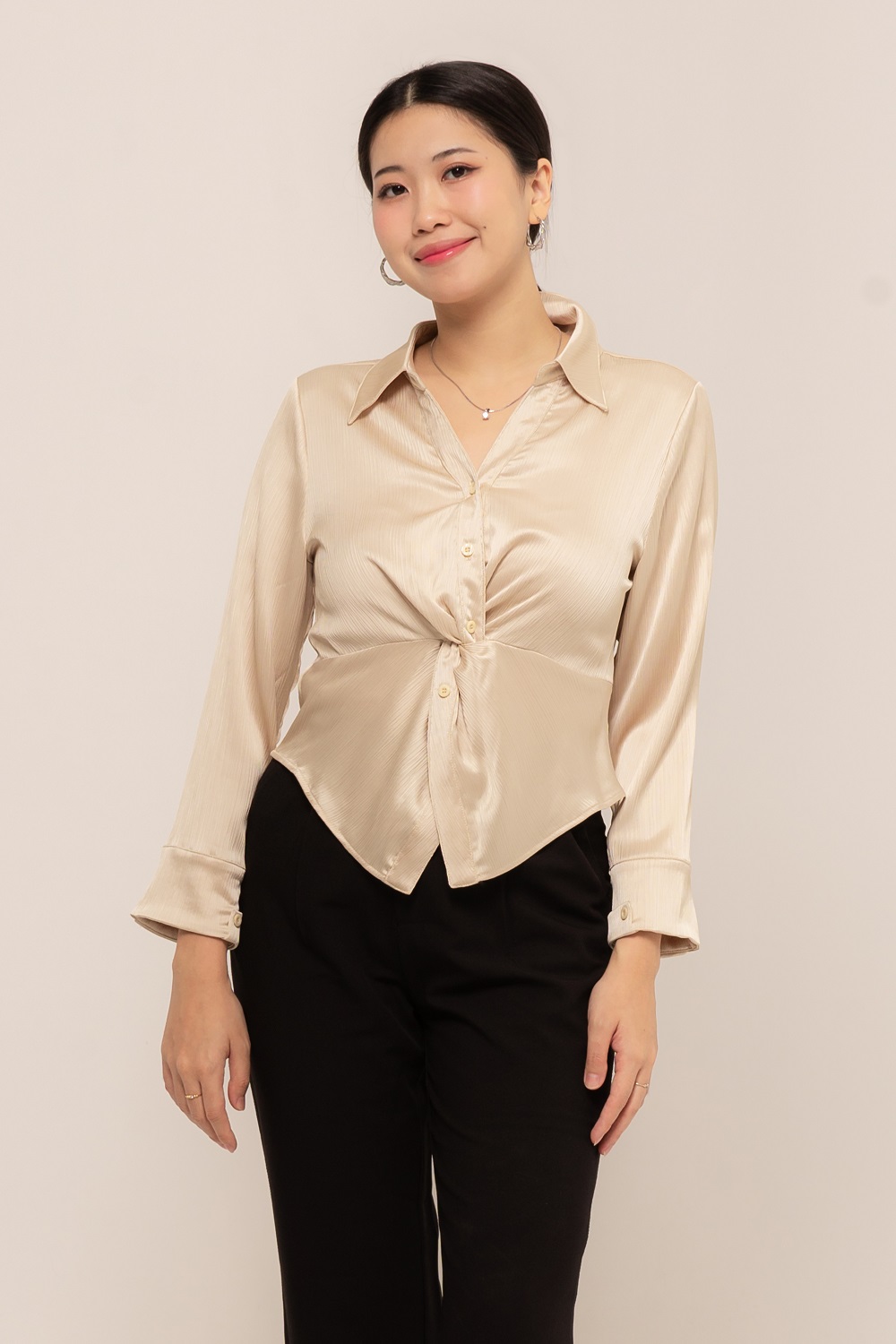 -Kancing fungsional yang menawan pada bagian depan dan lengan
