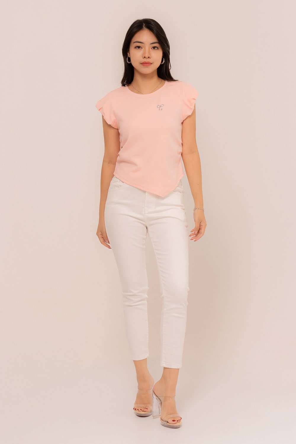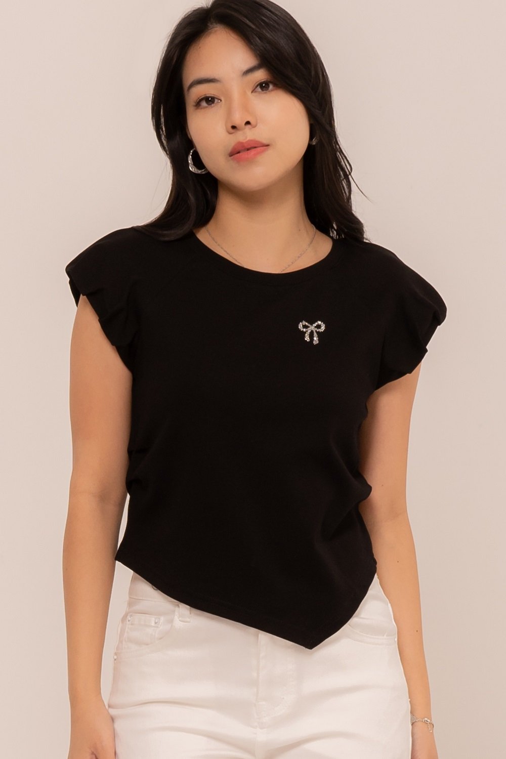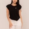 The top features elegant draping that creates a beautiful asymmetrical silhouette, Dizza Top.
