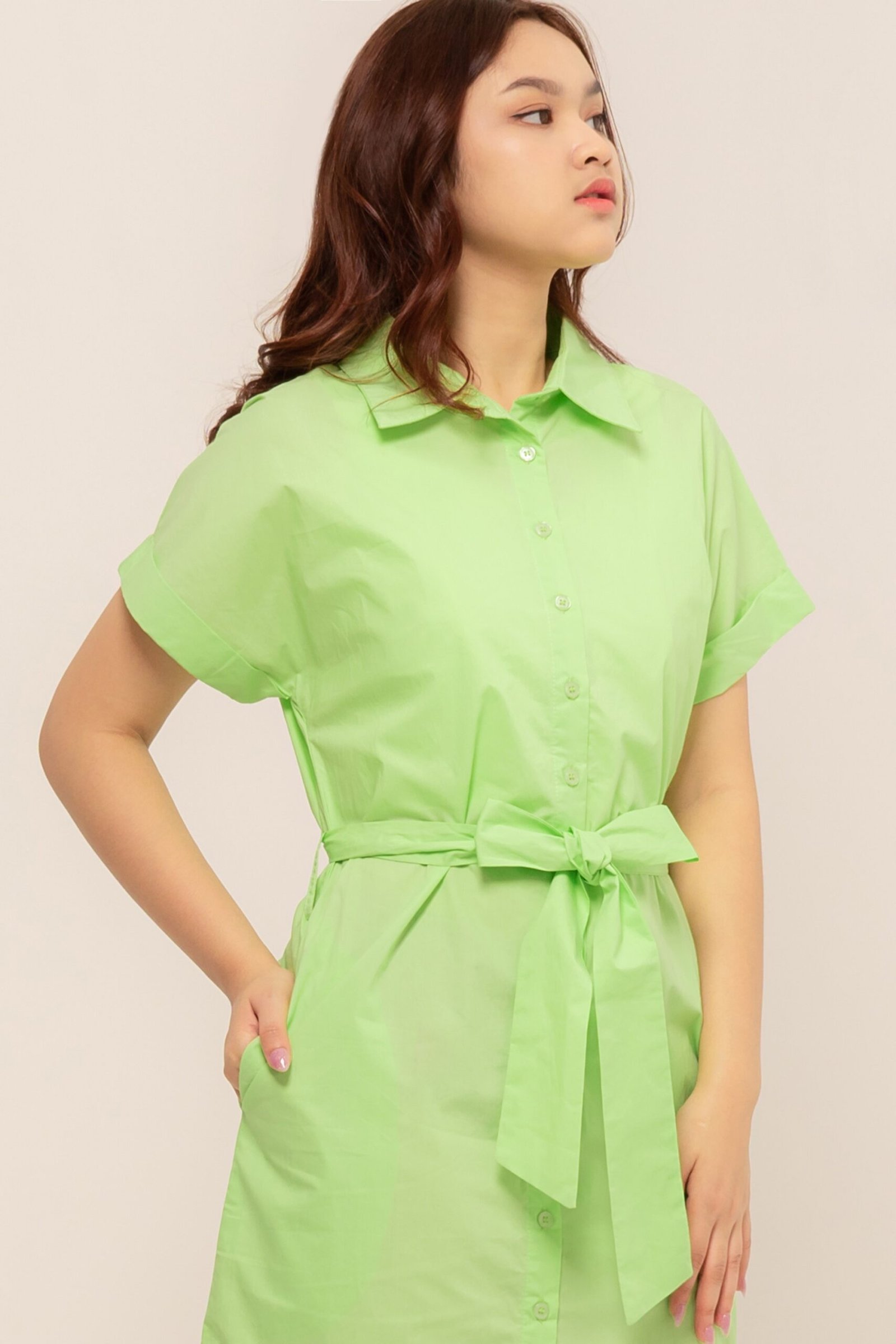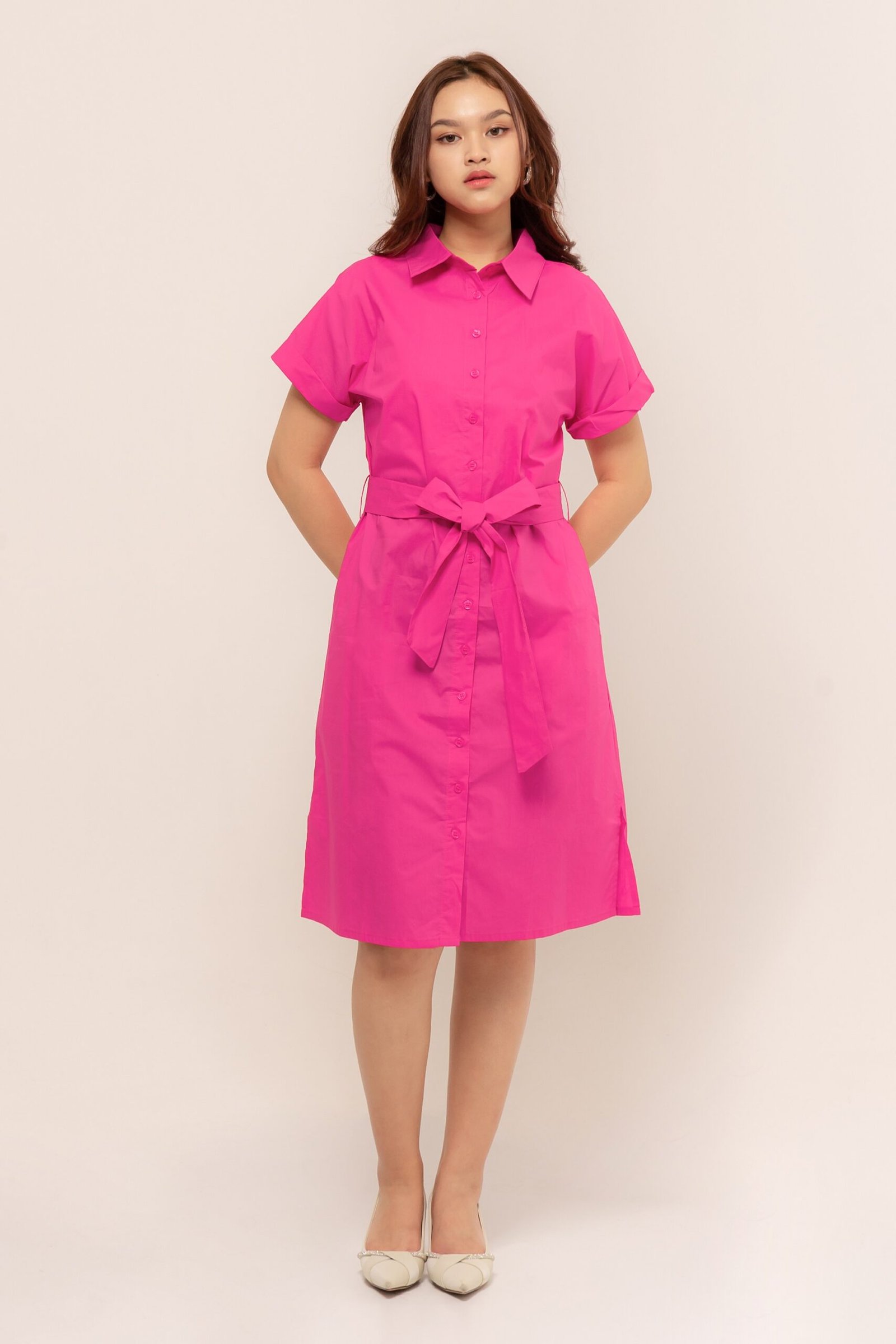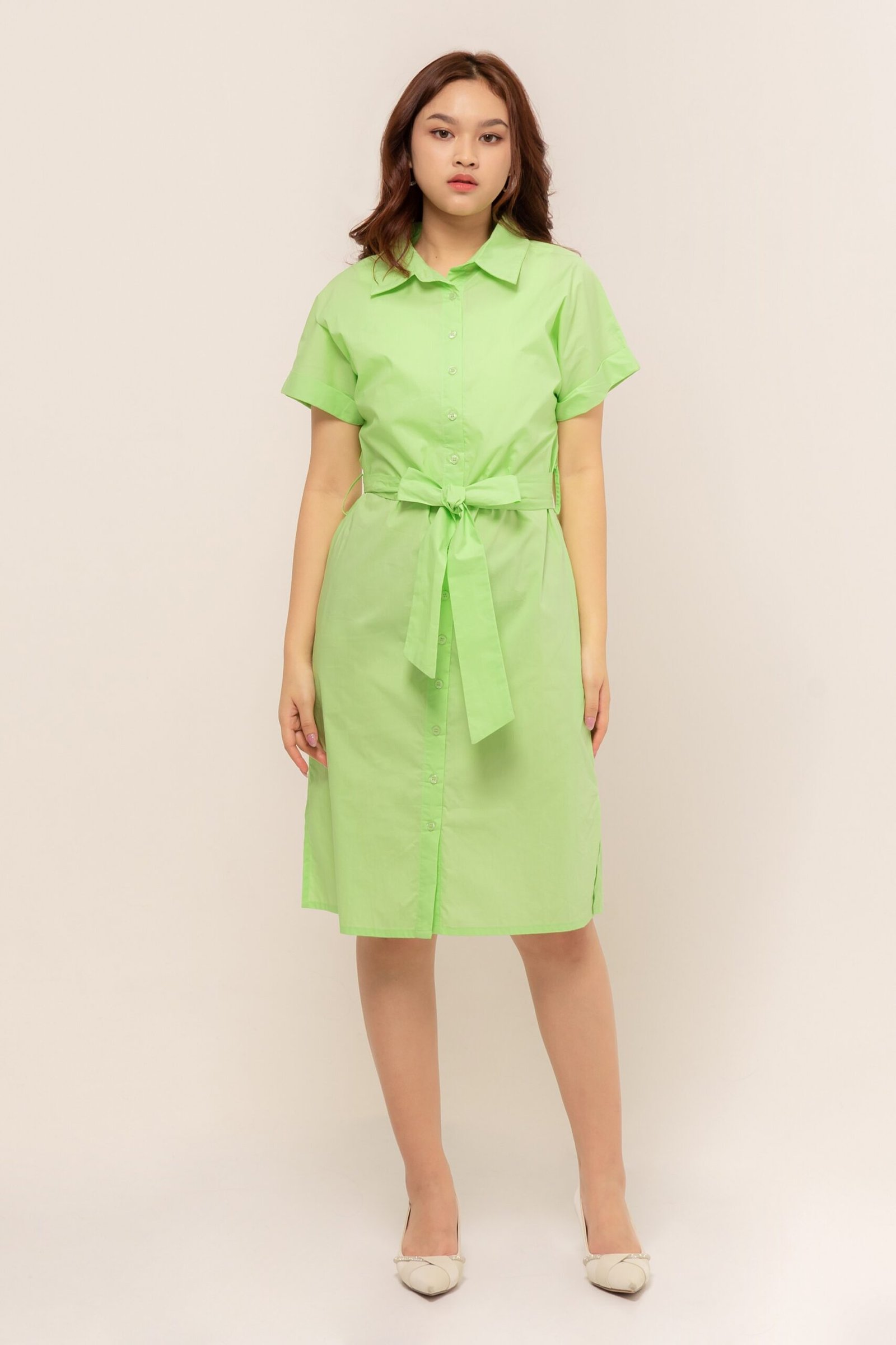 Detail v-neck dress yang sangat cantik, padukan dengan heels atau sneakers favoritmu untuk tampilan maksimal