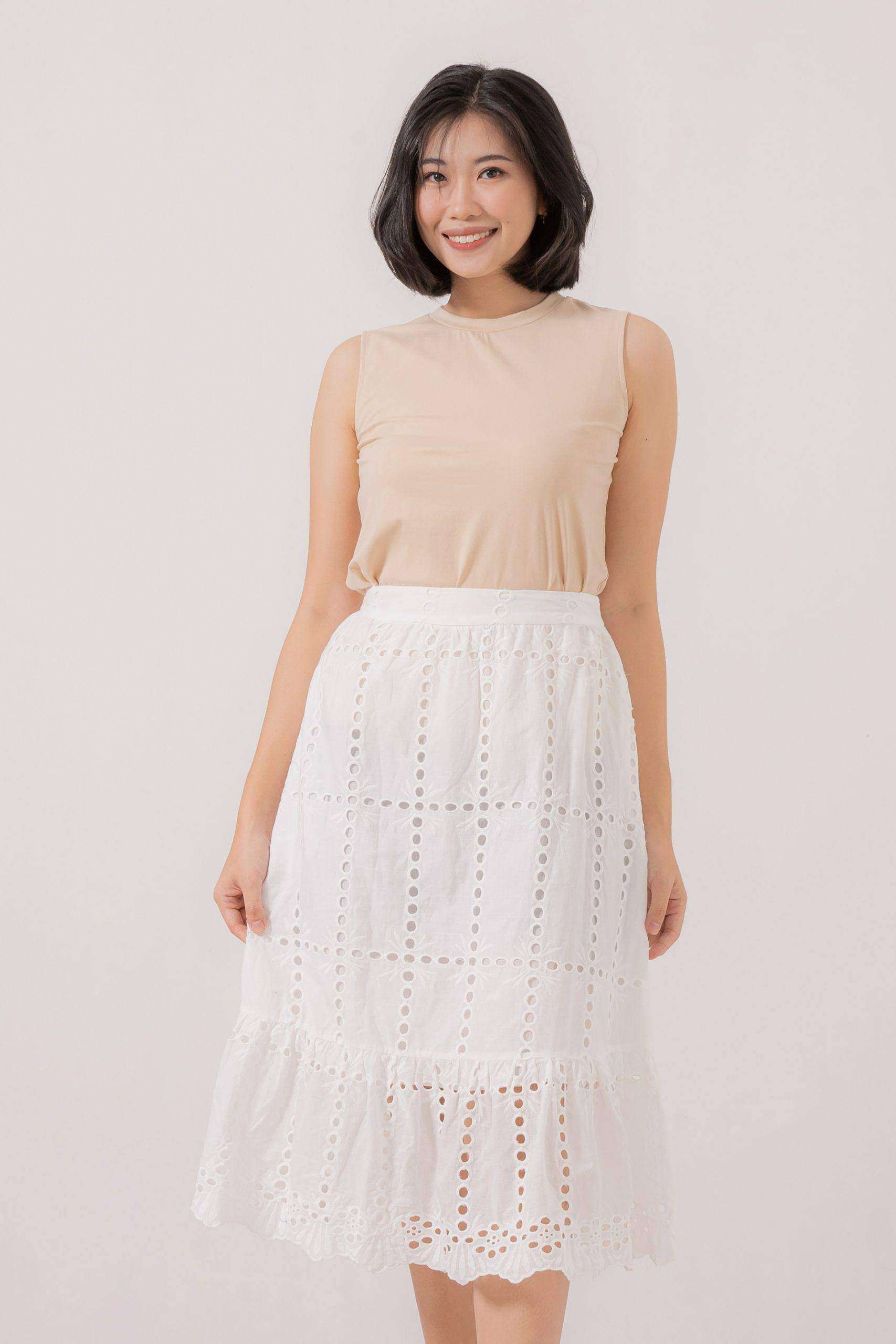 -Detail anglaise yang manis pada bagian lengan dan bawah dress
