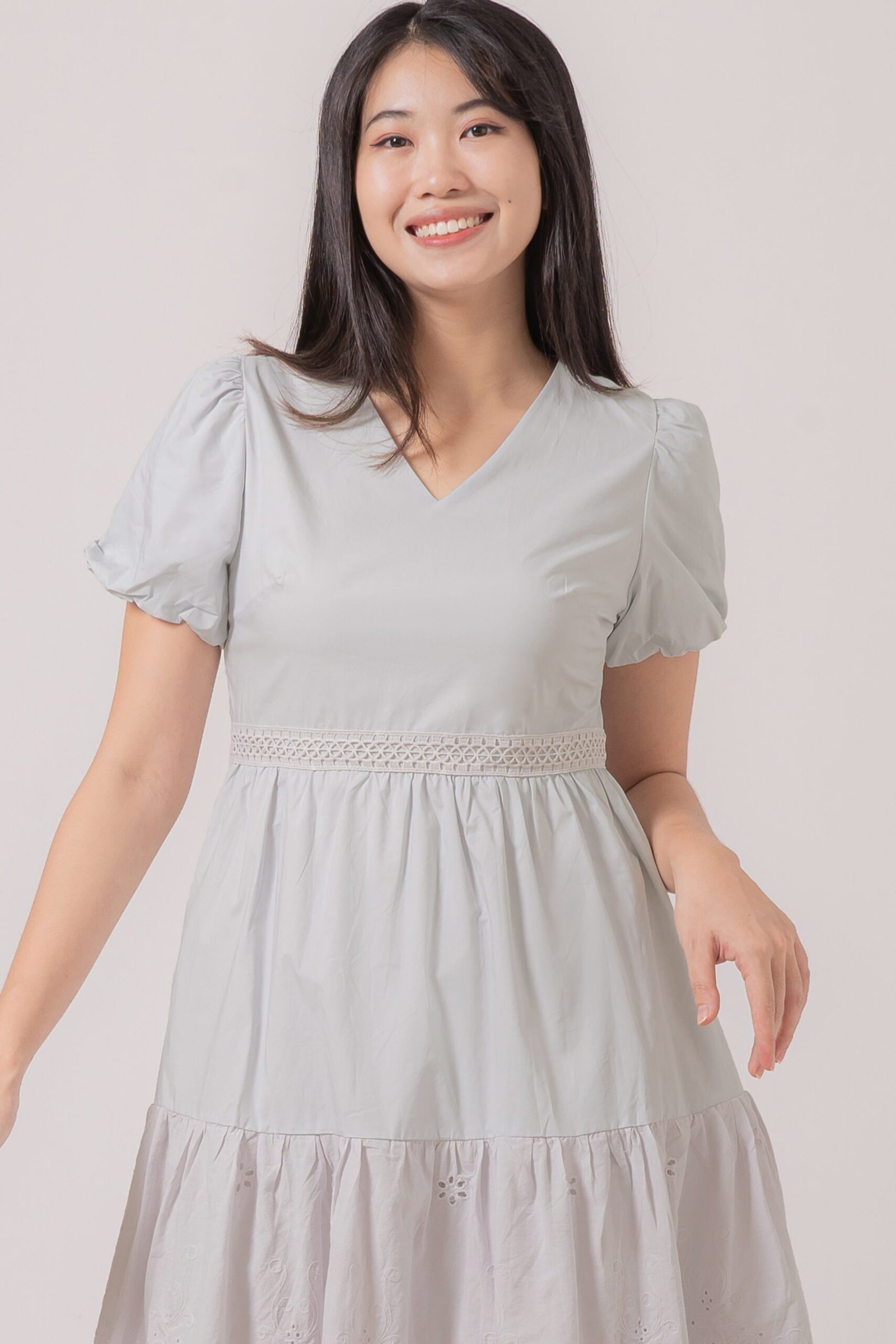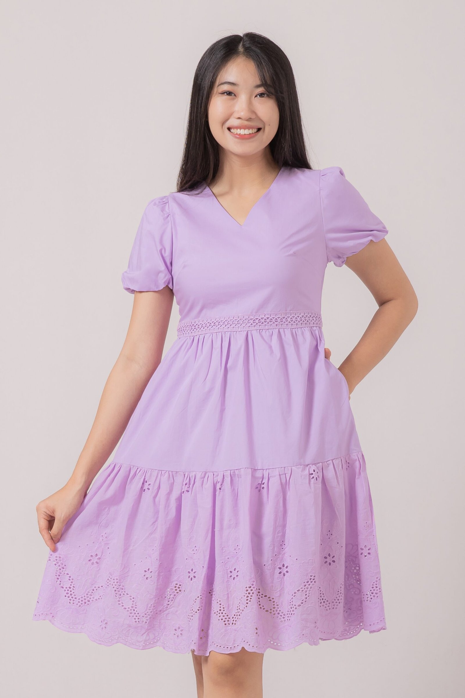 -Detail anglaise yang manis pada bagian lengan dan bawah dress