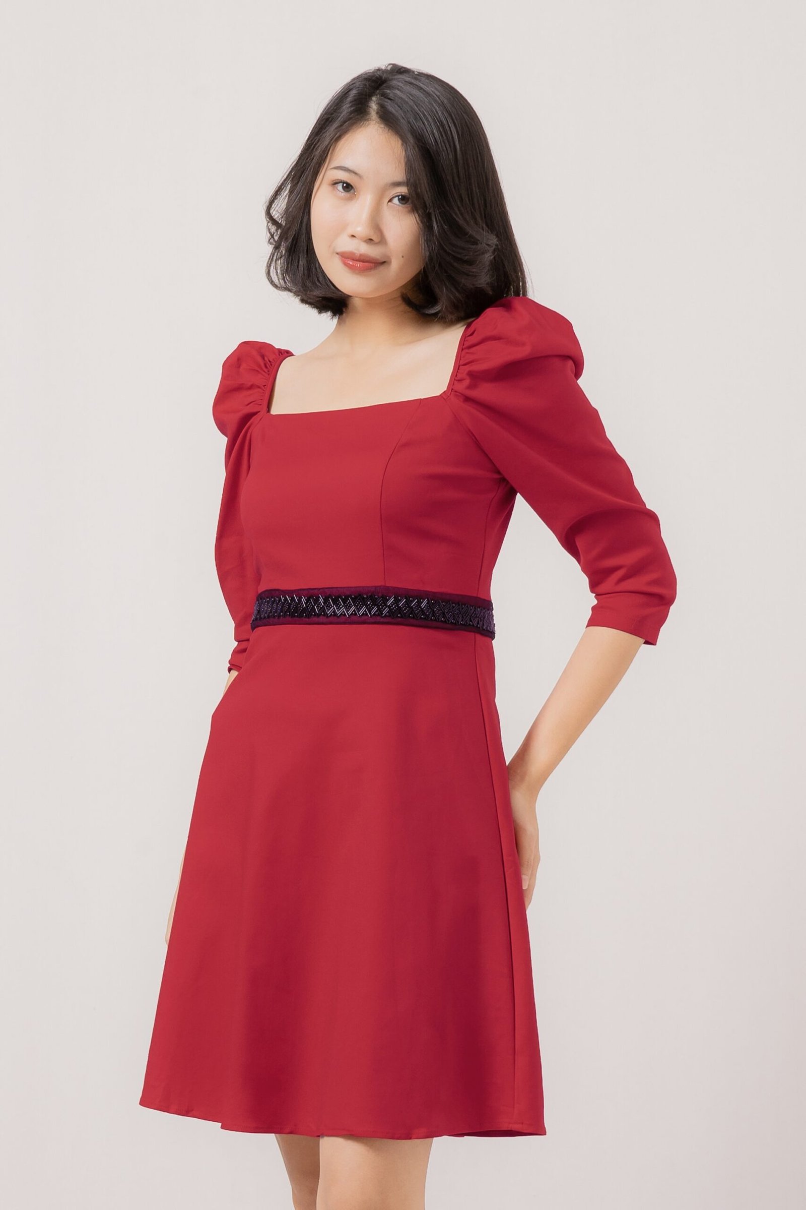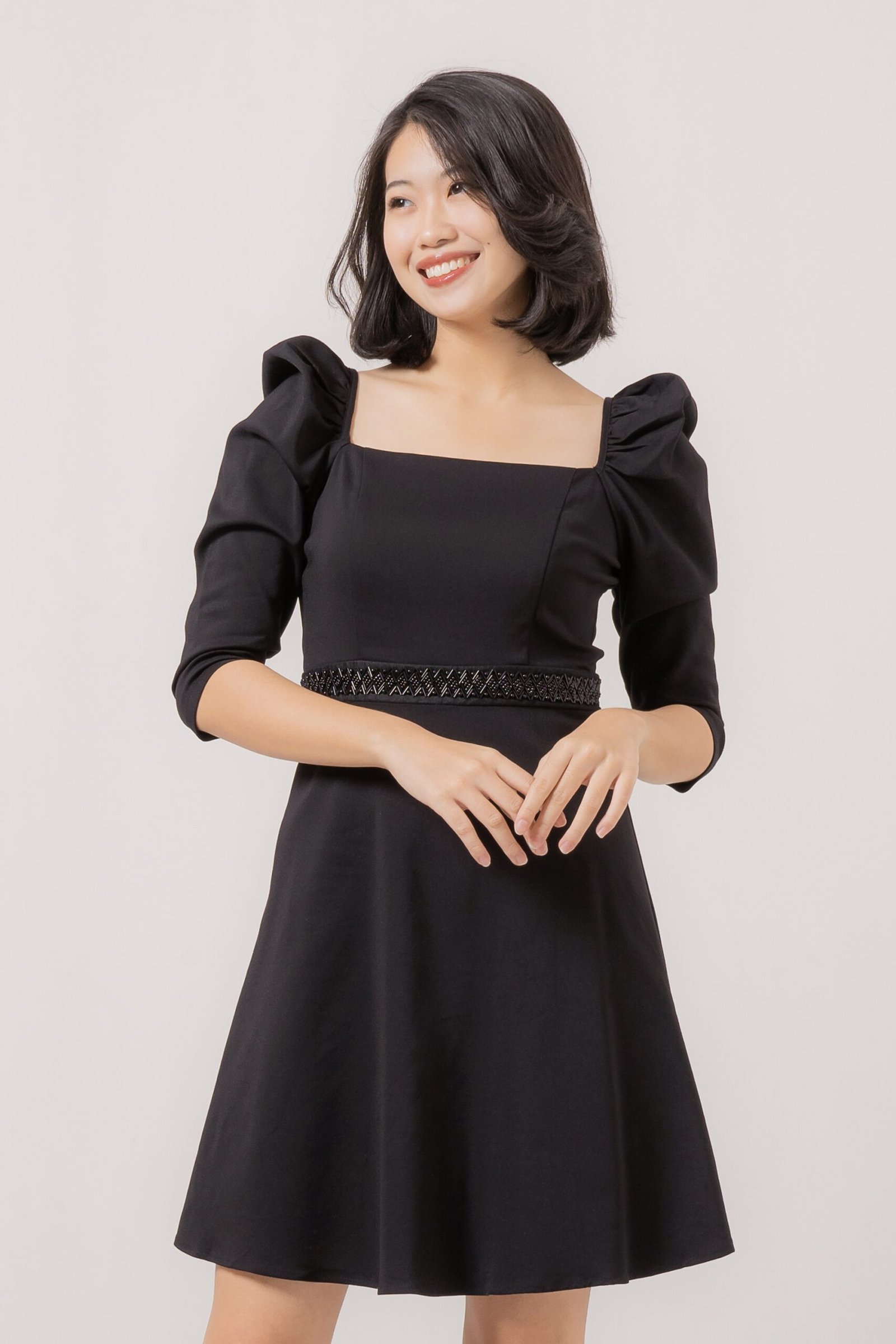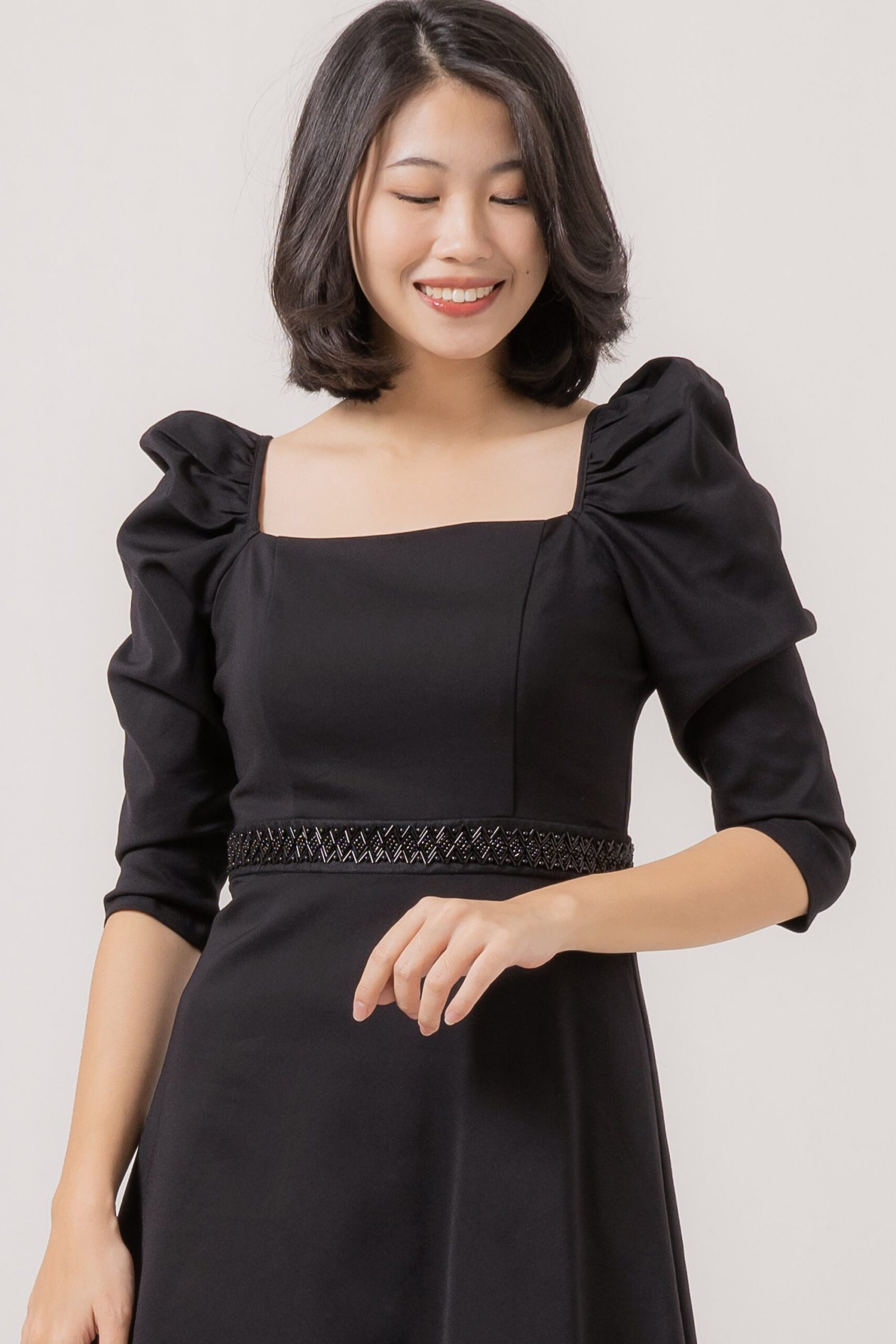 Feila Dress memancarkan kepercayaan dirimu, dengan balutan rhinestone pada bagian pinggang dan puff sleeves semakin memancarkan pesonamu
