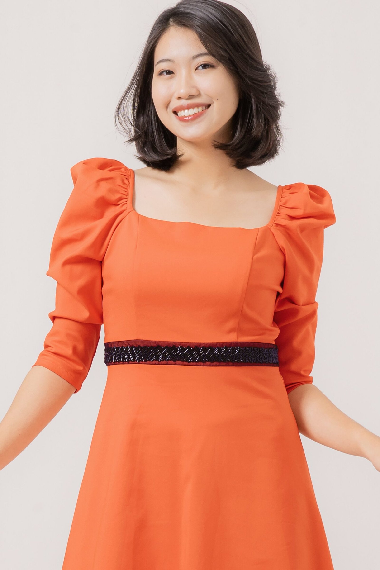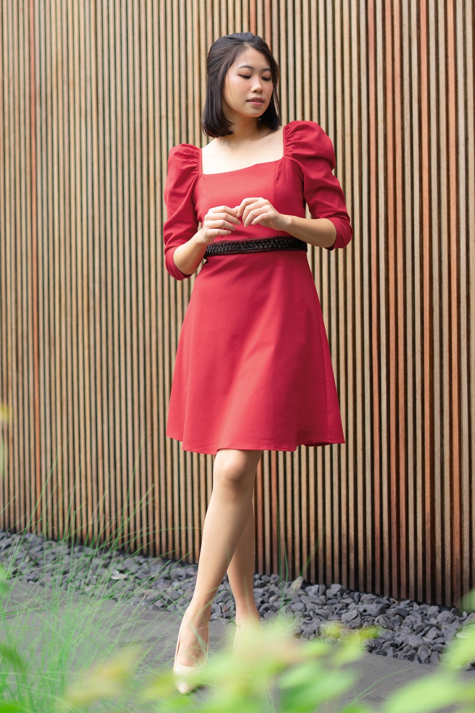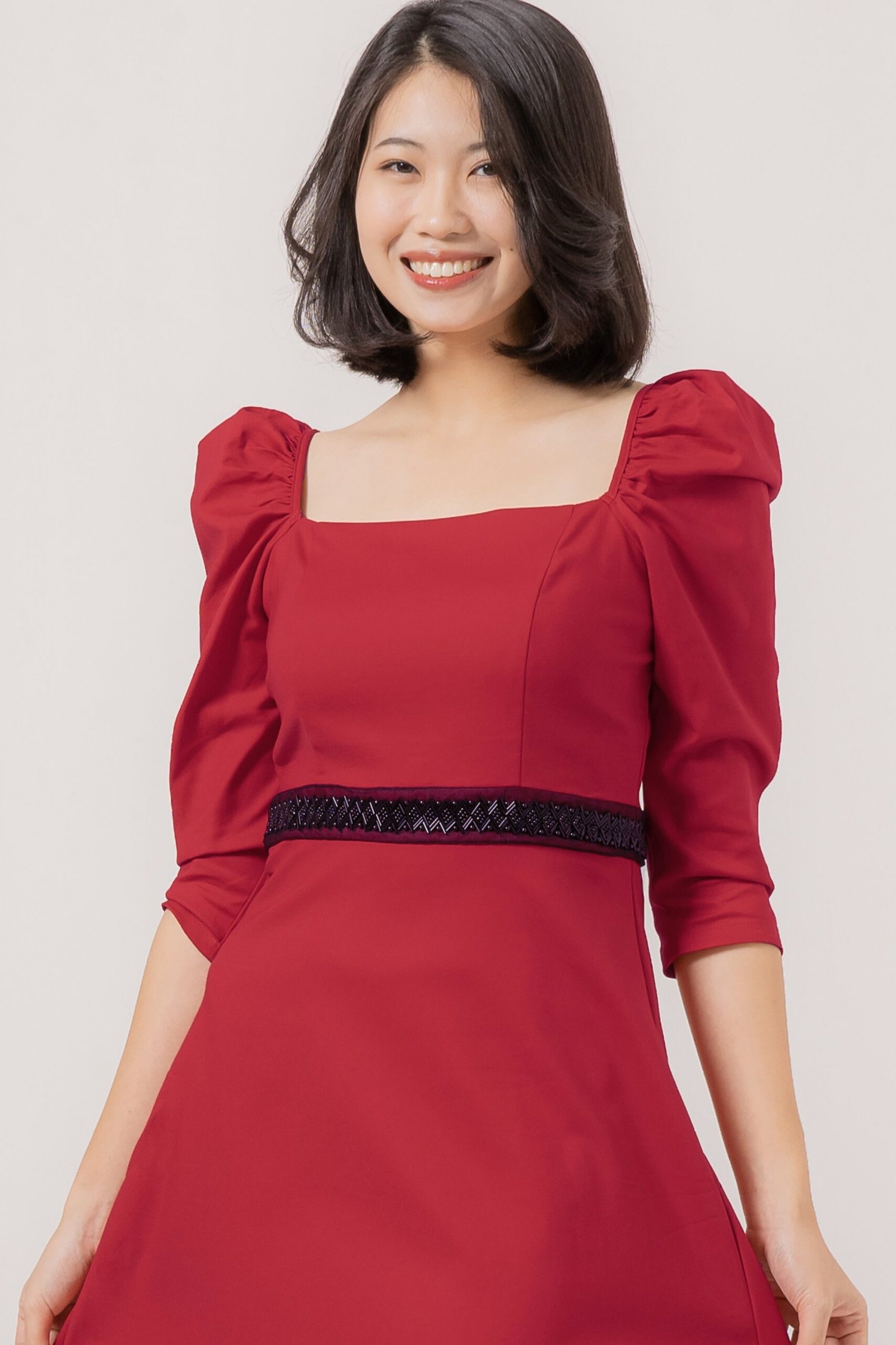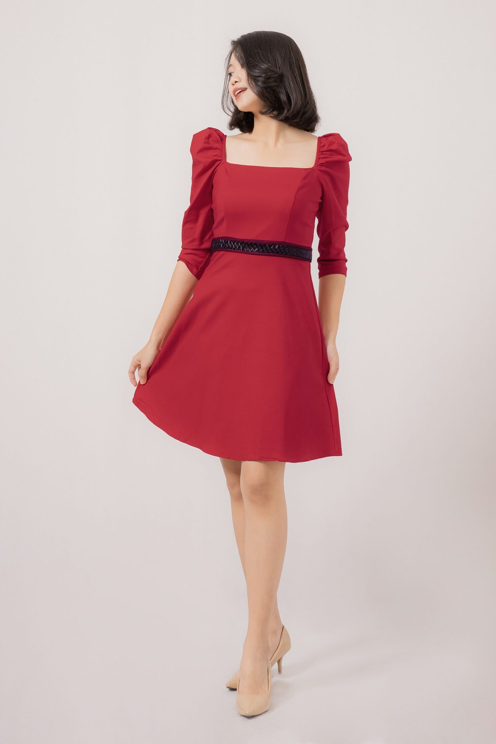 Feila Dress memancarkan kepercayaan dirimu, dengan balutan rhinestone pada bagian pinggang dan puff sleeves semakin memancarkan pesonamu