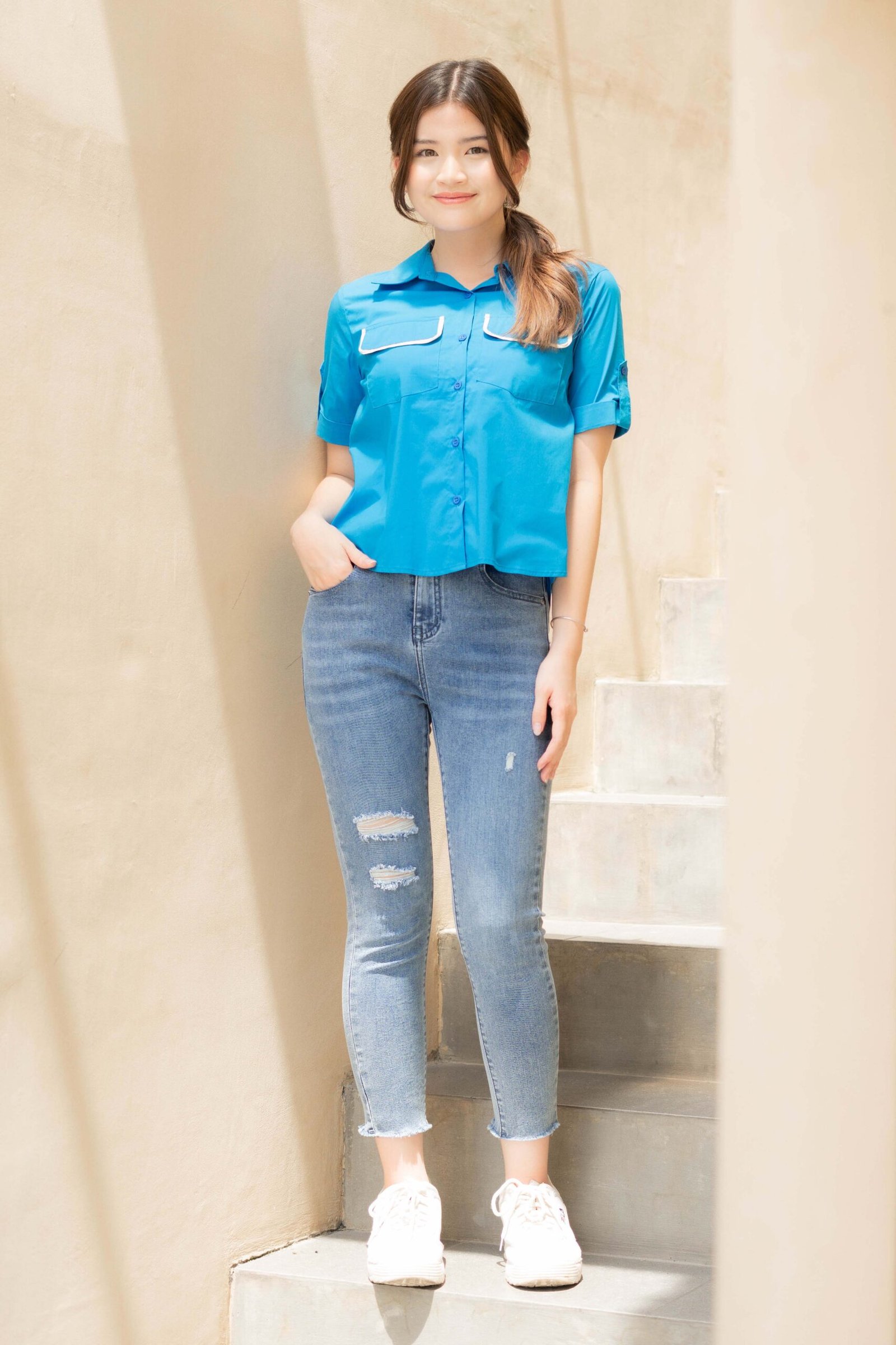-Bagian bawah celana tanpa jahit, ripped yang cantik pada bagian depan