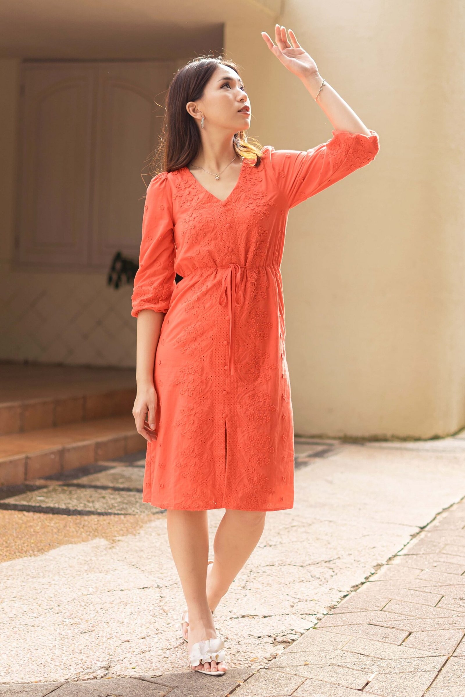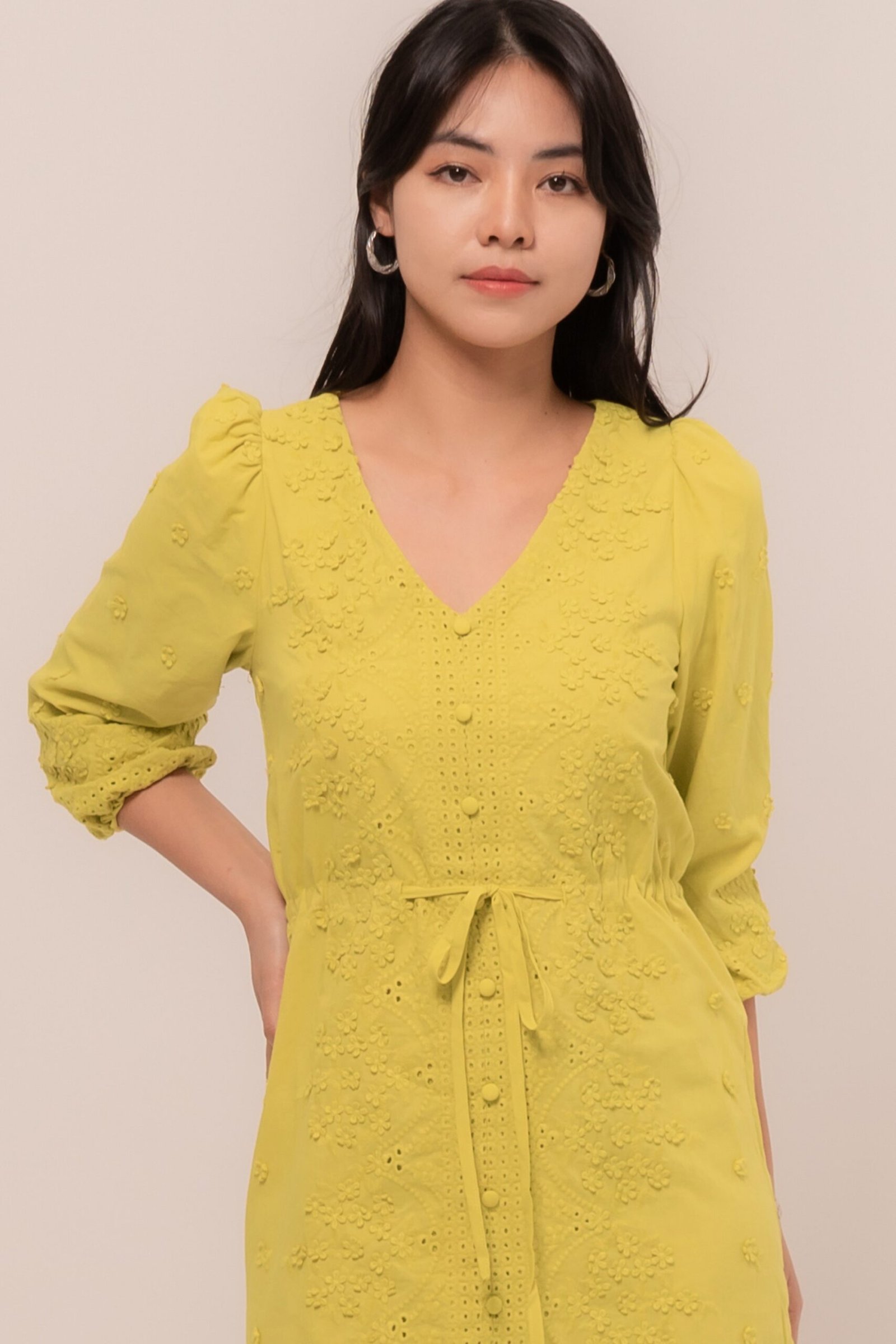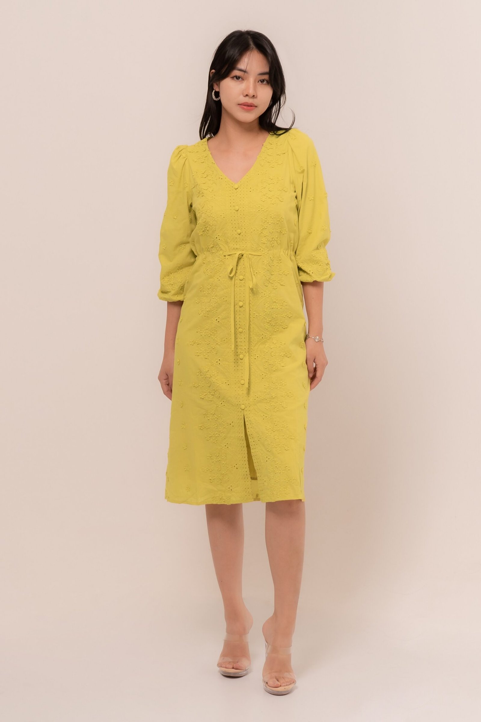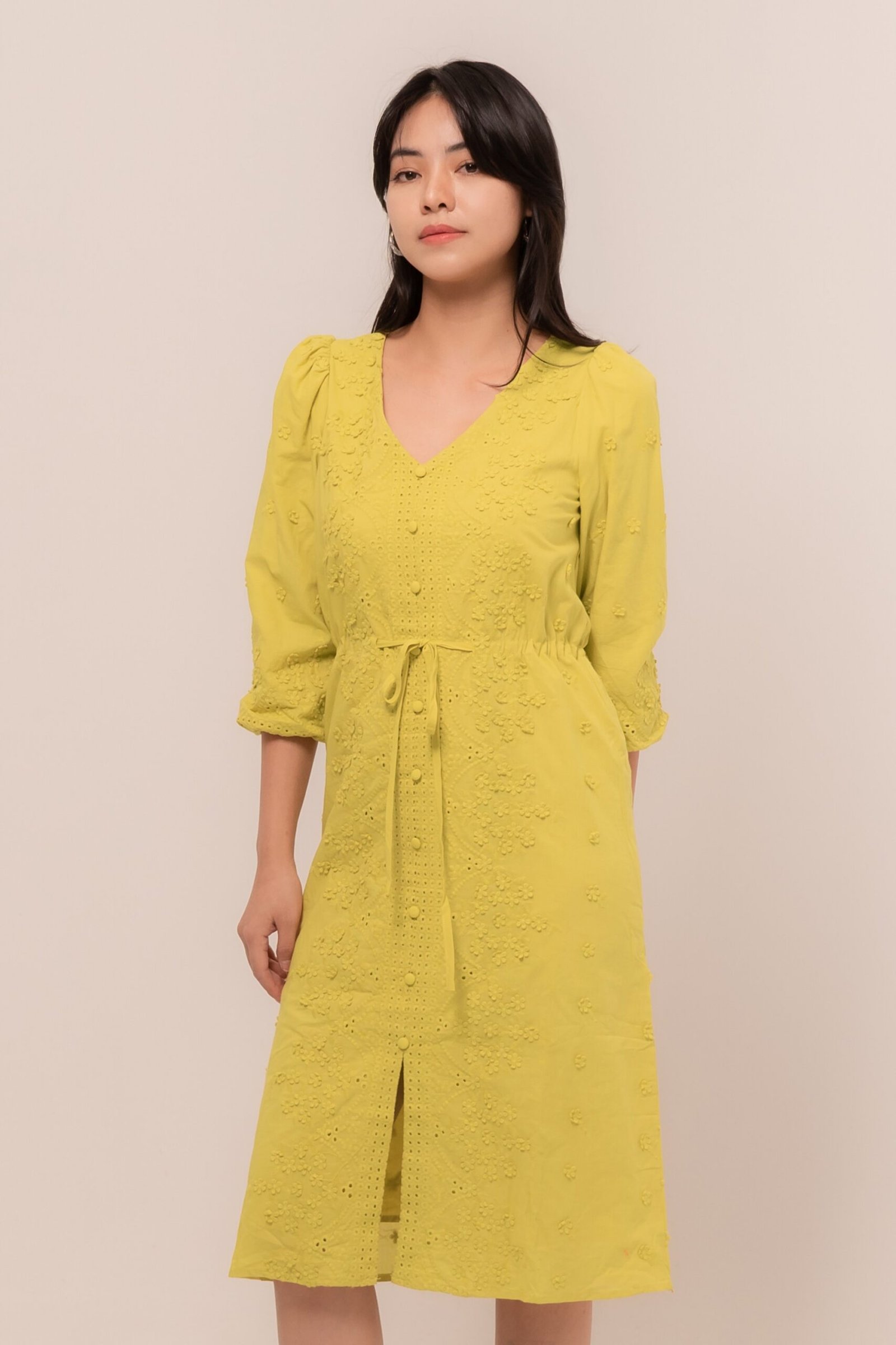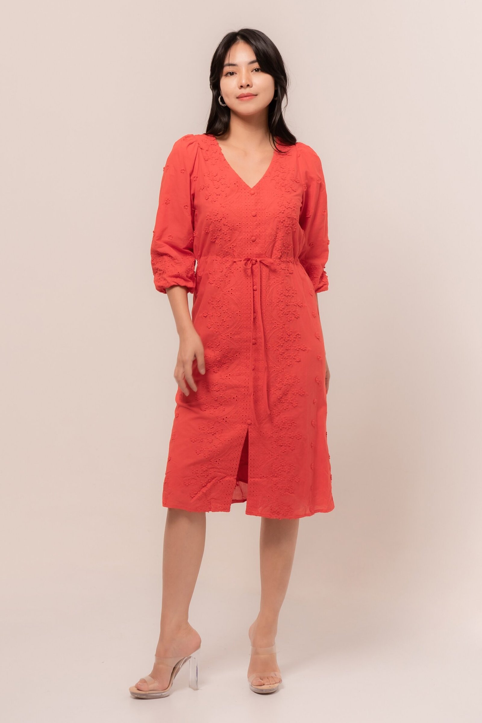 Slip into the serene beauty of our Fioren Dress with beautiful flower embroidery and anglaise