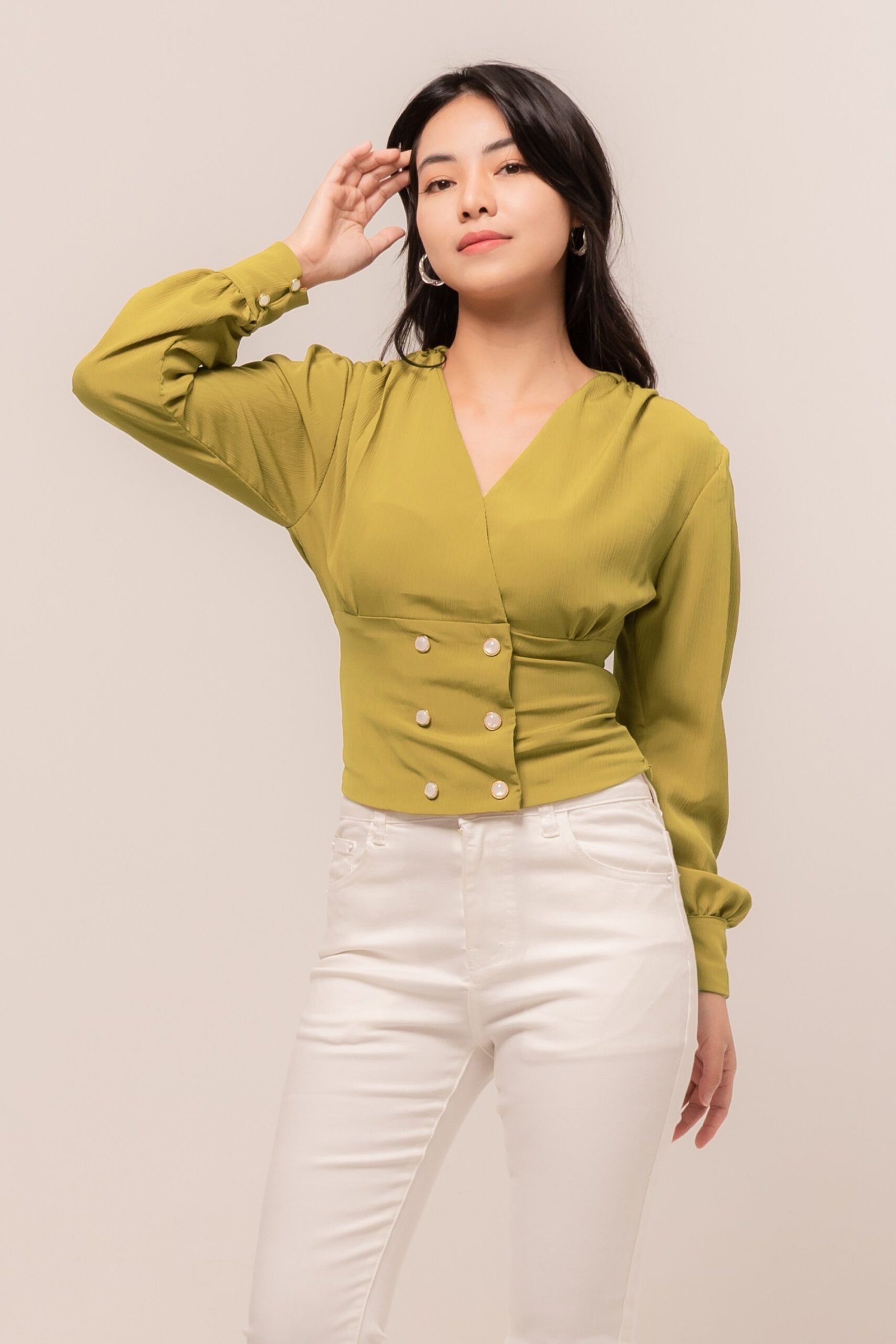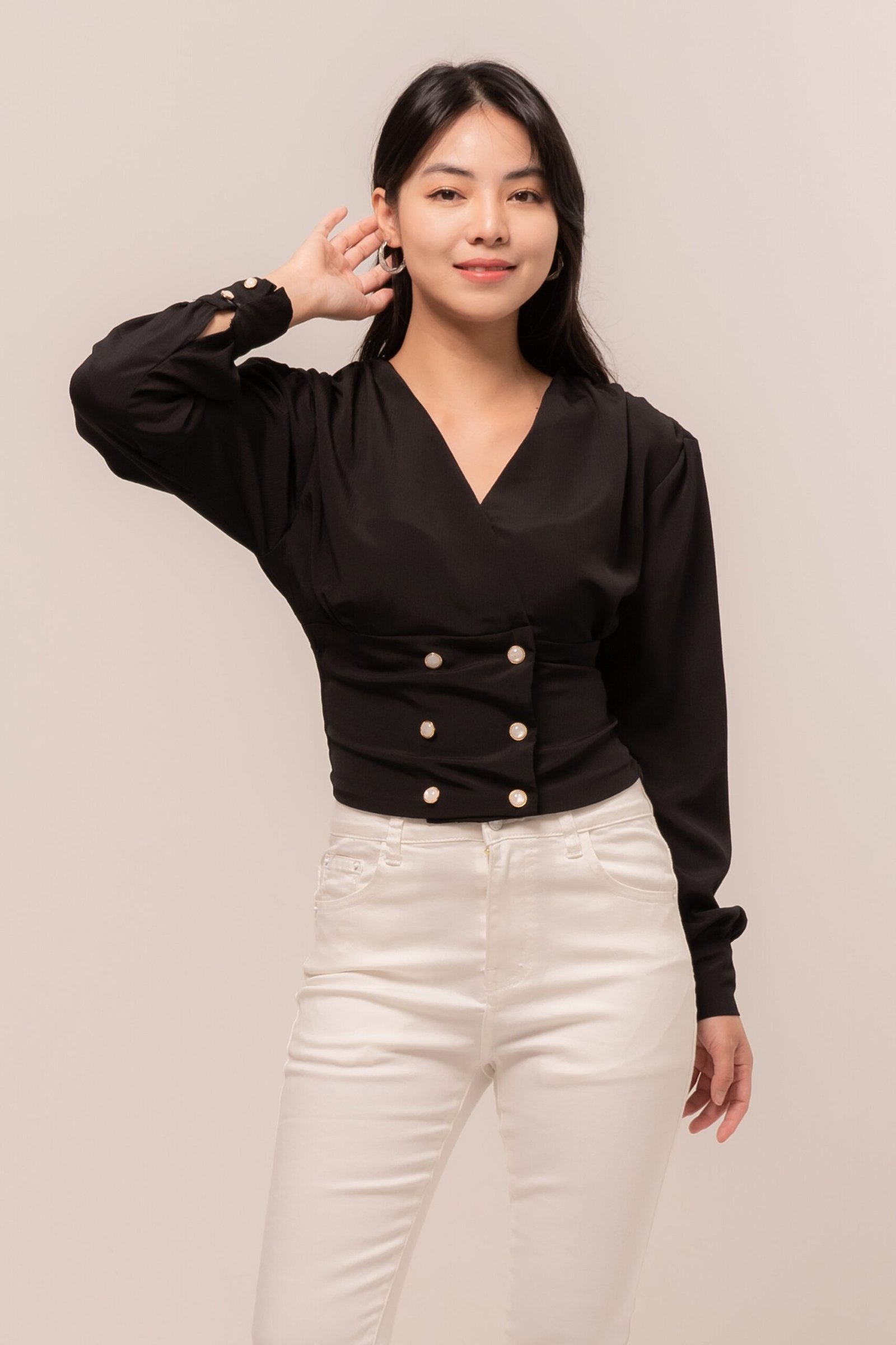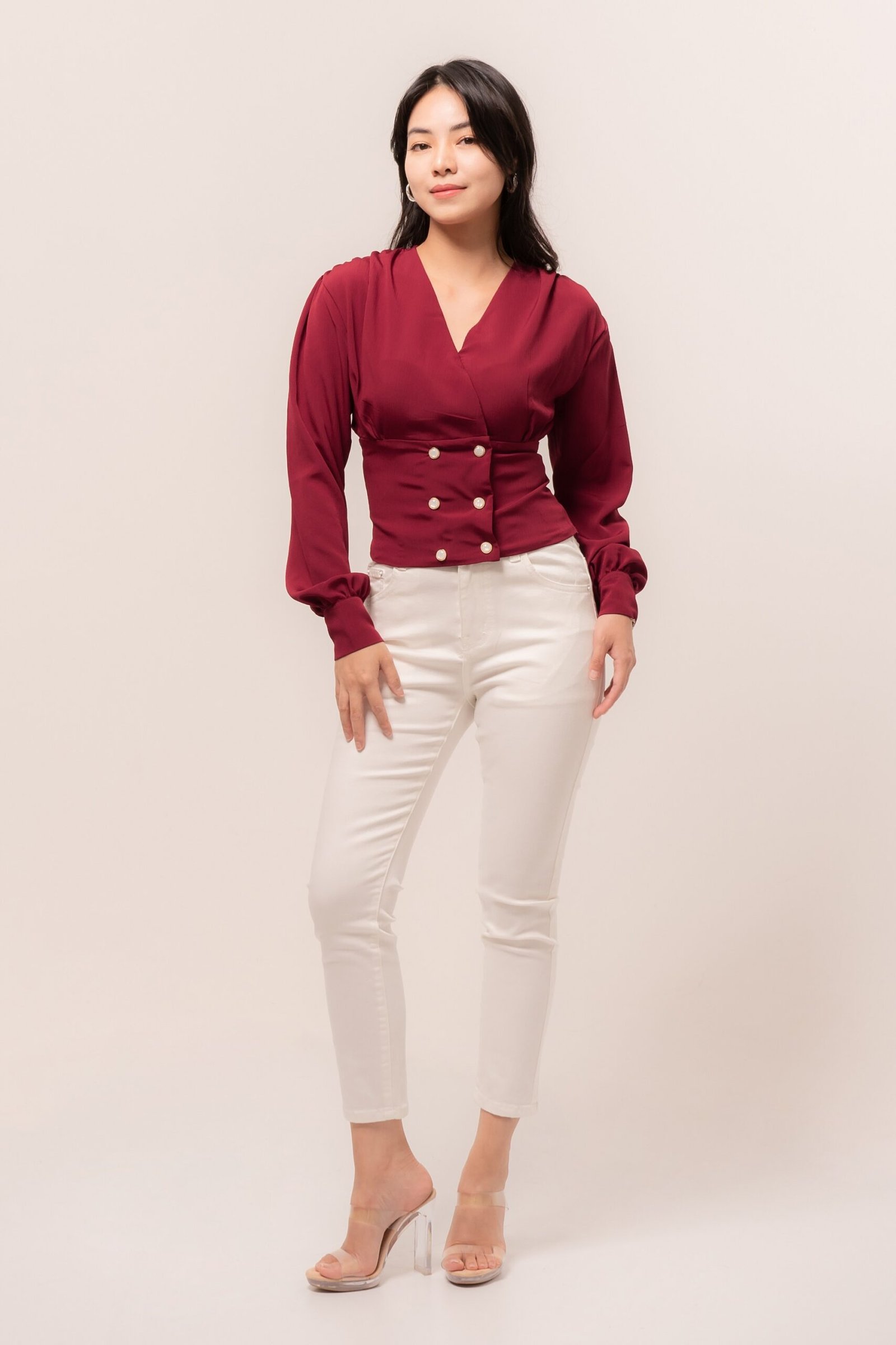-Kancing depan variasi dan kancing lengan fungsional yang menawan