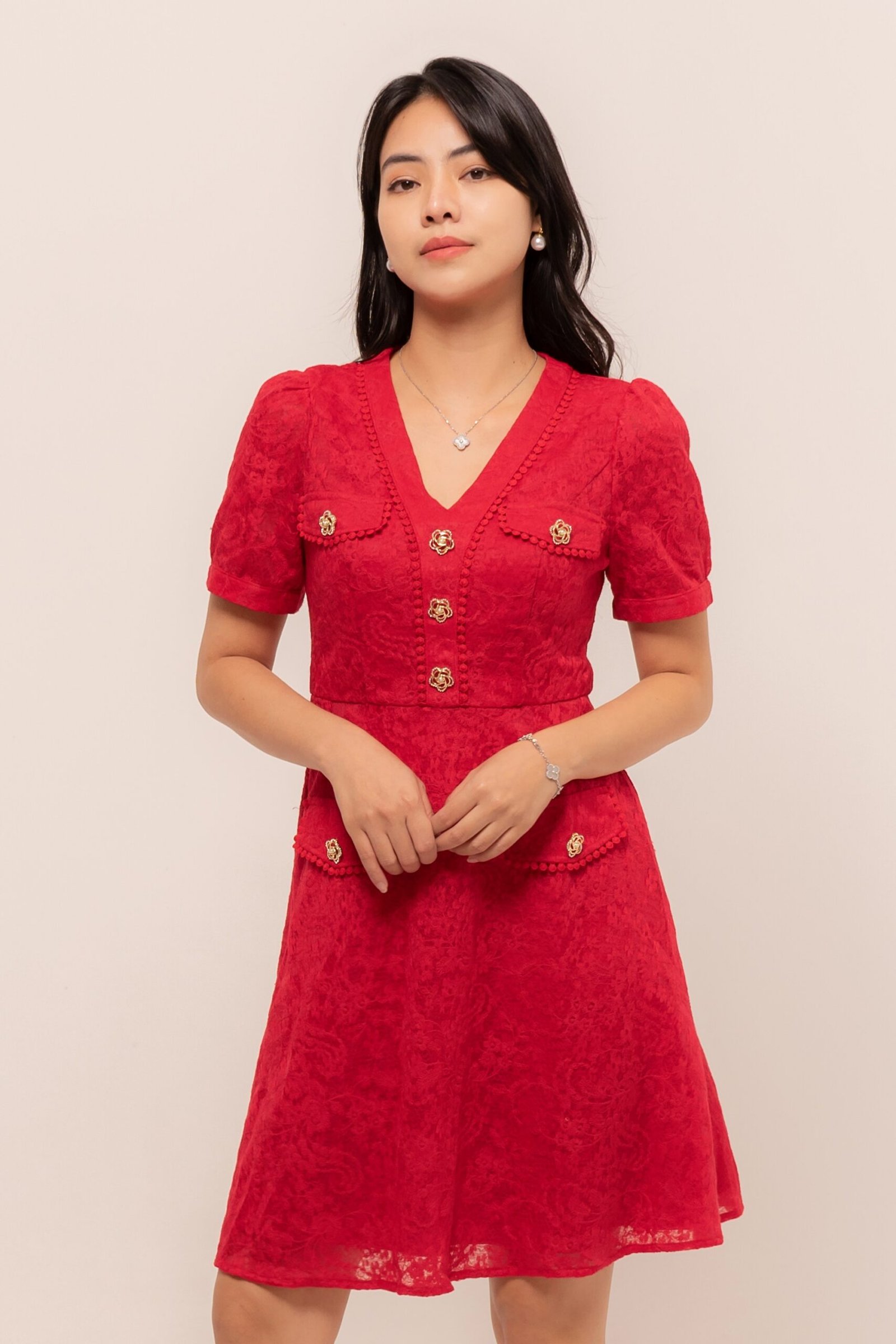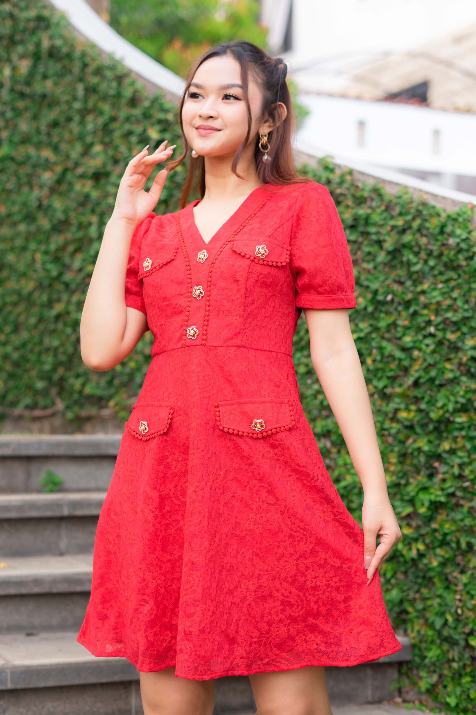 A similar dress but in a different, textured fabric and details. Holly Dress makes you looks perfect in seconds