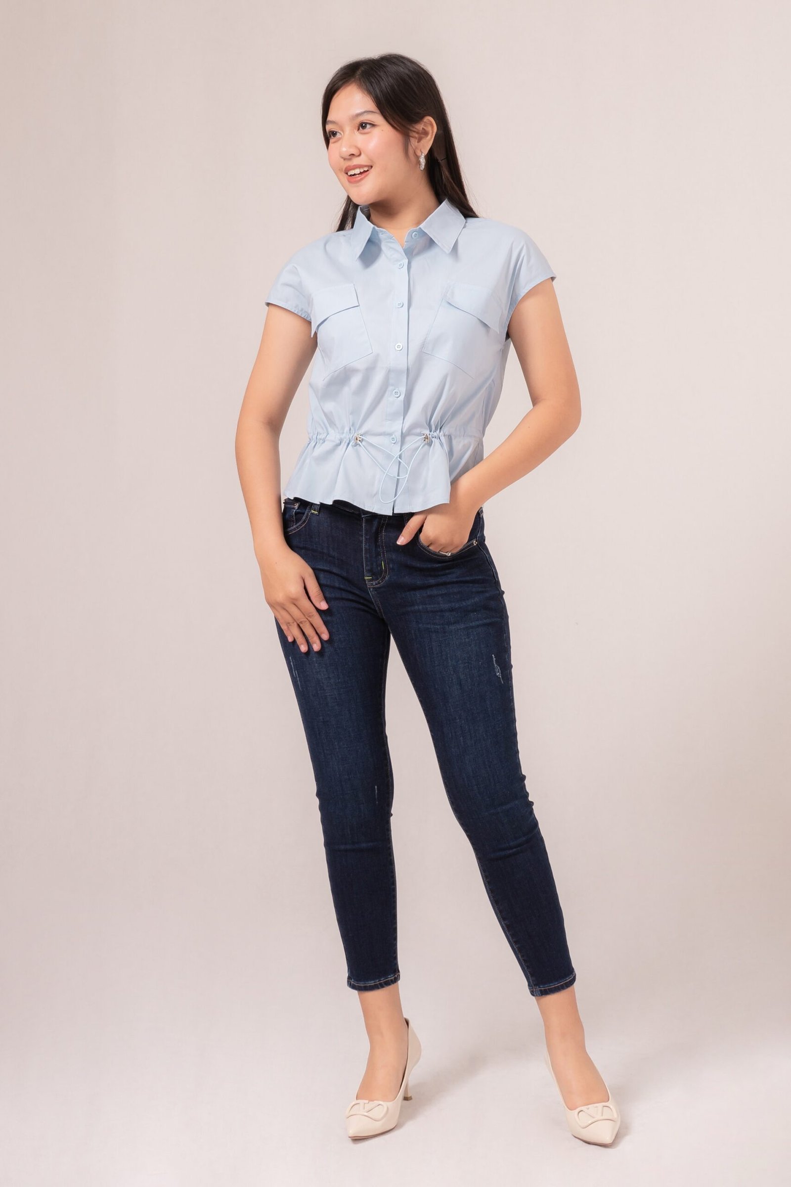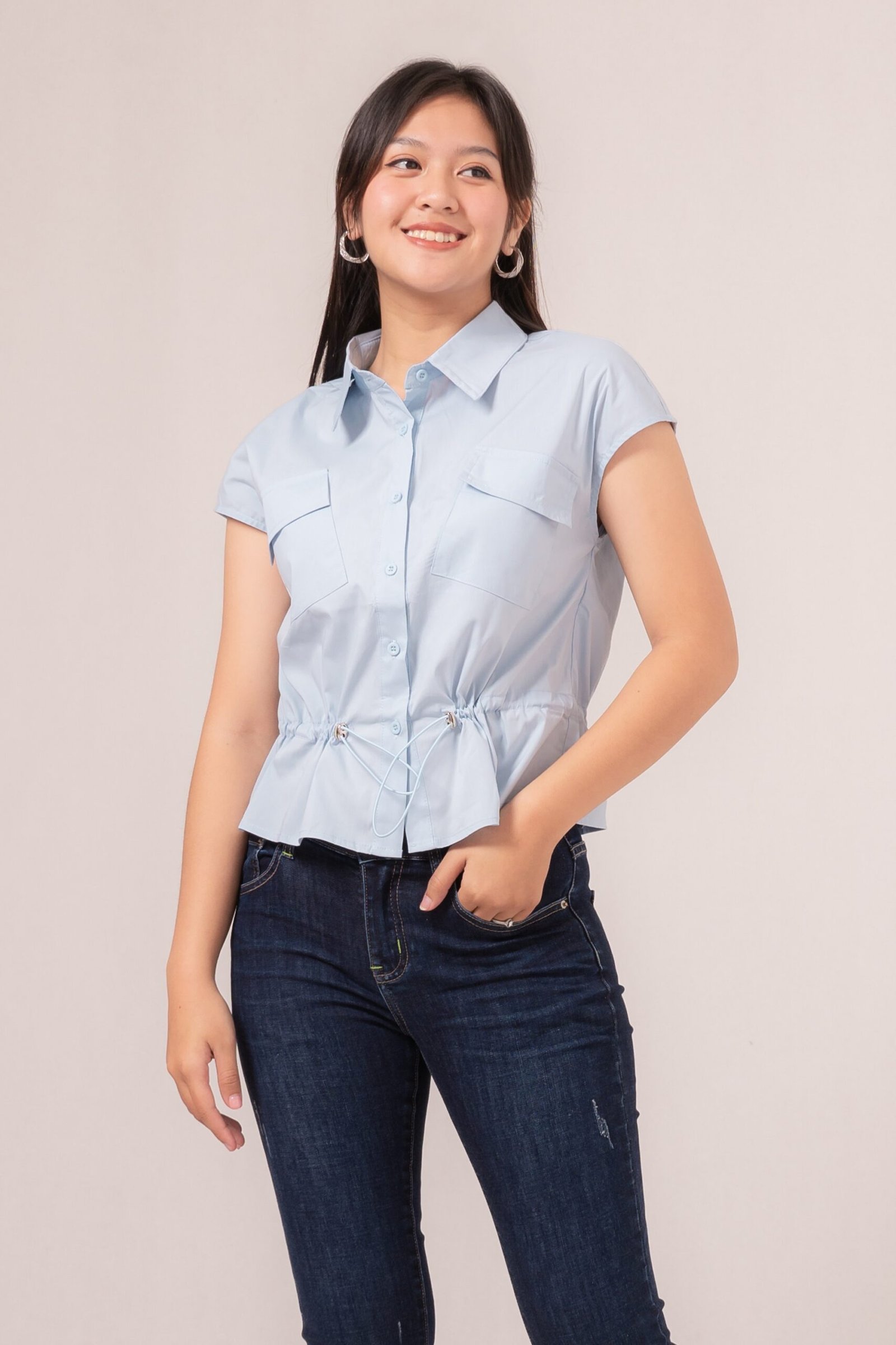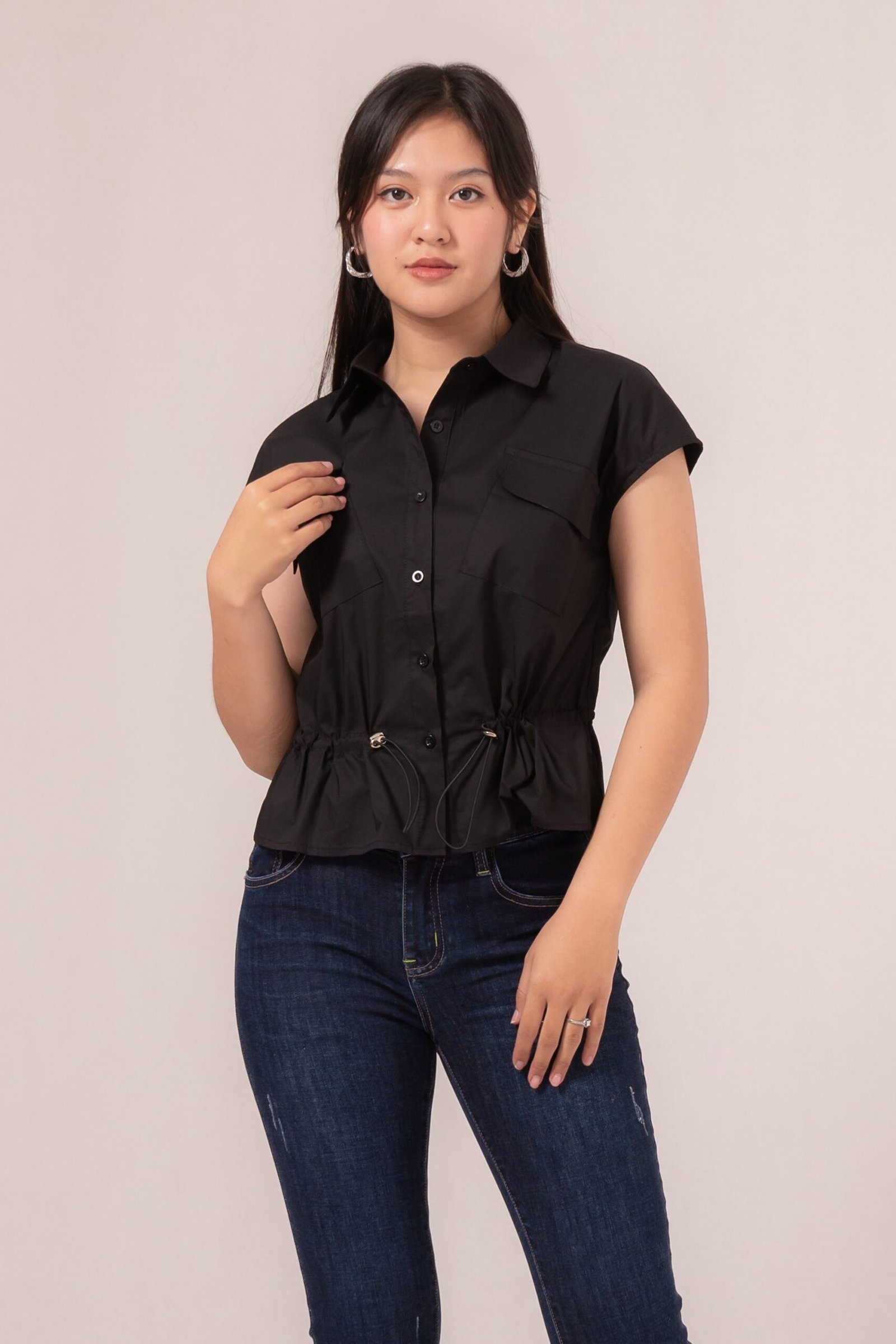 -Terdapat tali serut yang dapat disesuaikan