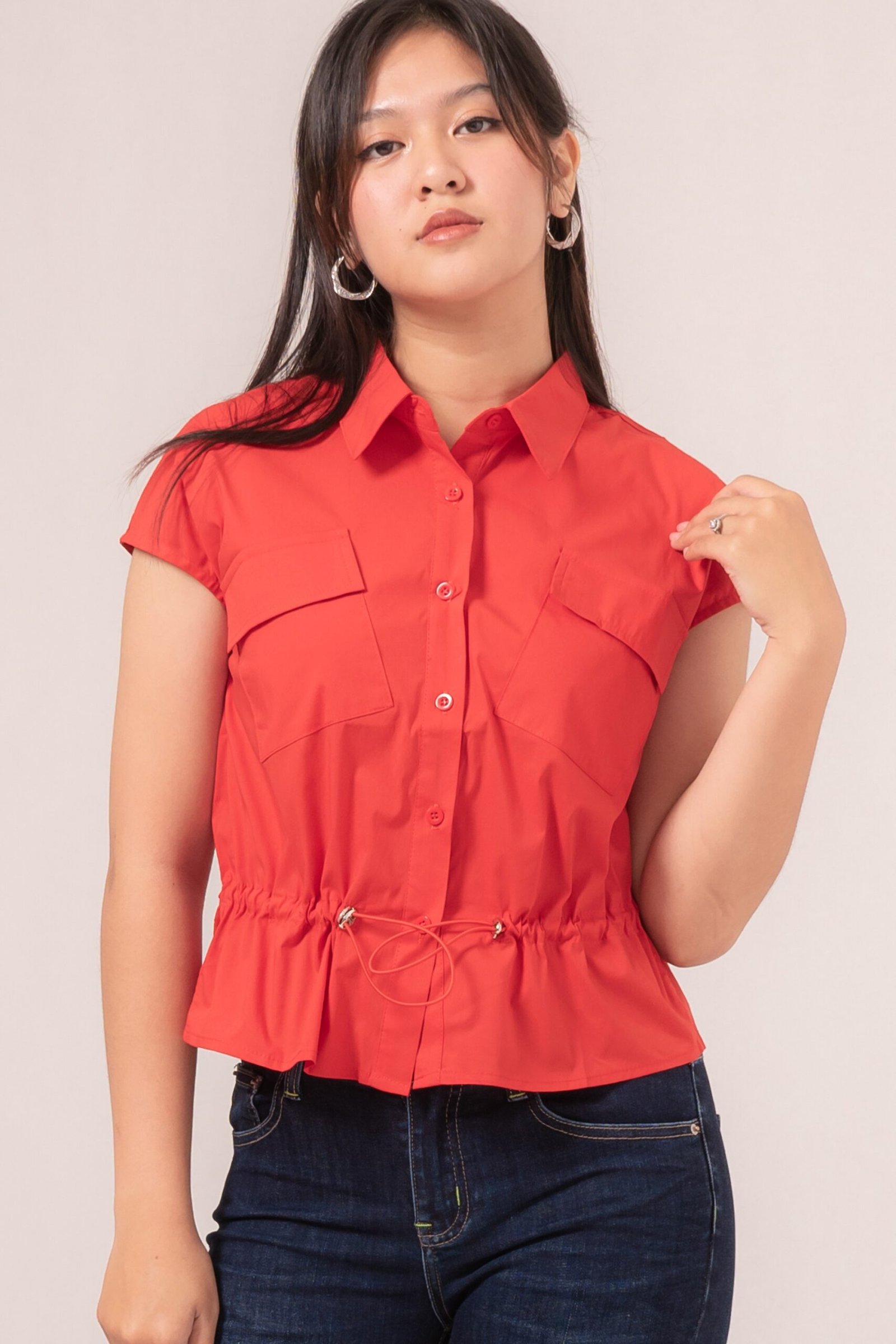 -Kantung depan fungsional dengan desain lipatan manis