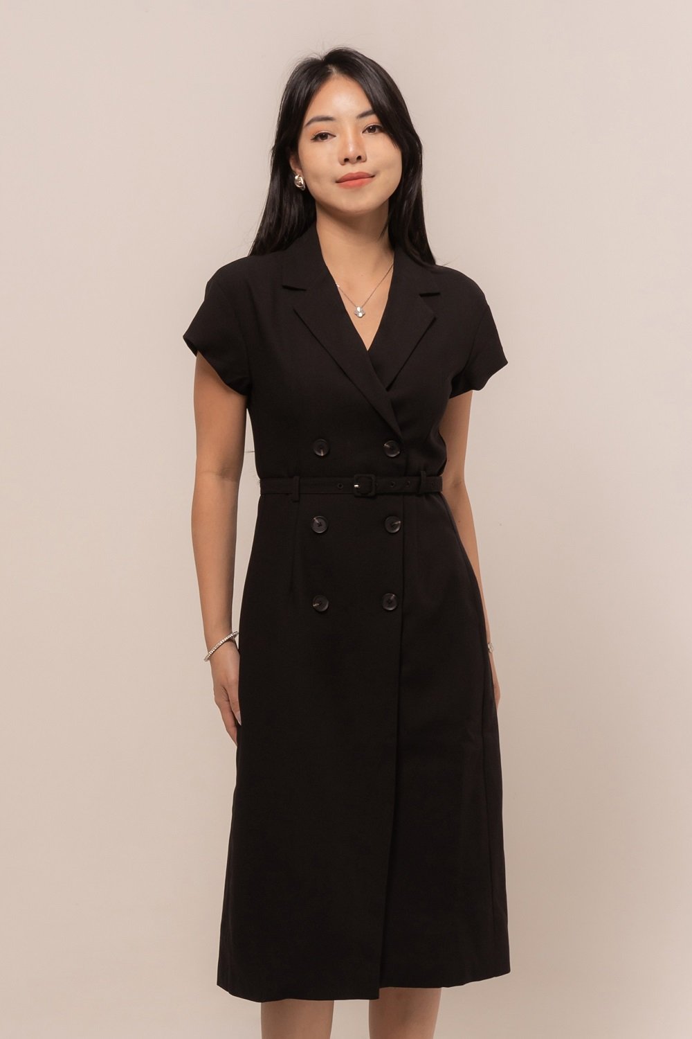 Go simple yet well dressed with our midi dress. This Jovana Dress features a classic v-neckline and belt flattering silhouette.