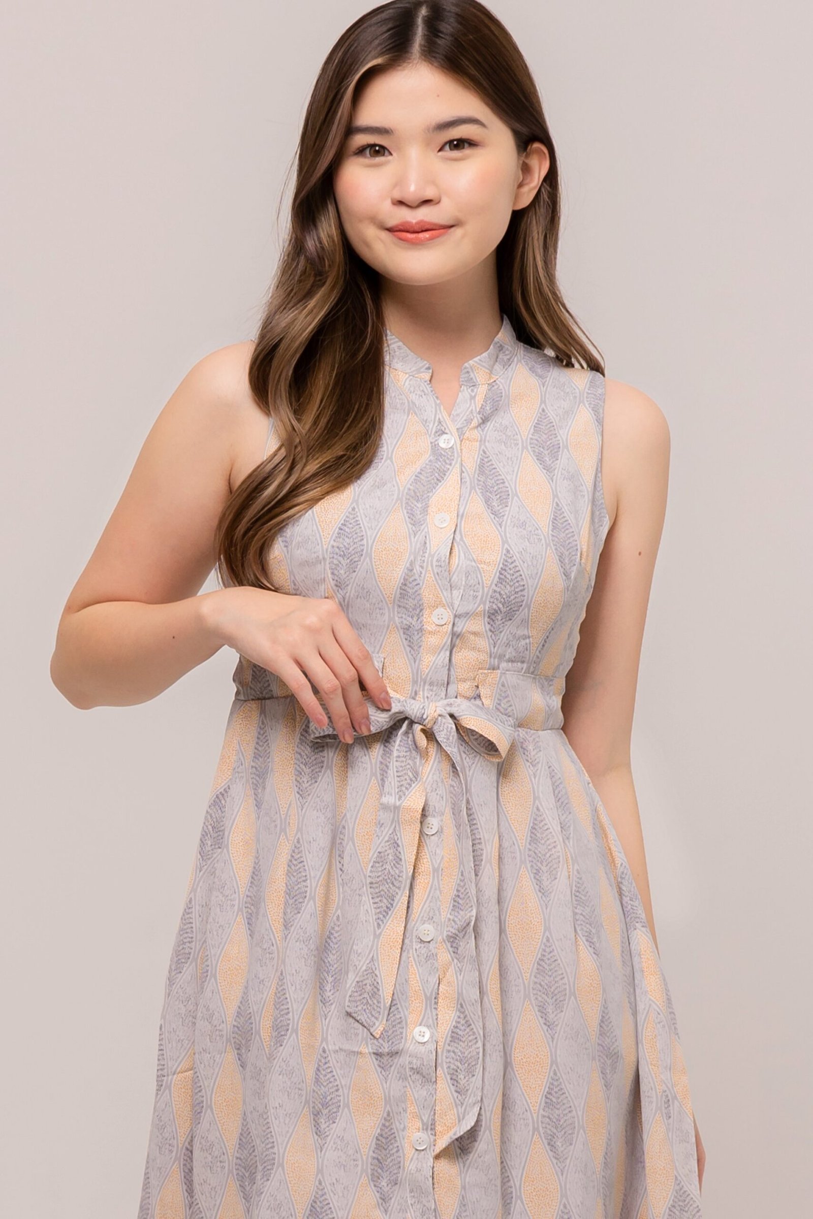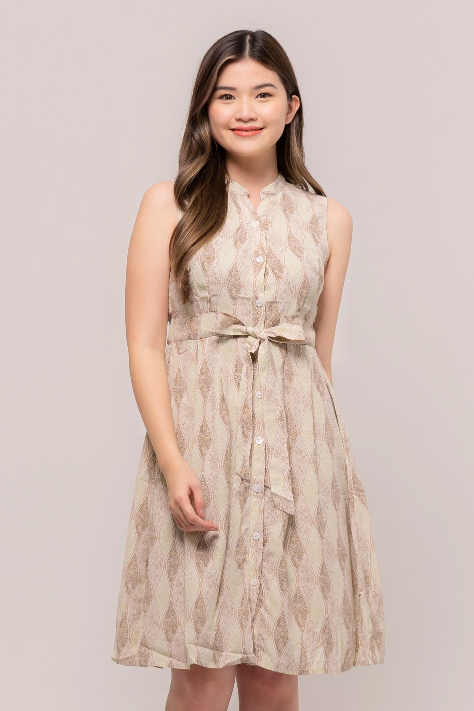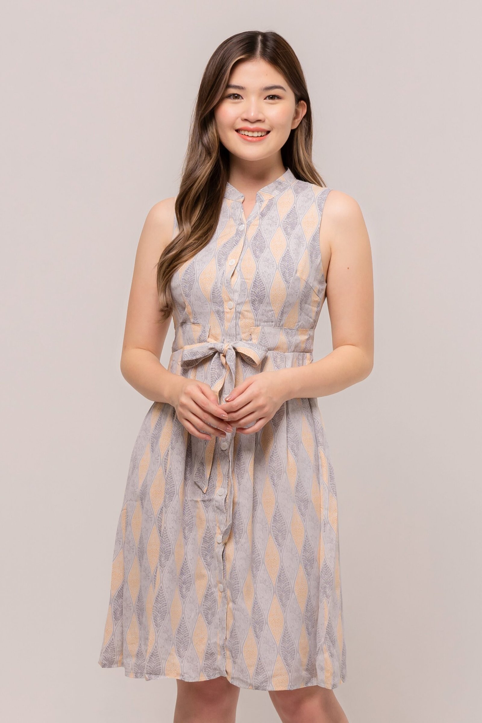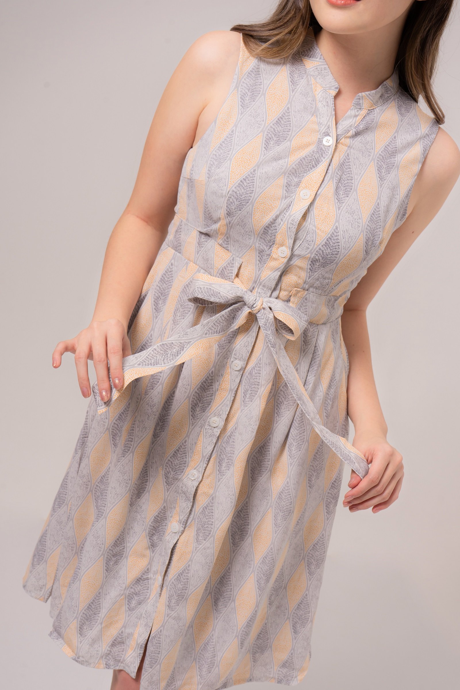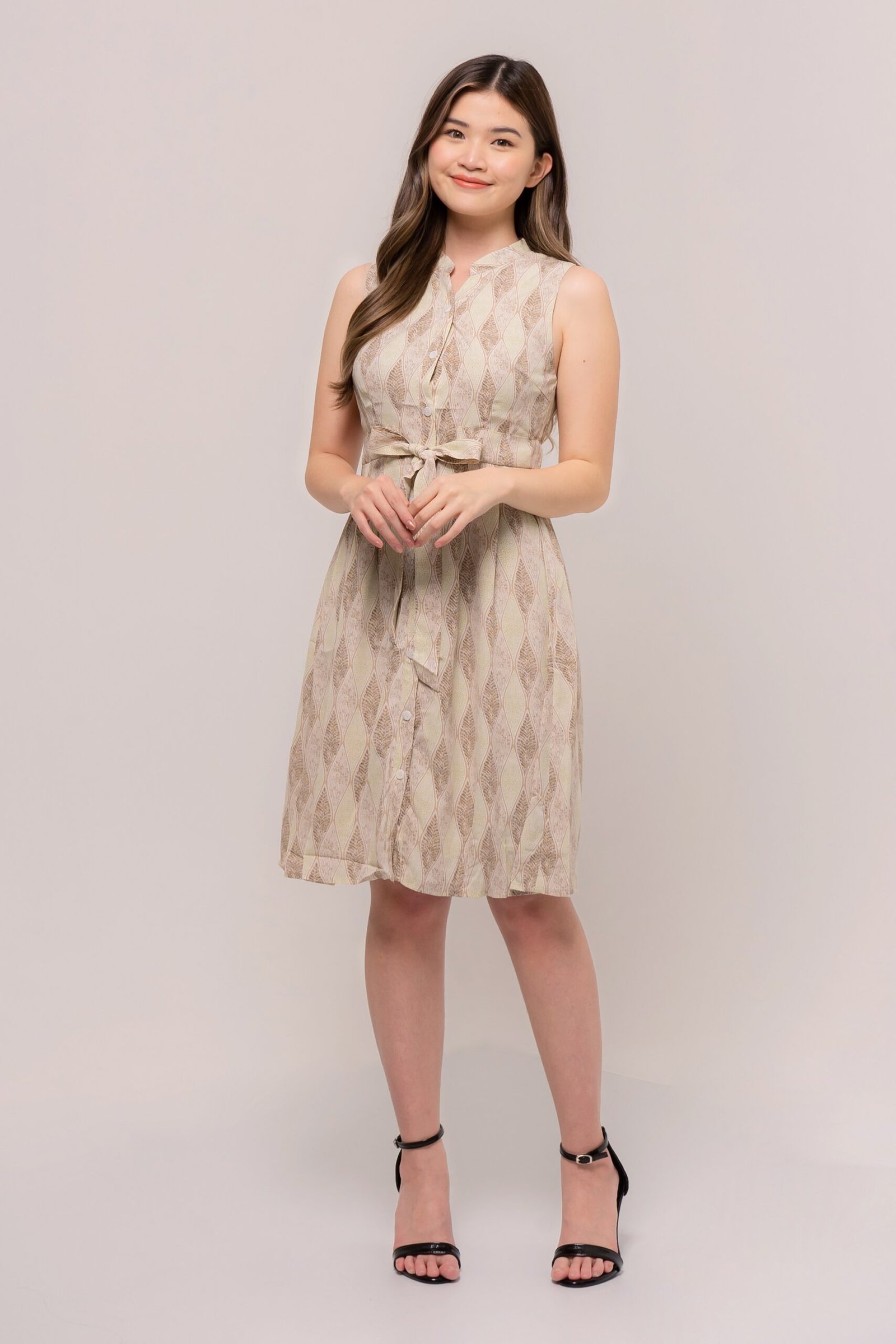 Go simple yet well dressed with our sleeveless dress. This Lavinia Dress features a classic v-neckline and tie-belt flattering silhouette.