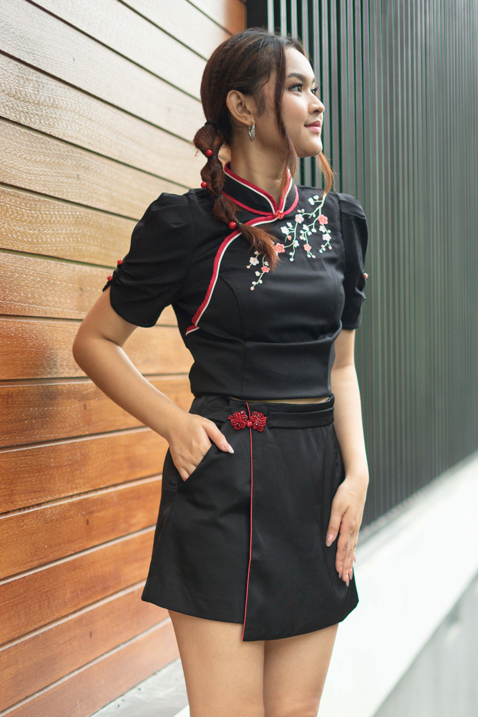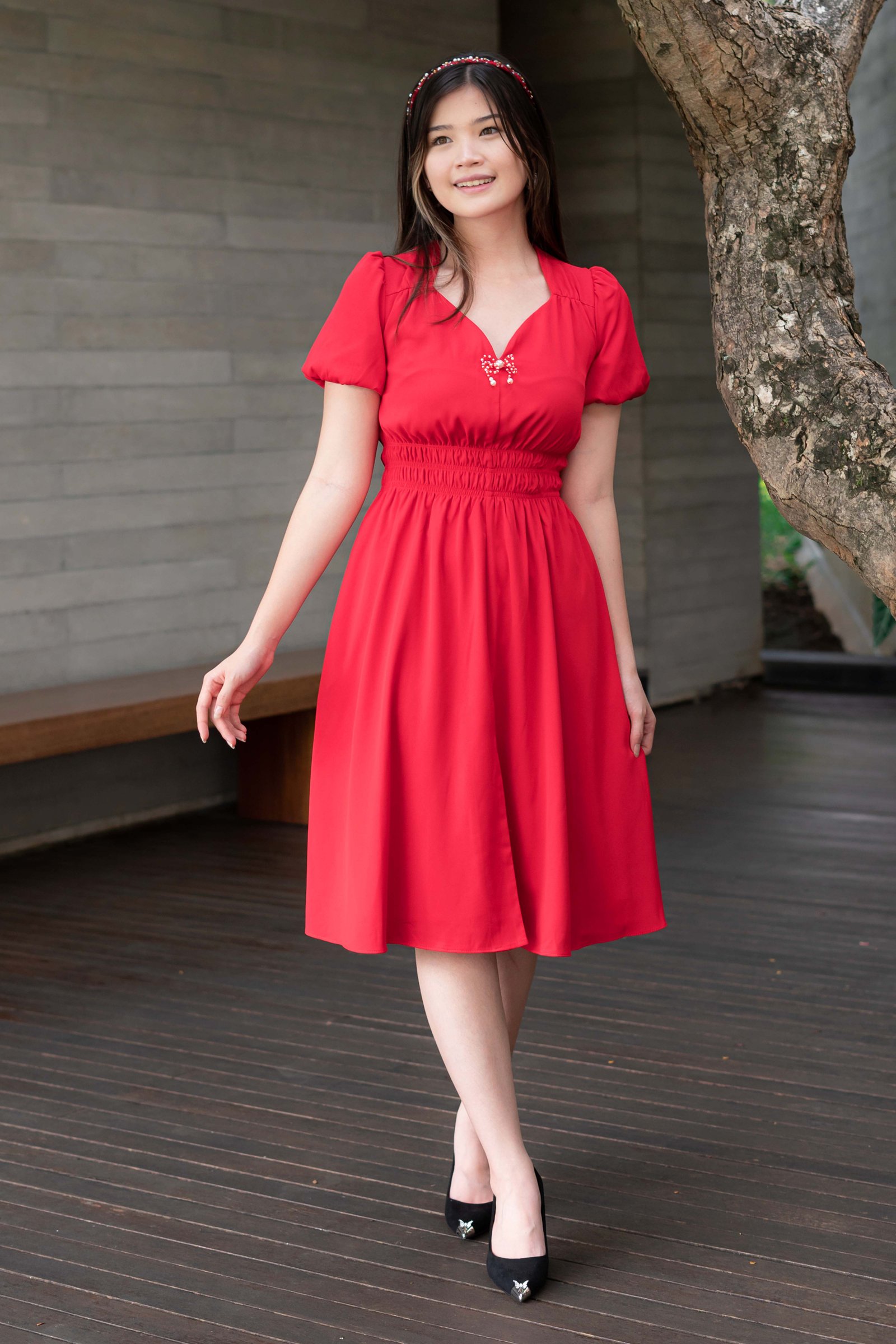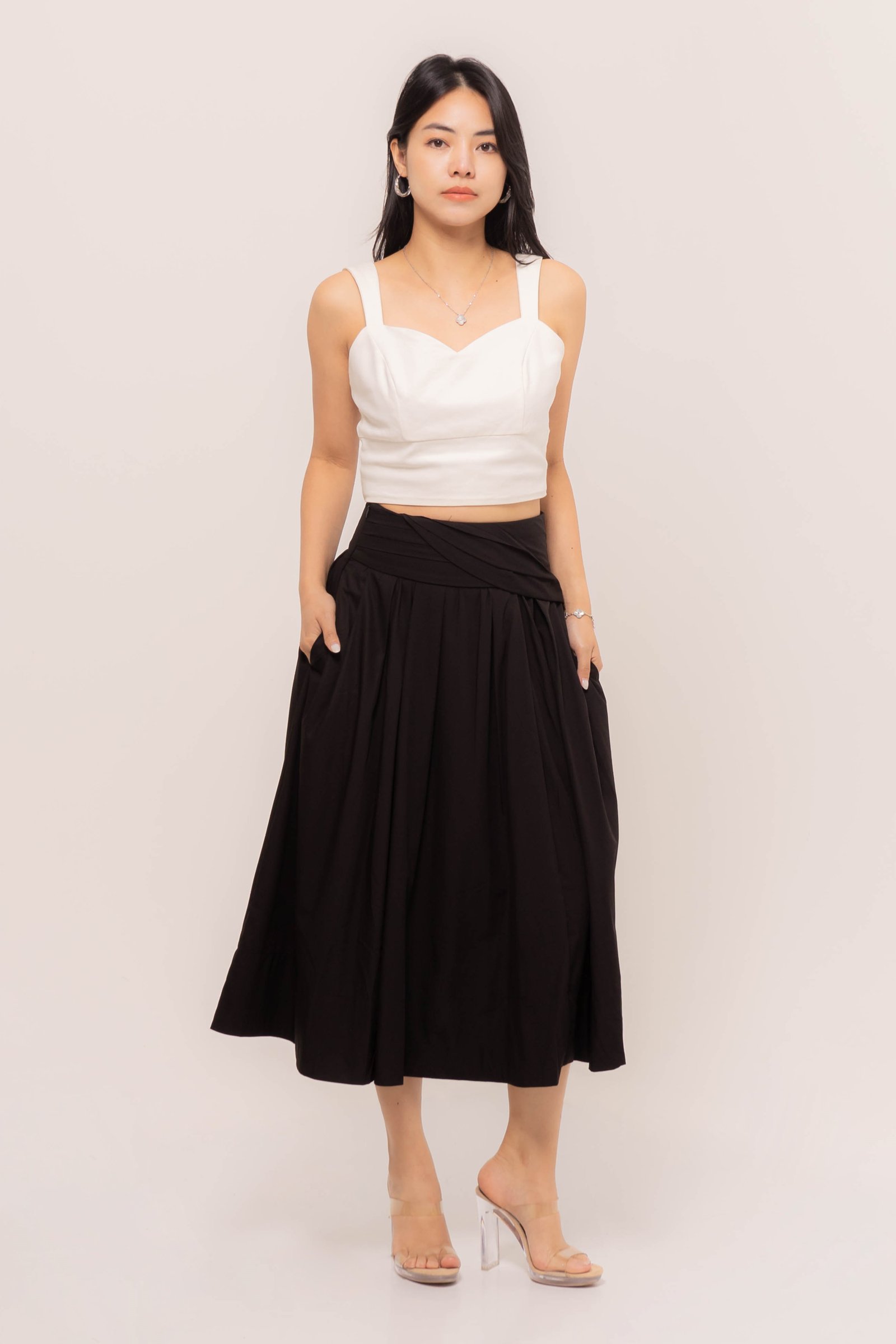 -Pleats asymmetrical yang menawan pada bagian pinggang