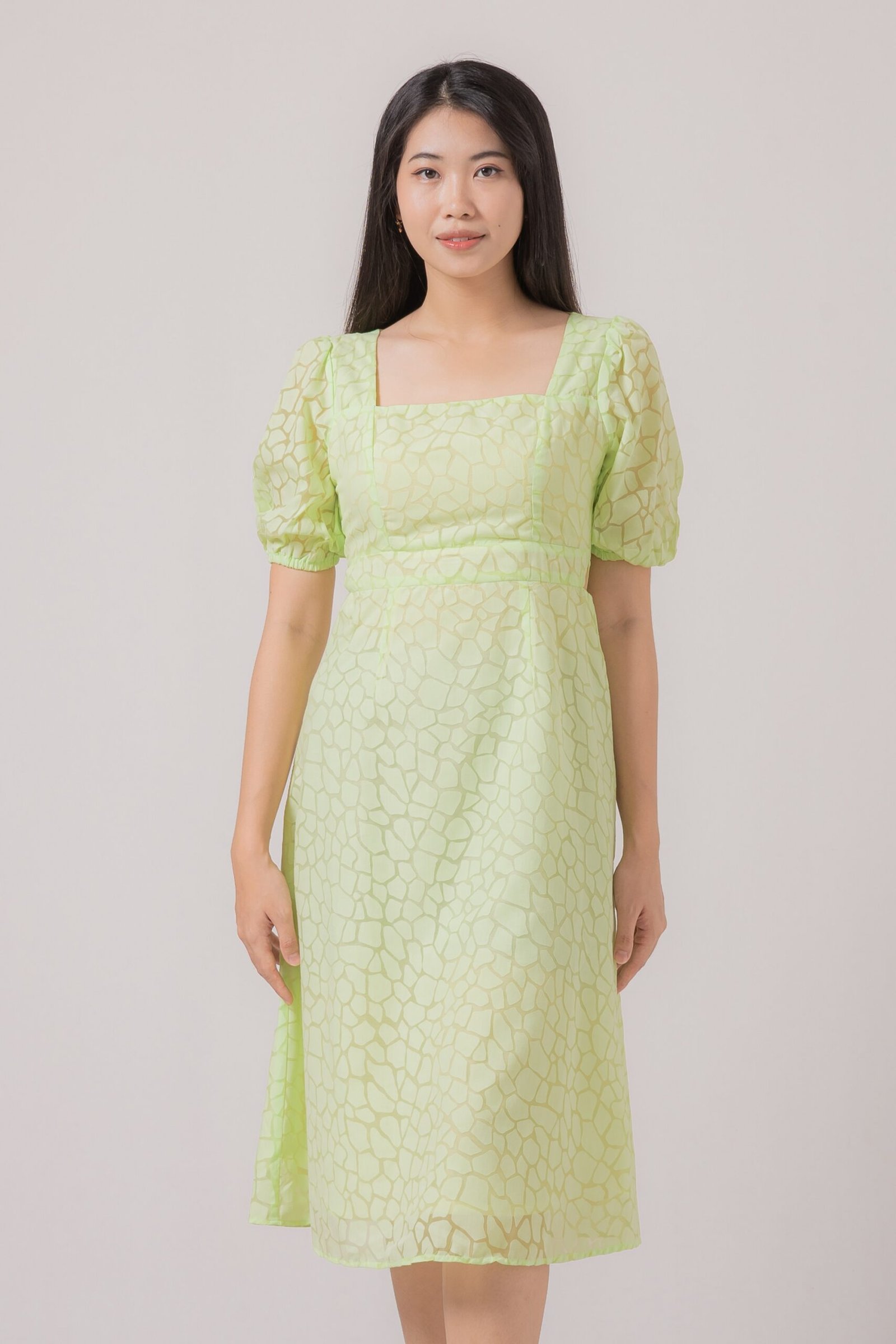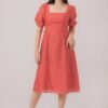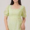 -Detail tekstur dress yang manis dengan perpaduan puff sleeve yang cantik