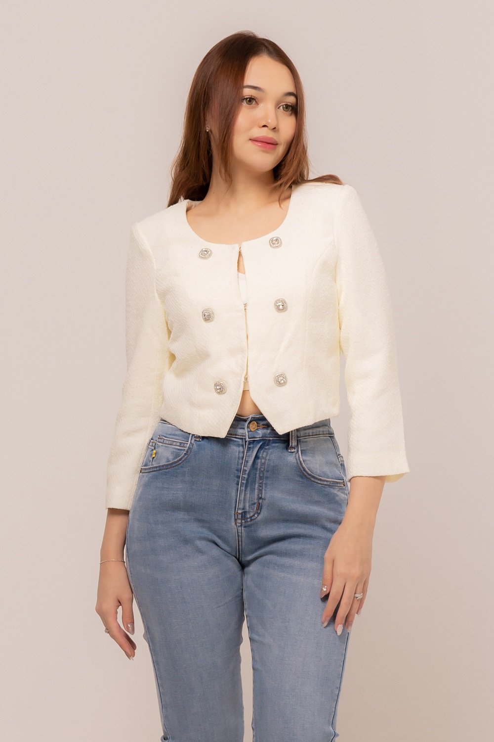 -Bahan jeans elastis, terbuat dari katun denim