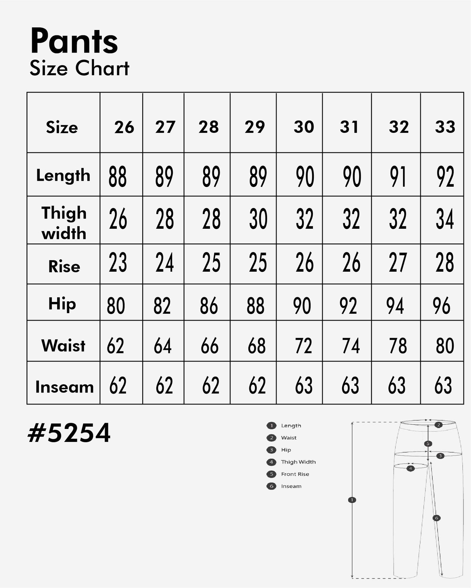 | Lingkar Pinggang | 64 | 66 | 68 | 70 | 74 | 76 | 78 | 80 |