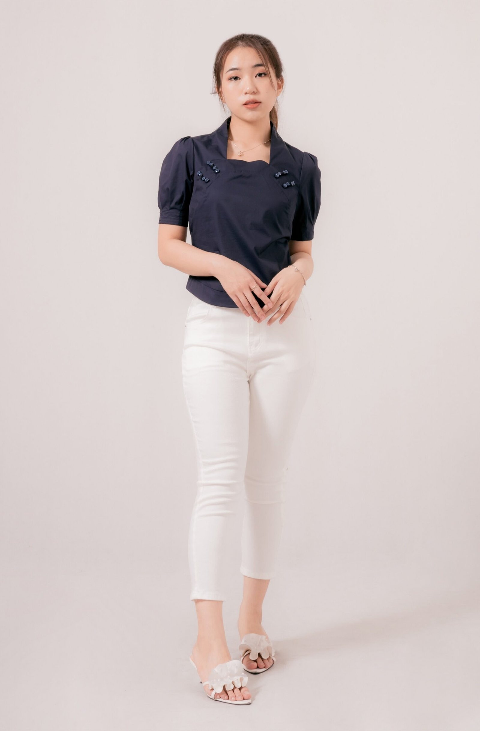 Tampil chic dan classy dengan Meili Top. Padukan dengan celana panjang atau rok favoritmu.