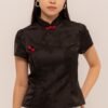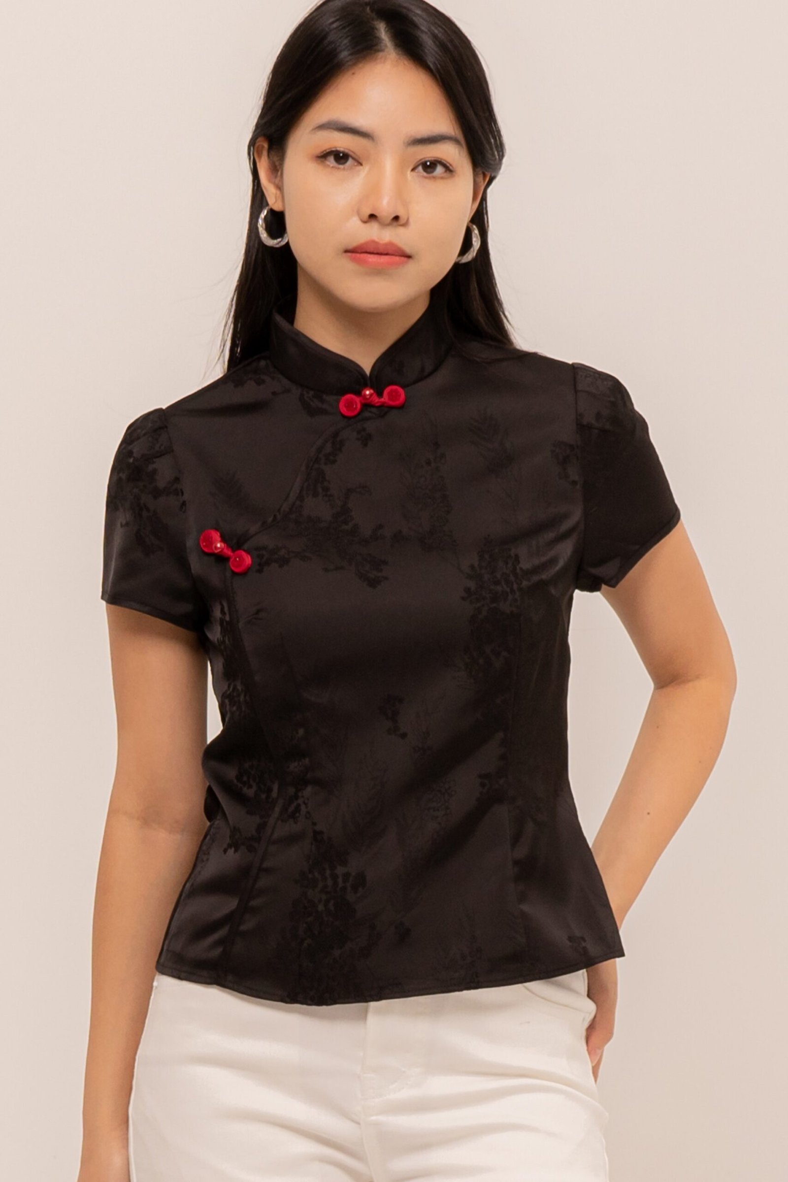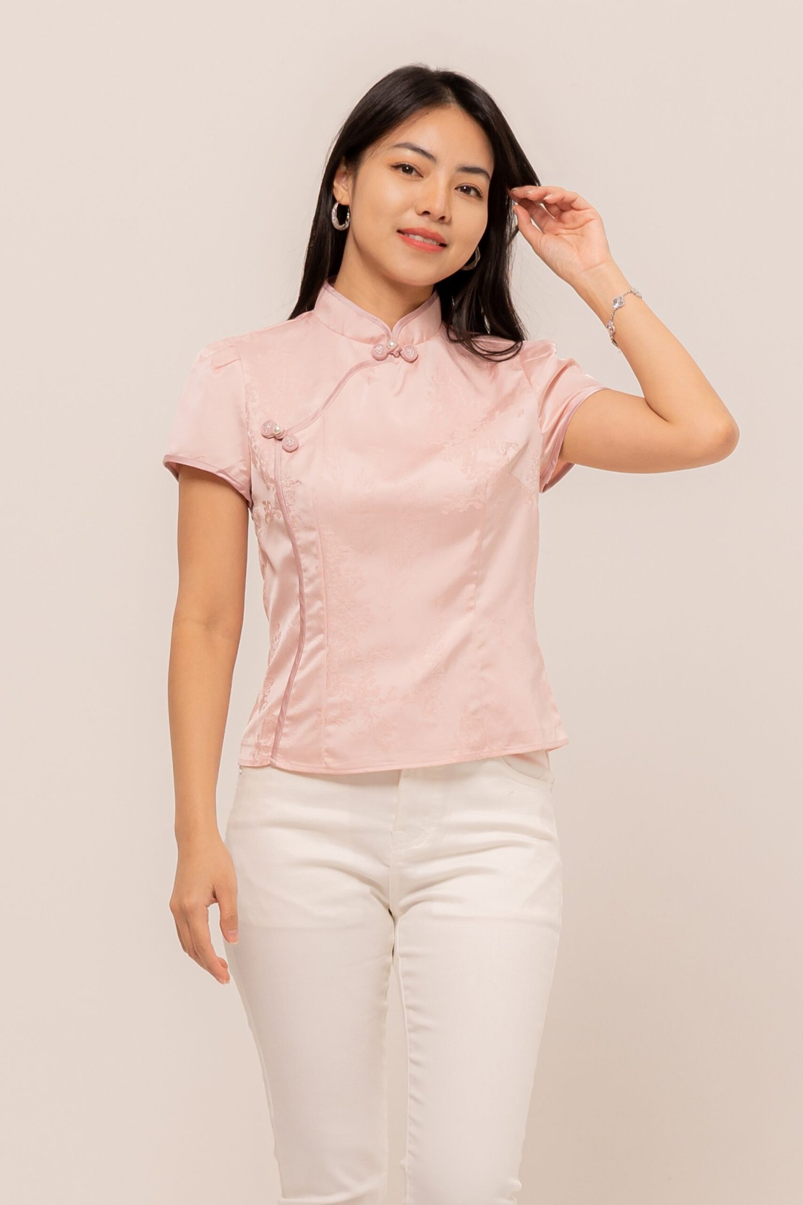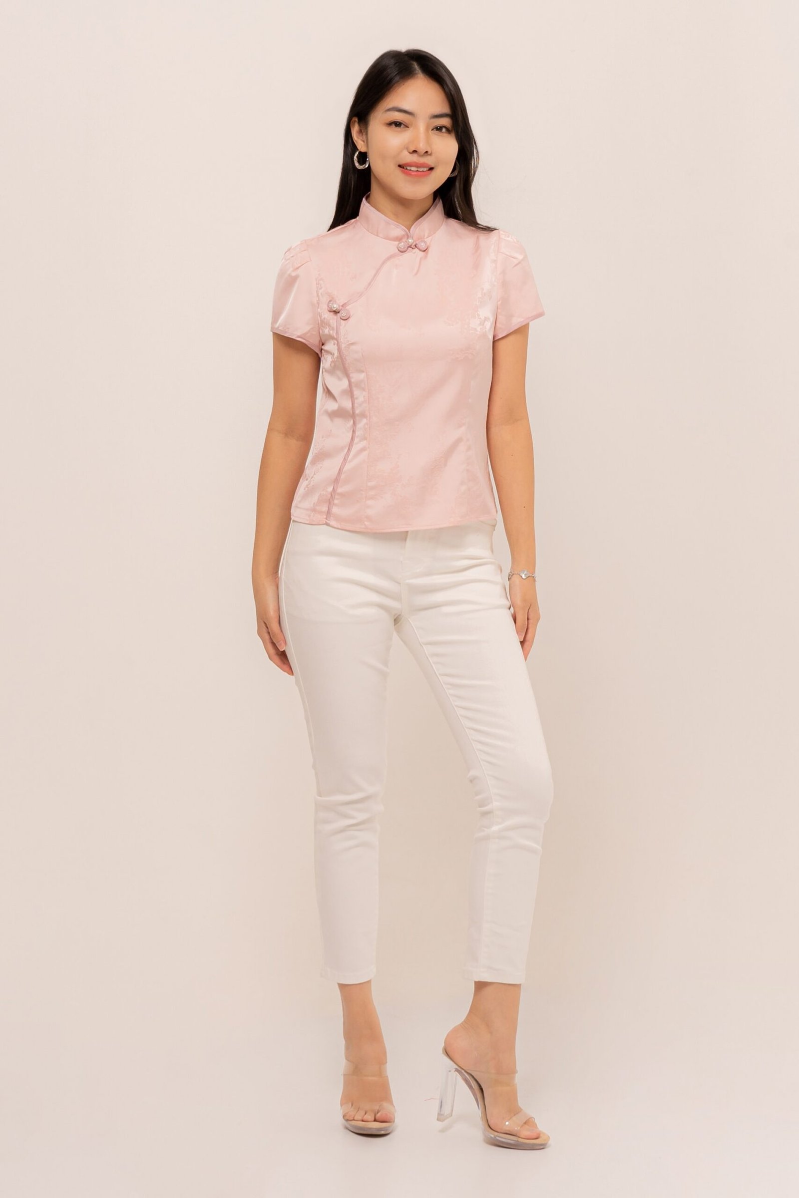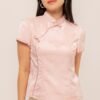Making your day memorable with a touch of rhinestones and sweet mandarin button, MengTing Top