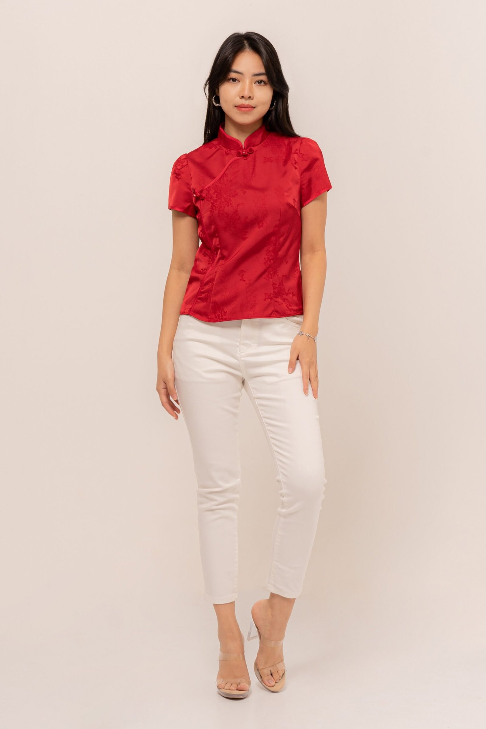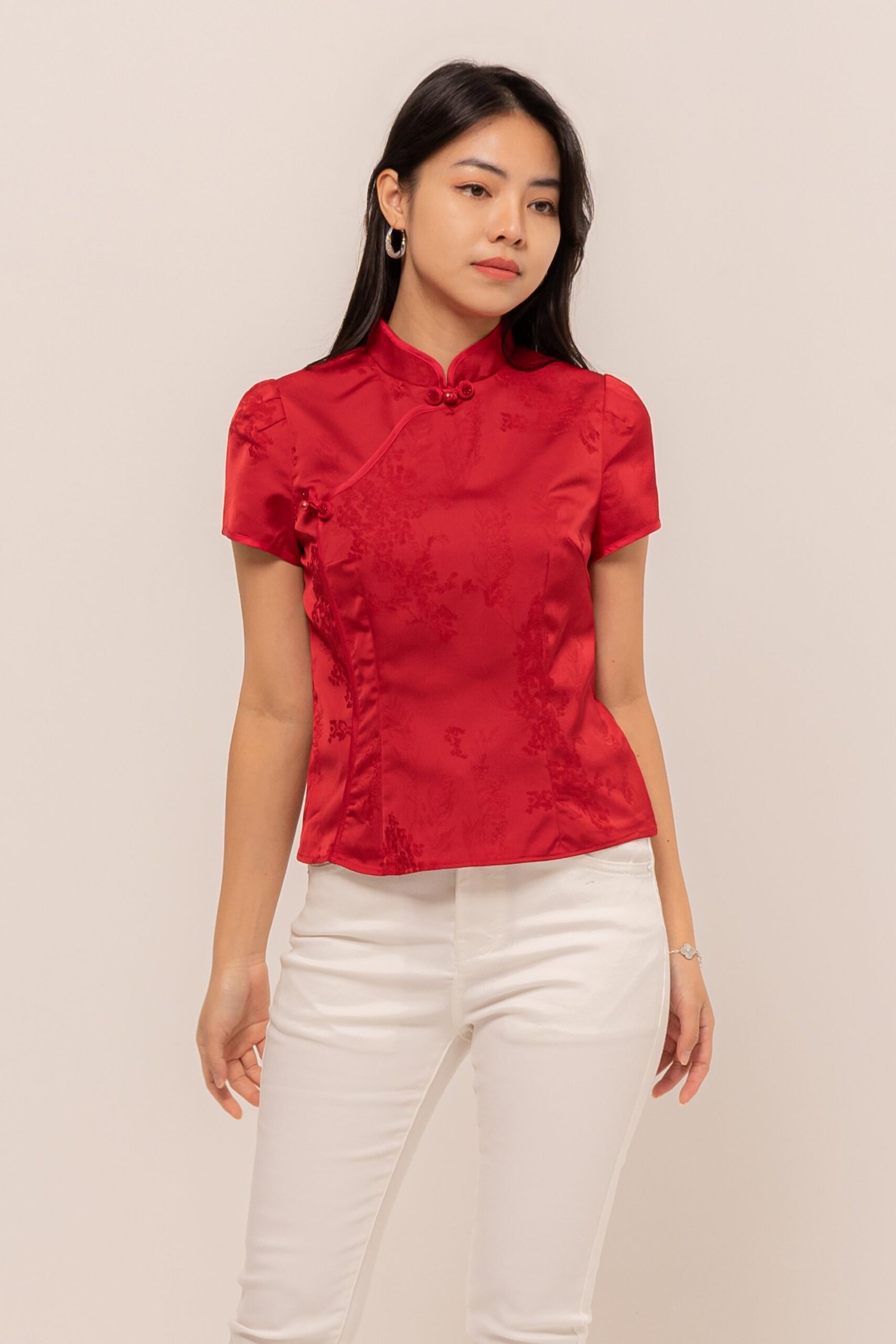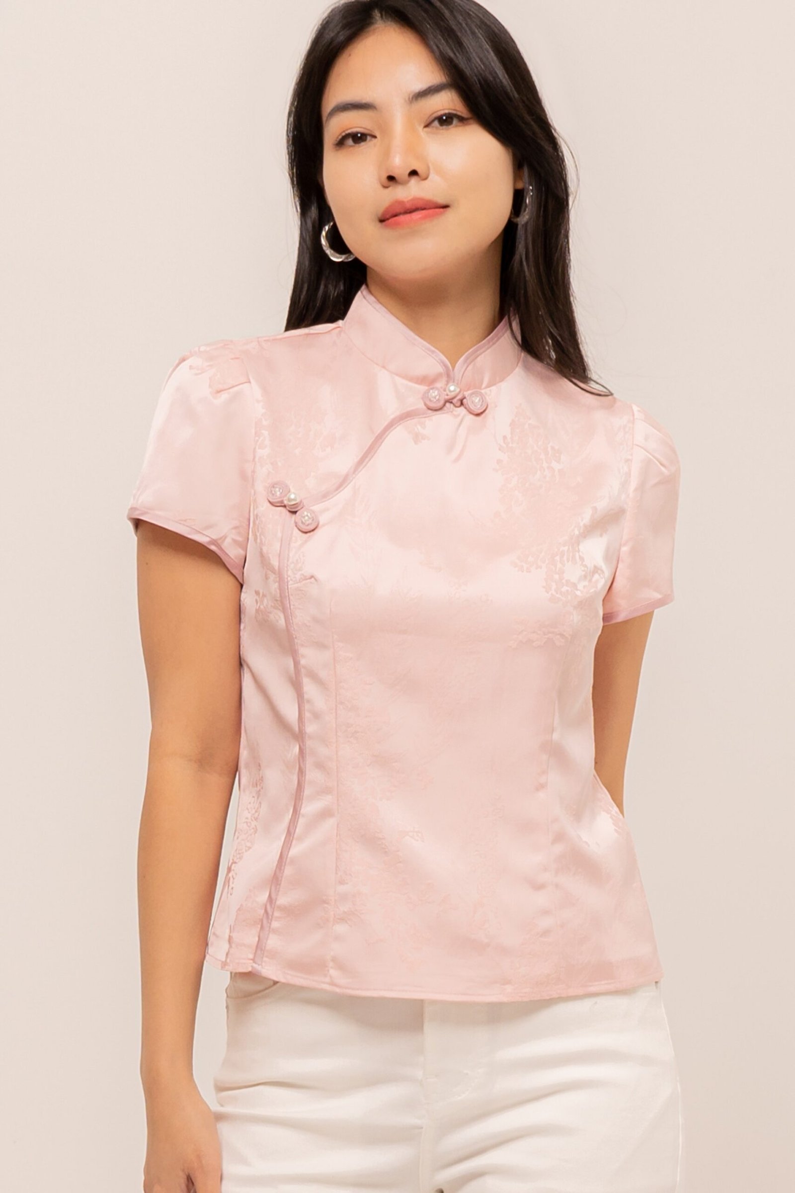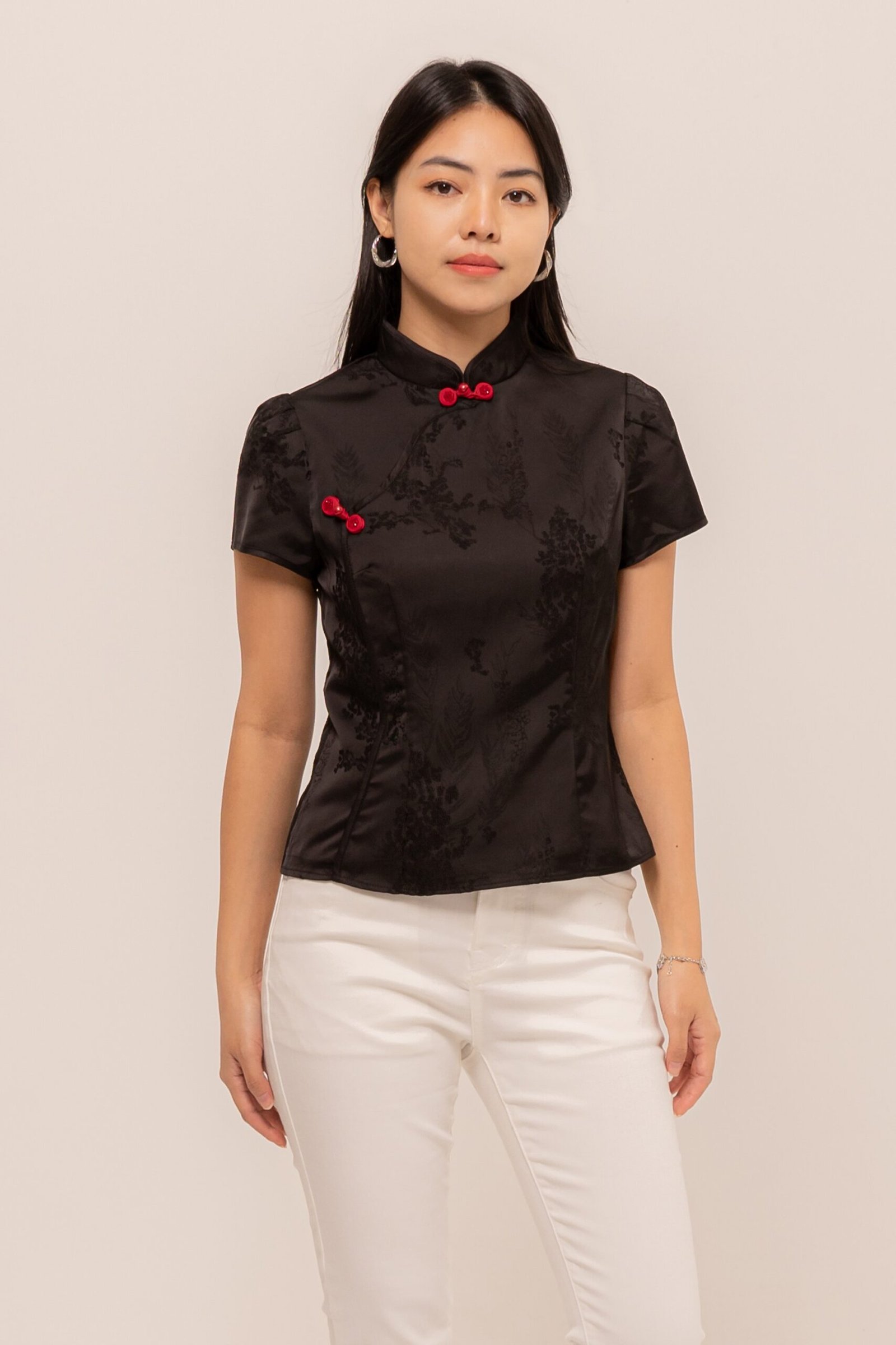 Making your day memorable with a touch of rhinestones and sweet mandarin button, MengTing Top