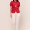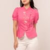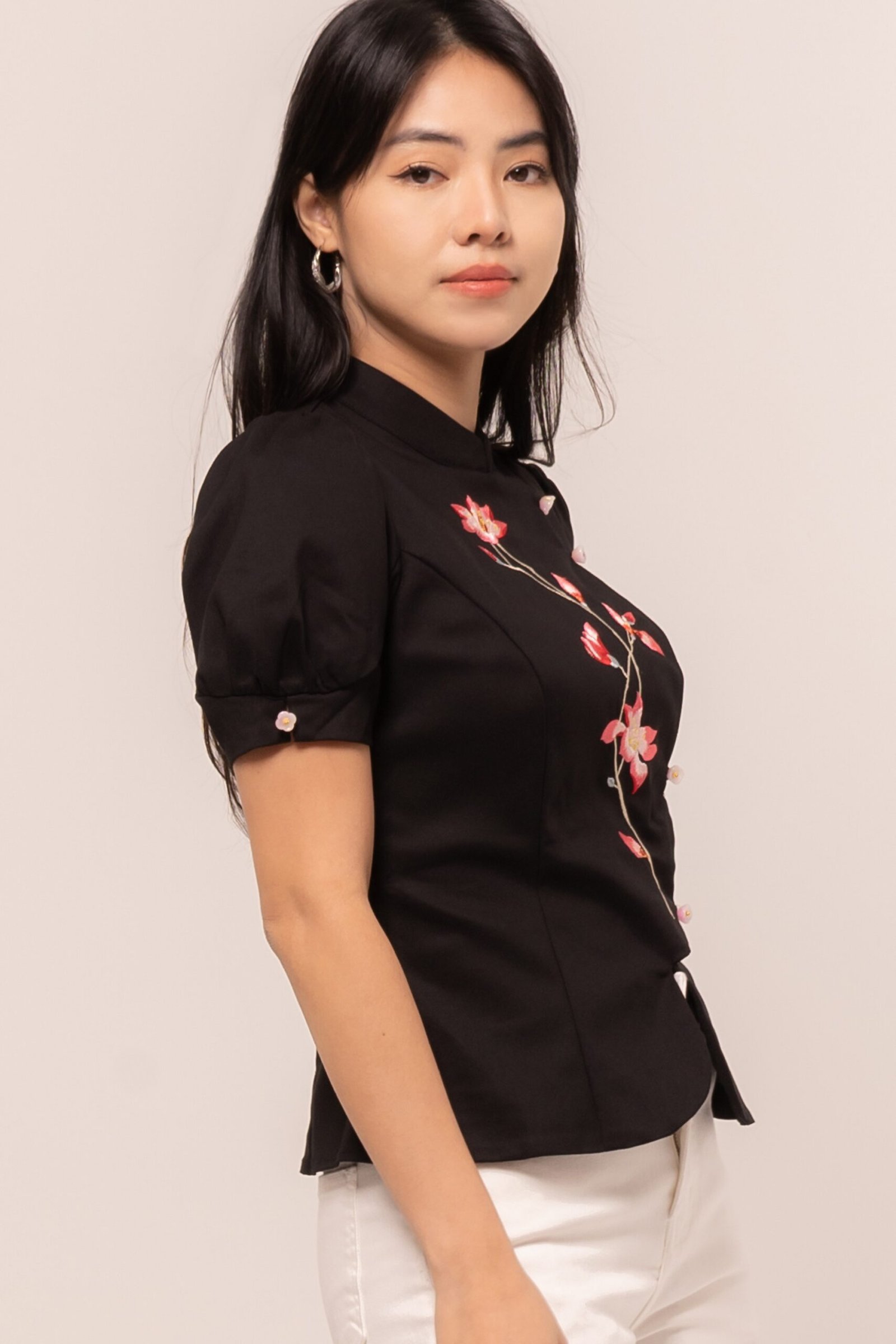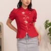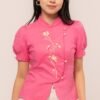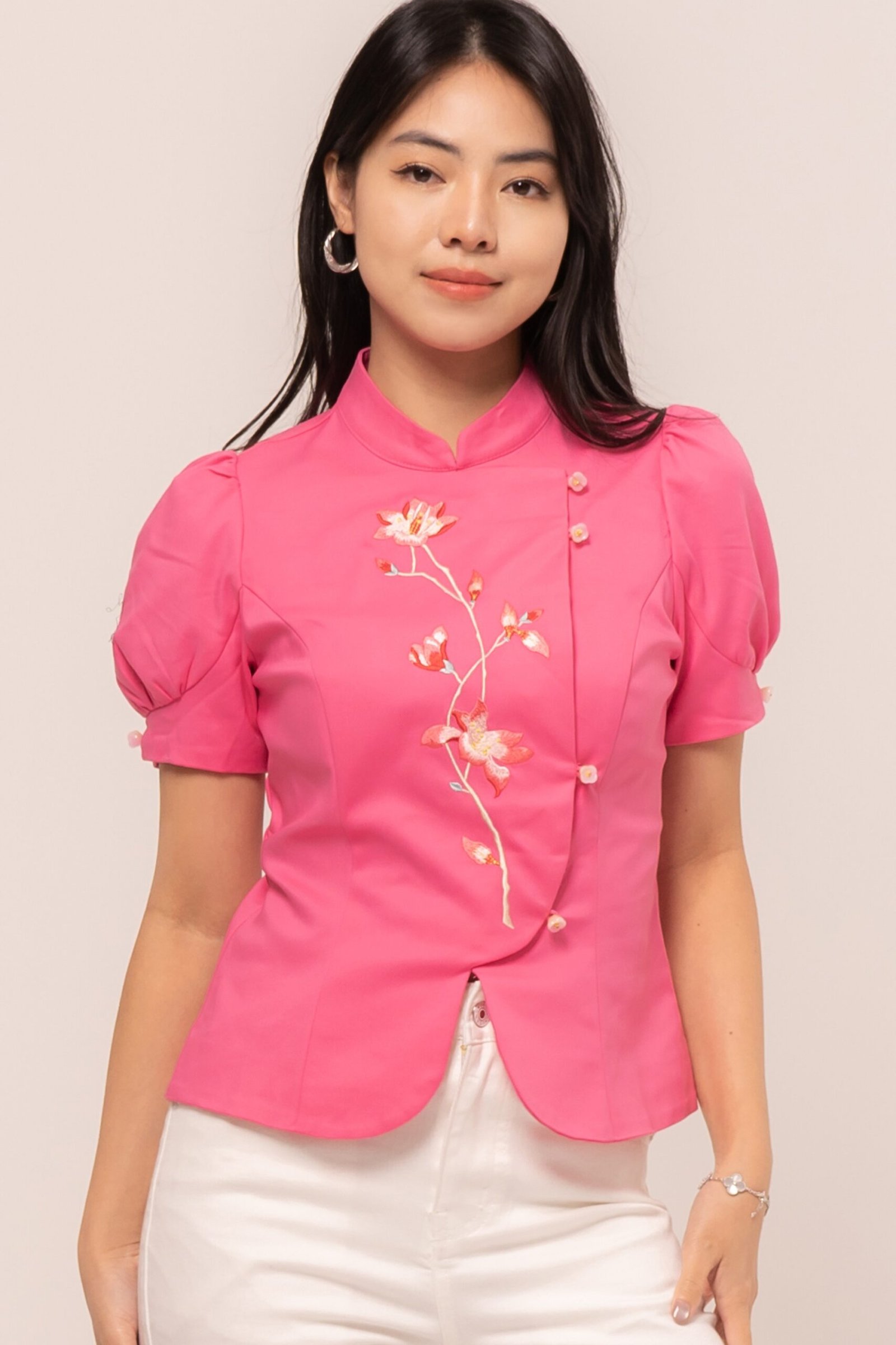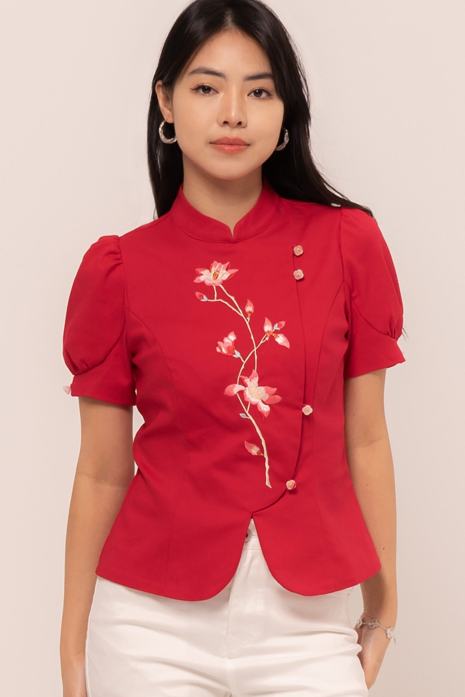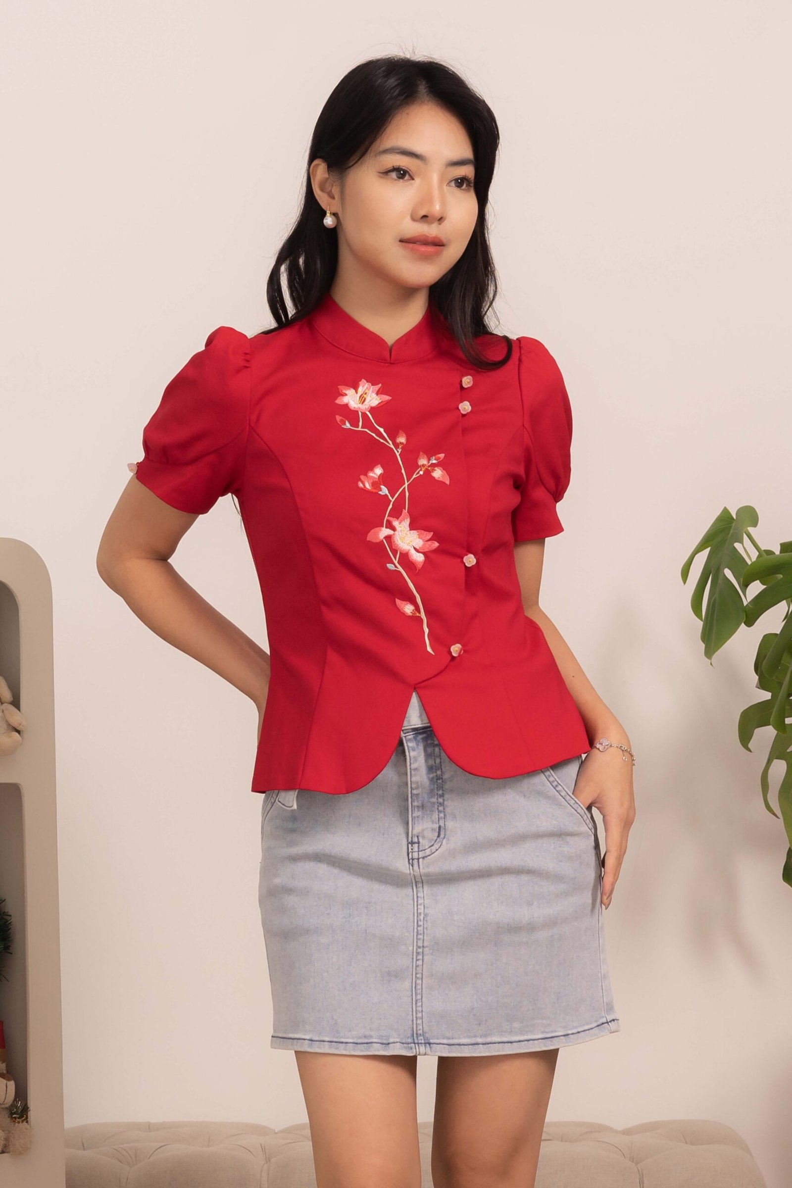 Dress for prosperity in our MingZhu Flower Embroidery Top, where MingZhu represents the blossoming of a new chapter filled with joy and prosperity