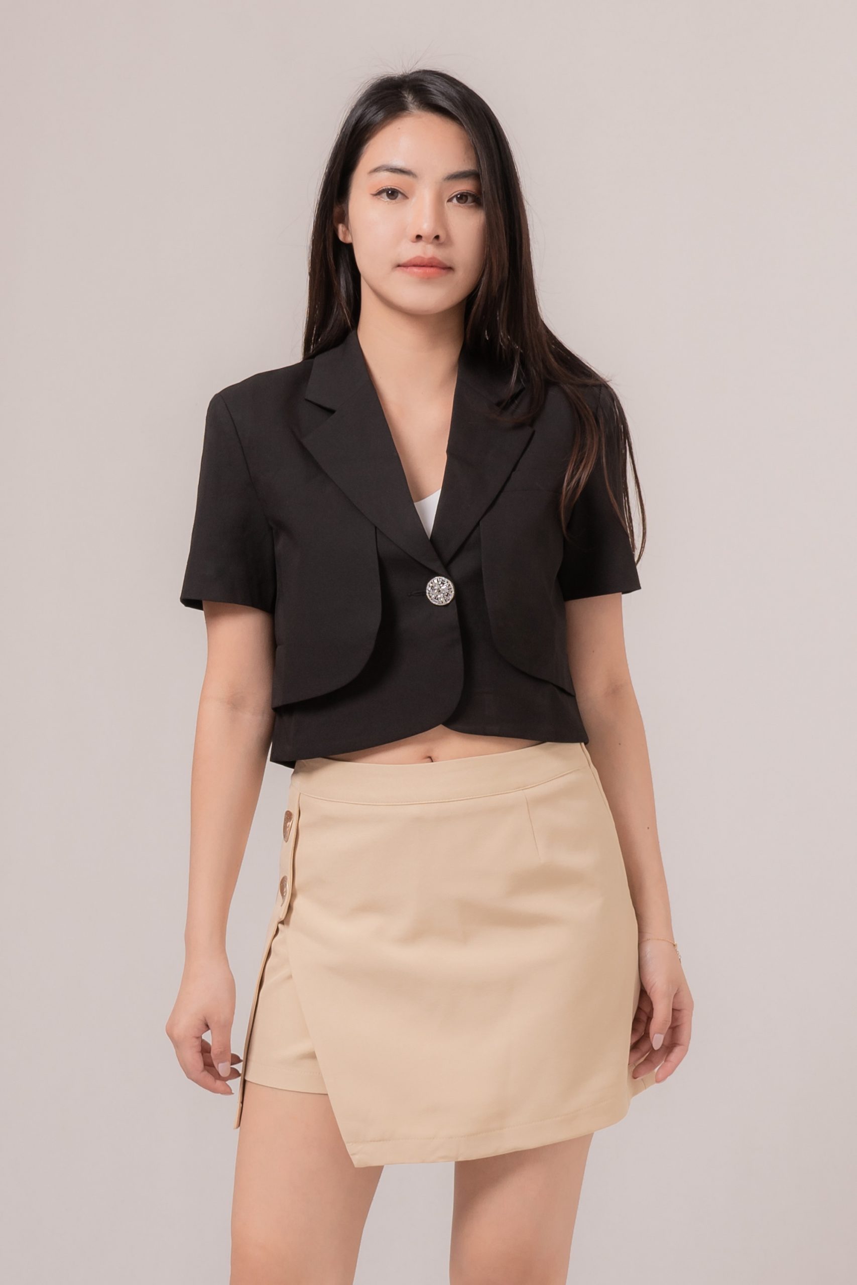 -Terdapat kancing tersembunyi yang fungsional pada bagian depan
