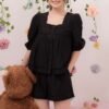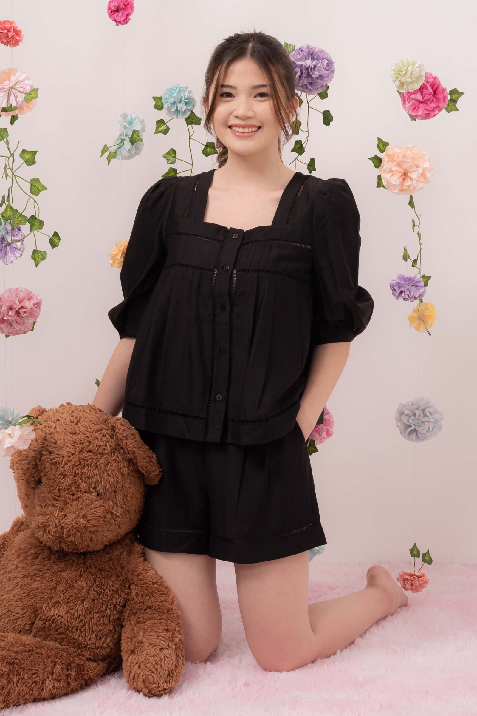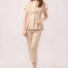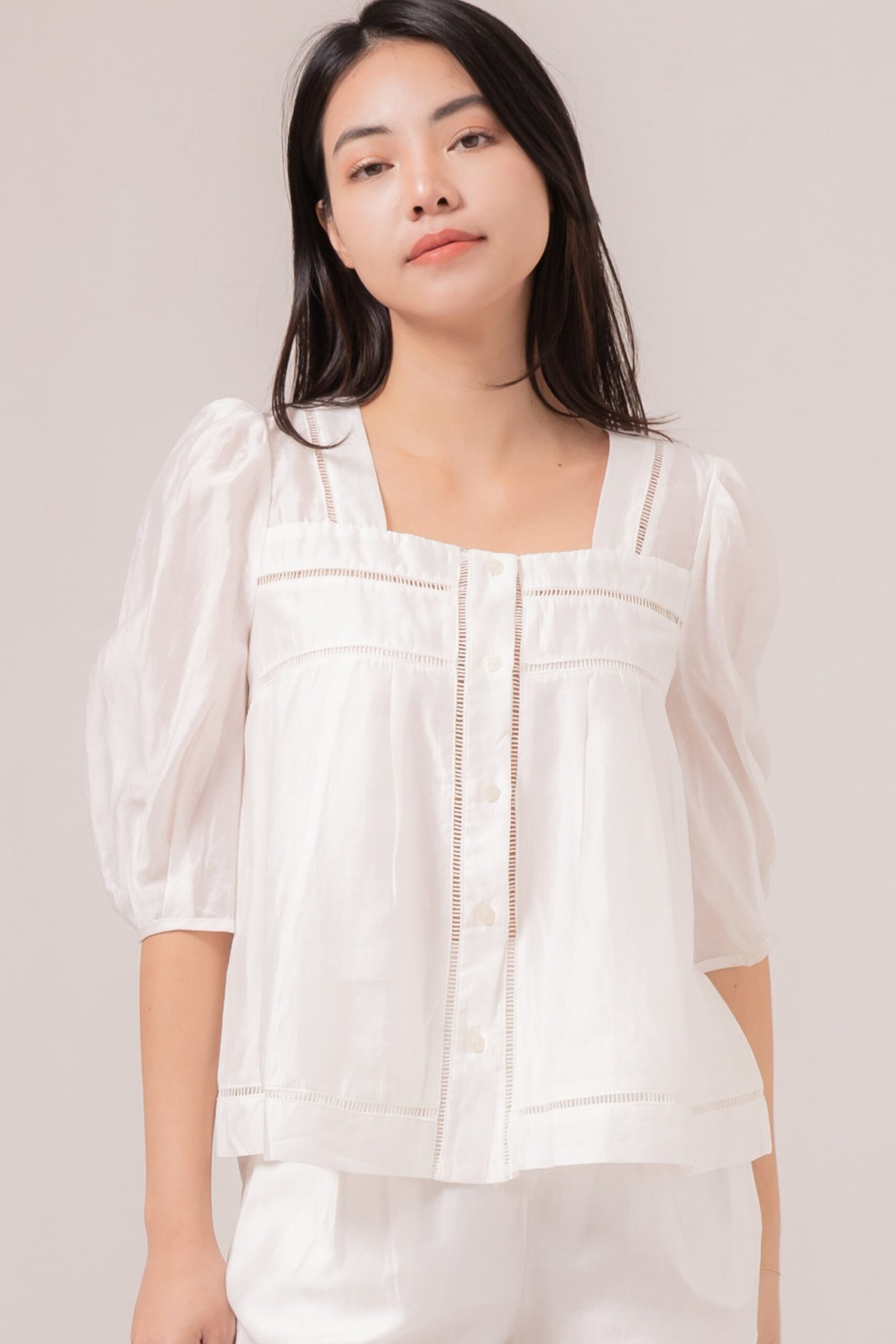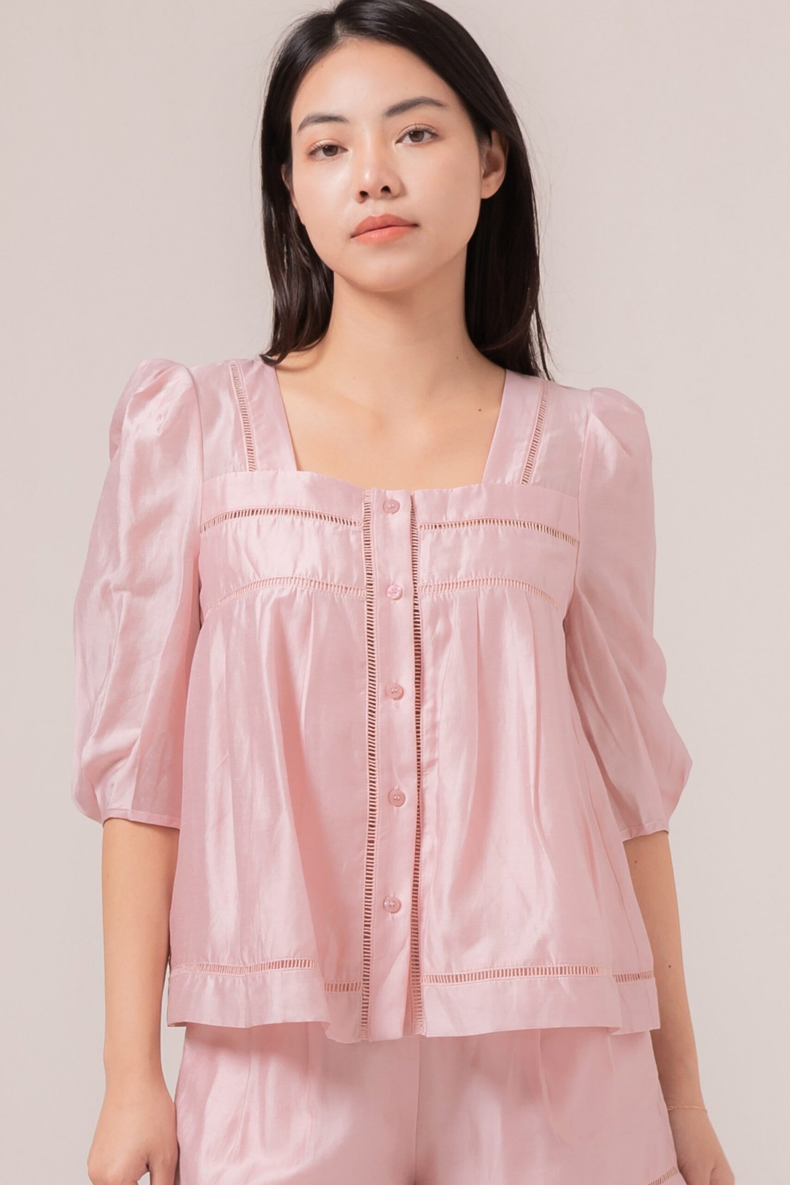 -Terdapat kancing fungsional pada bagian depan atasan