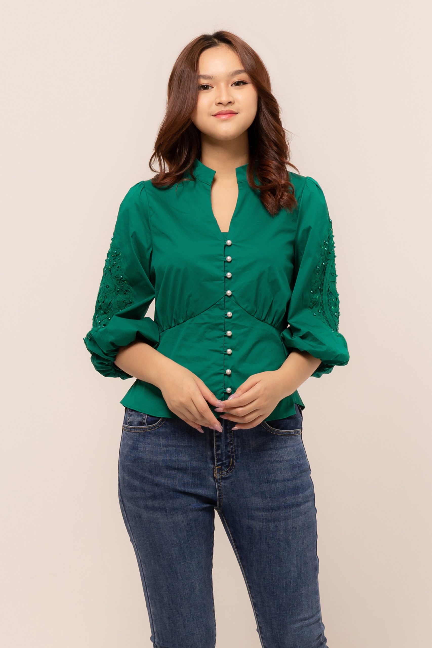 -Bahan elastis dengan cutting lengan yang manis