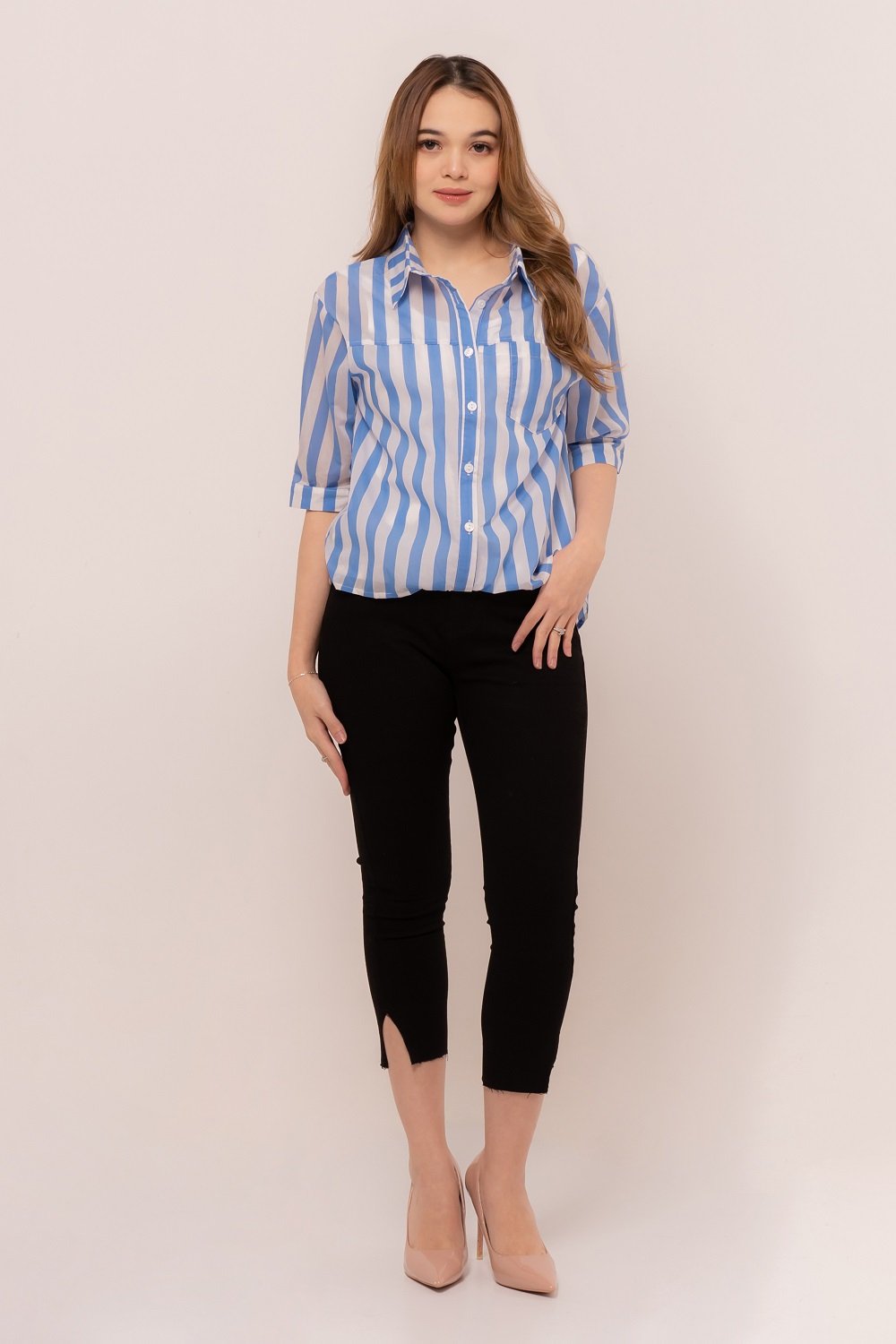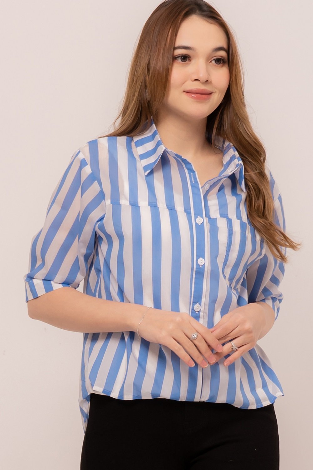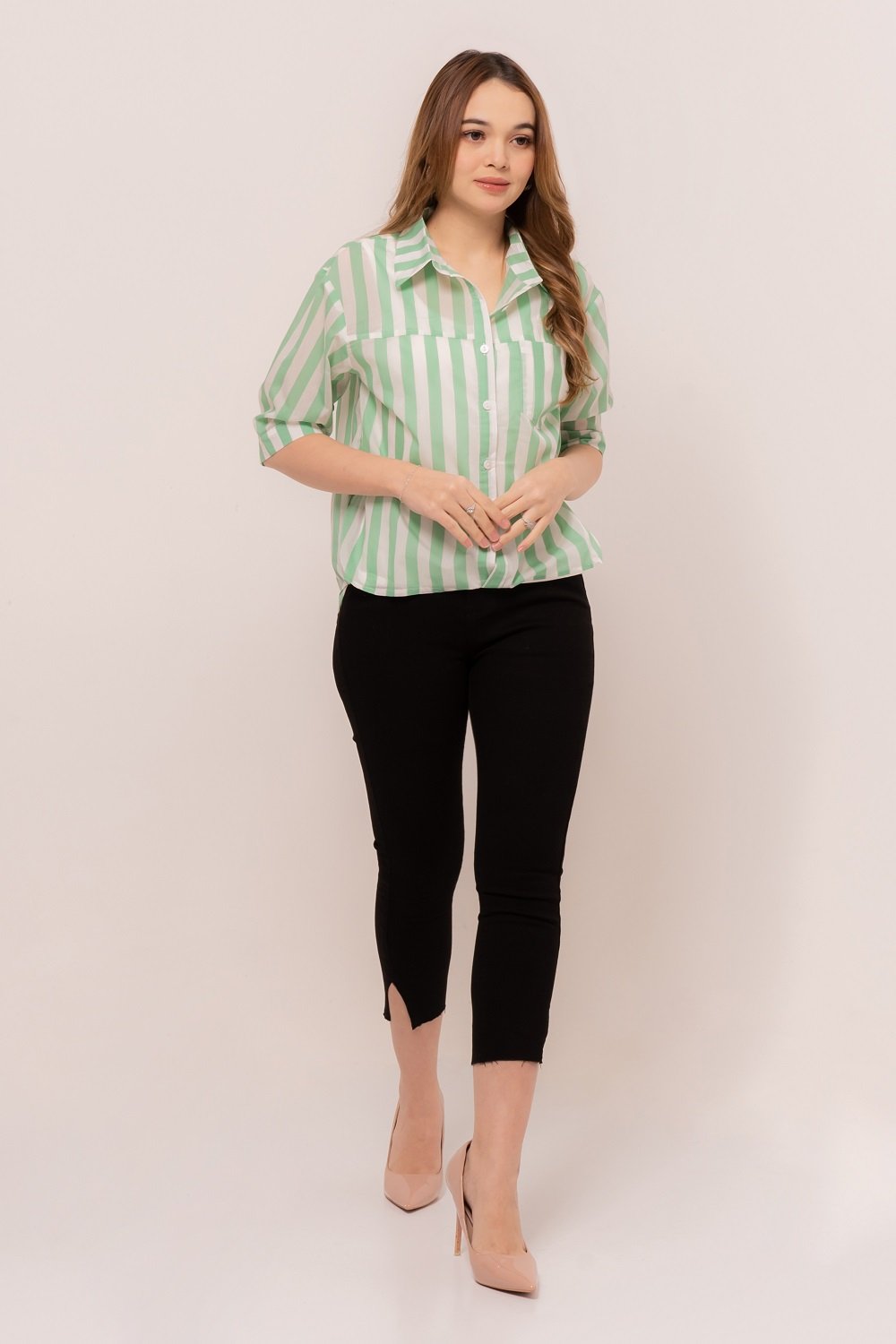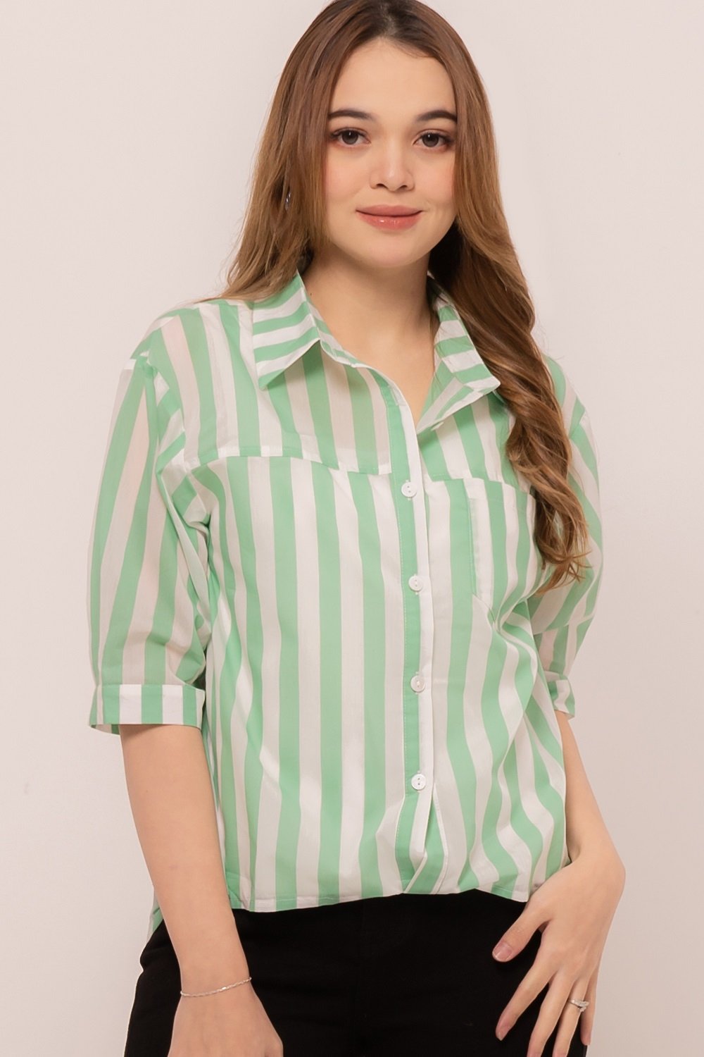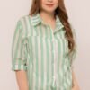 -Motif stripes yang menawan dengan tank top pada bagian dalam