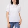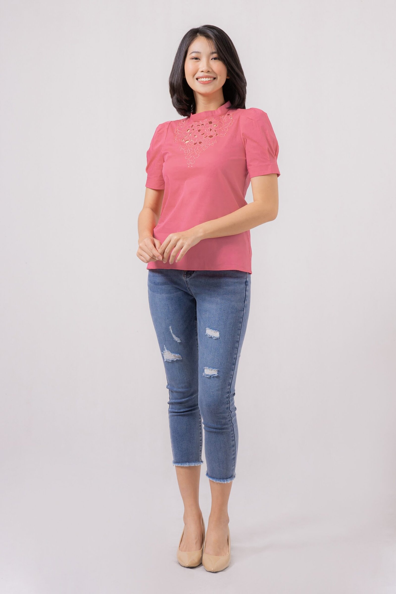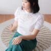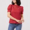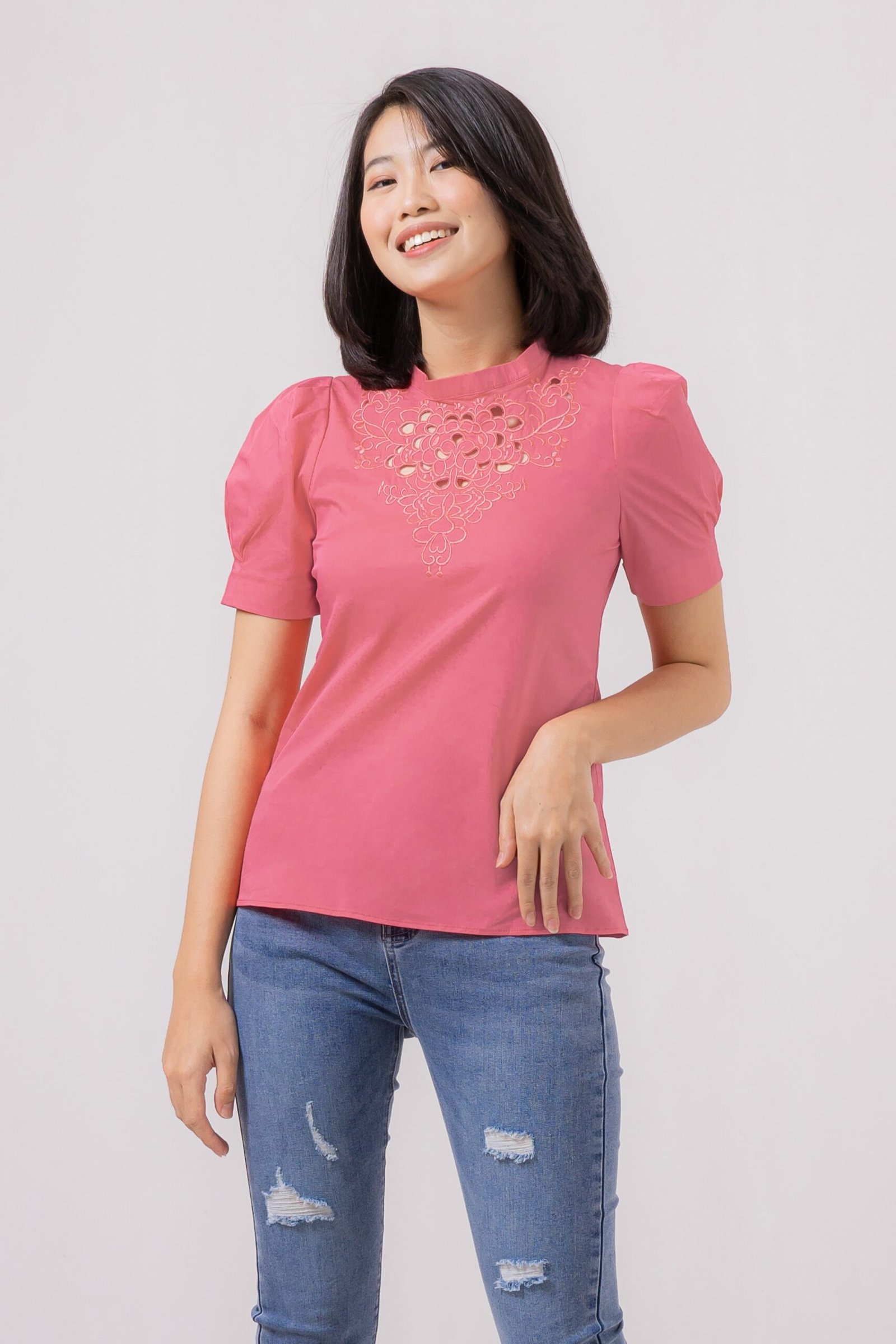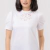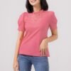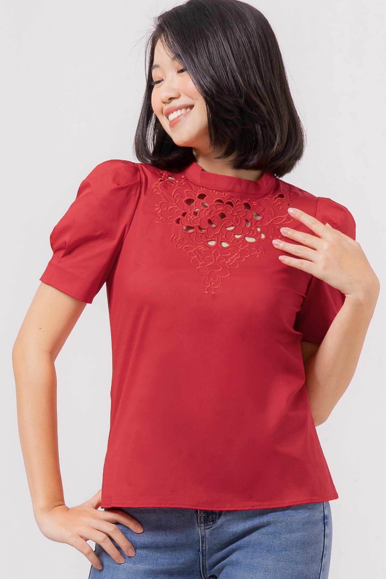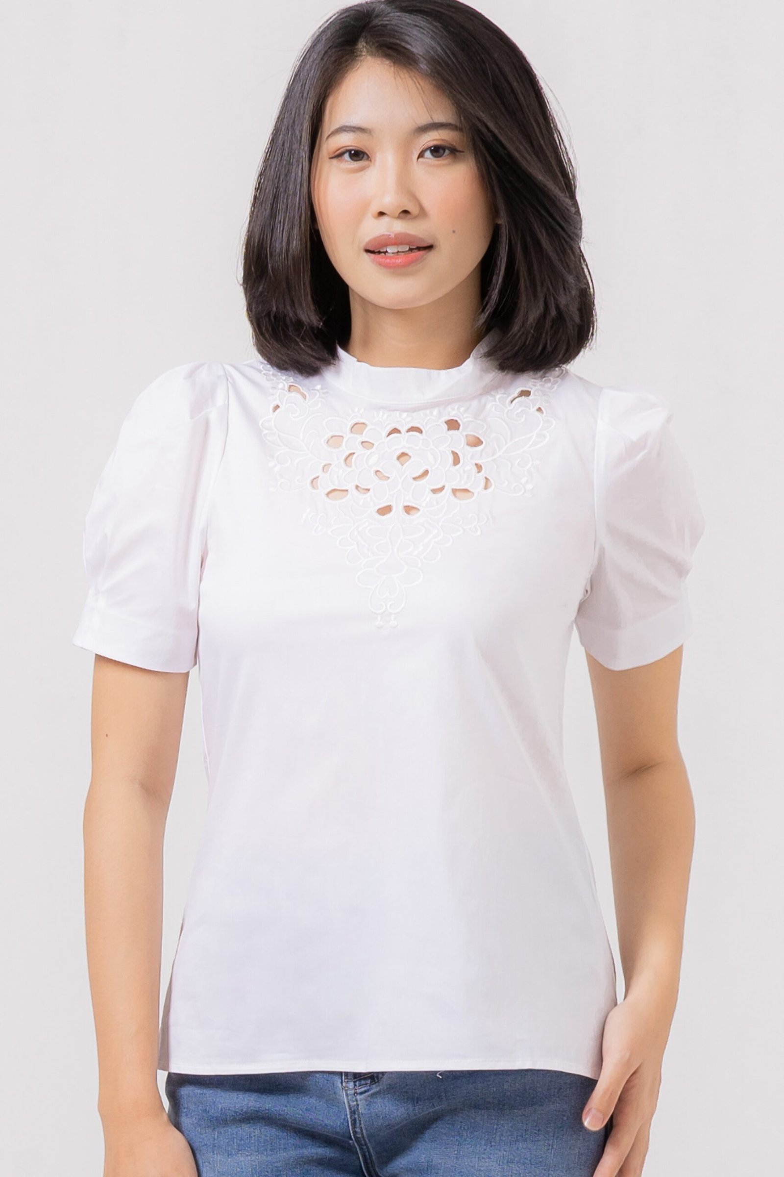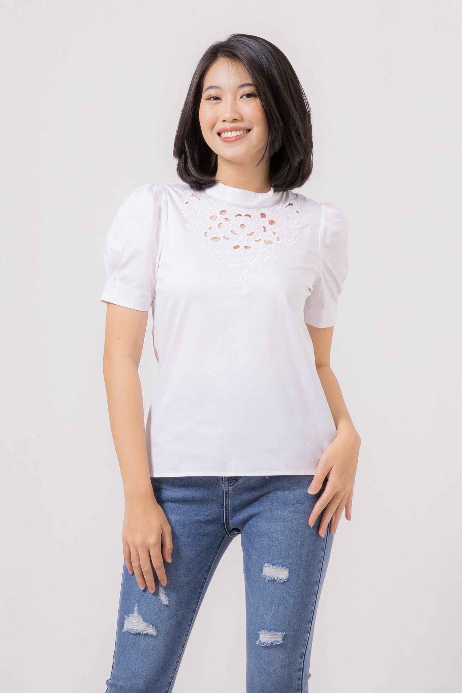 Cute puffy sleeves top with sweet anglaise neckline detail