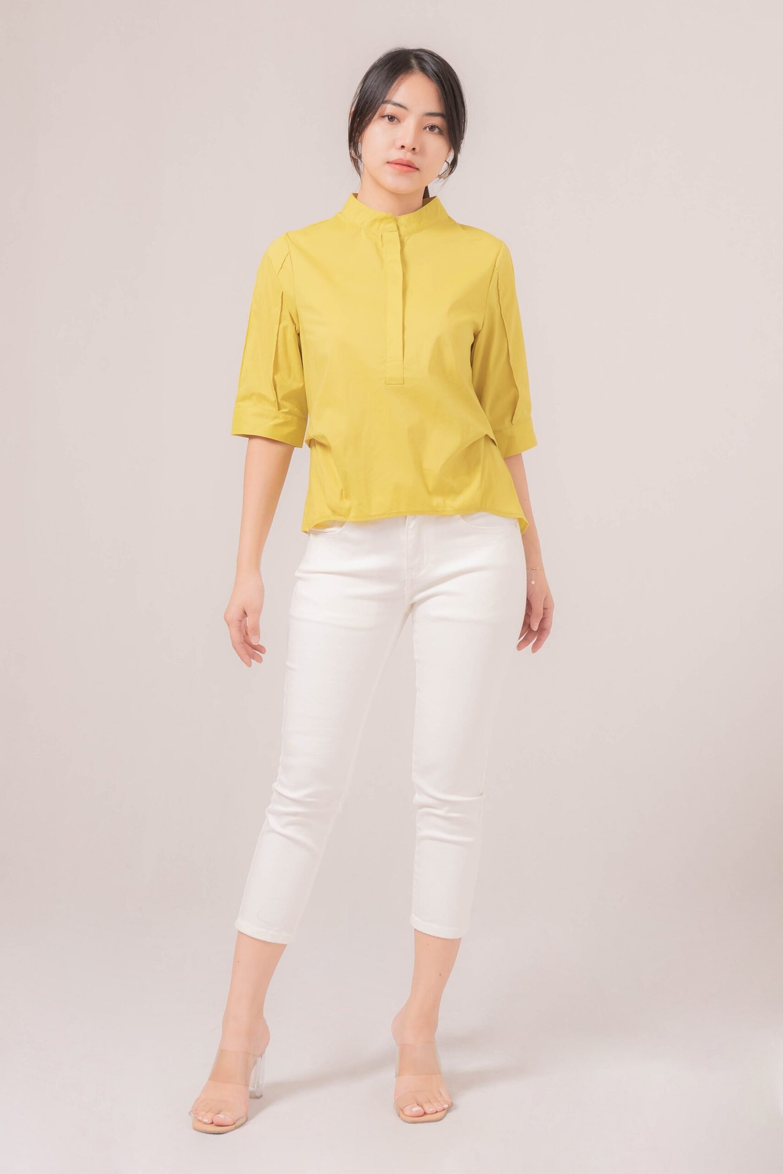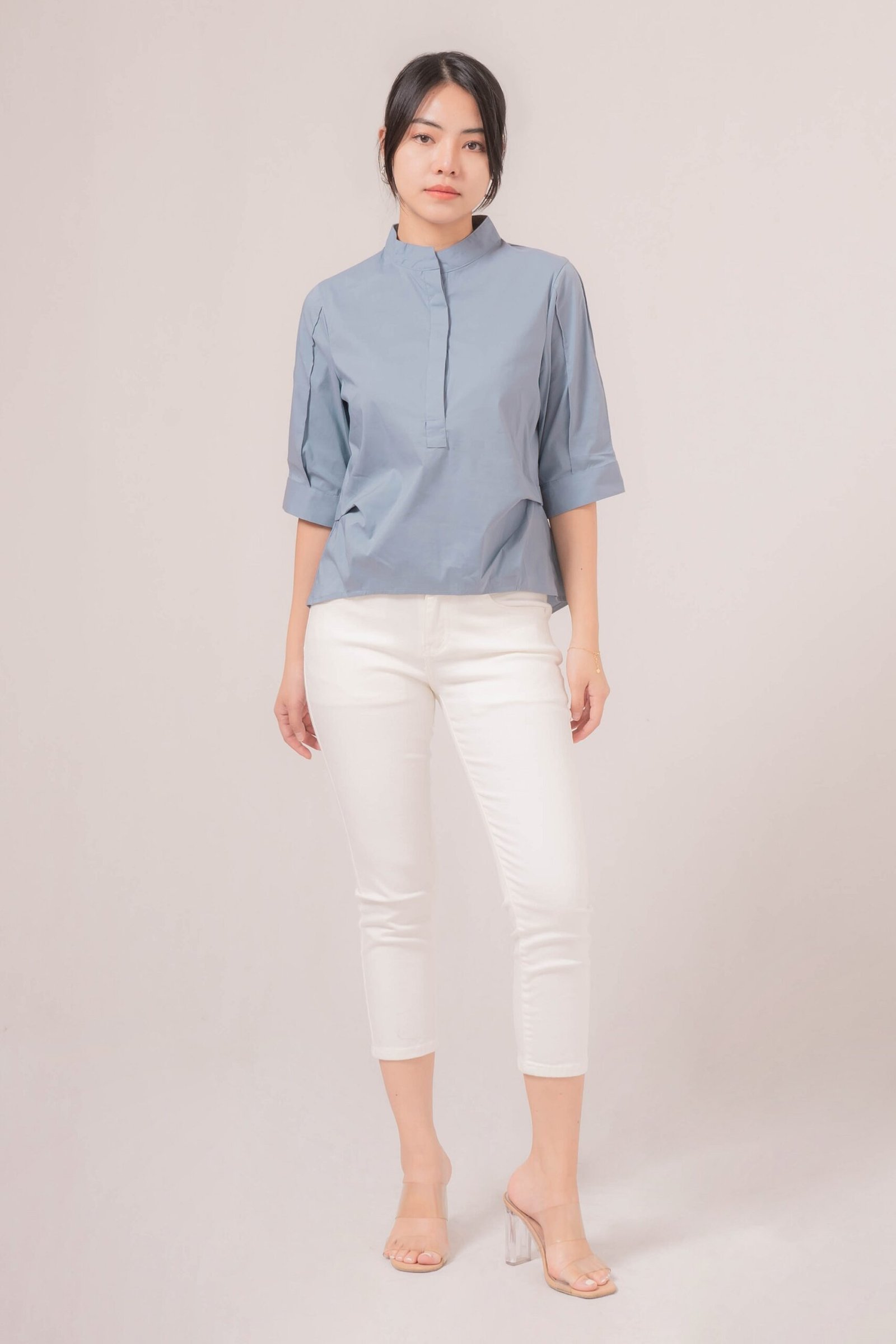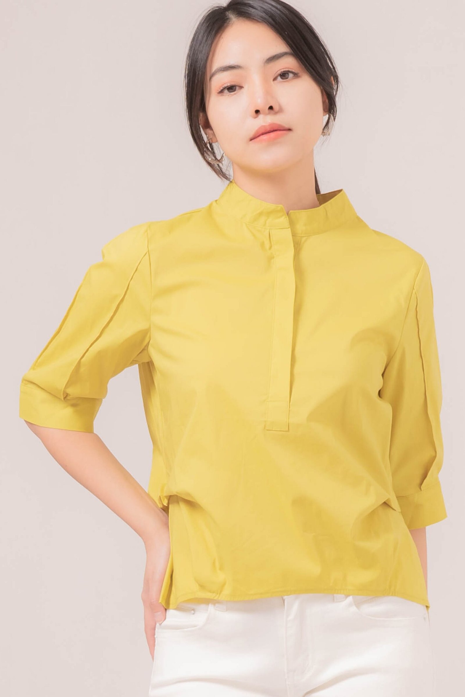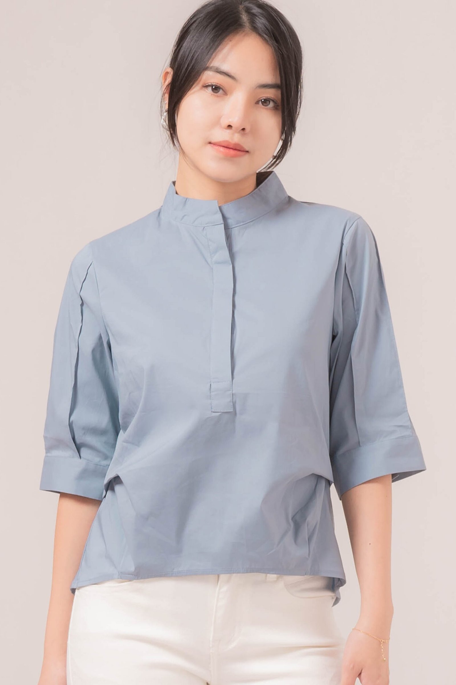 -Kerah tegak yang memberikan kesan rapi