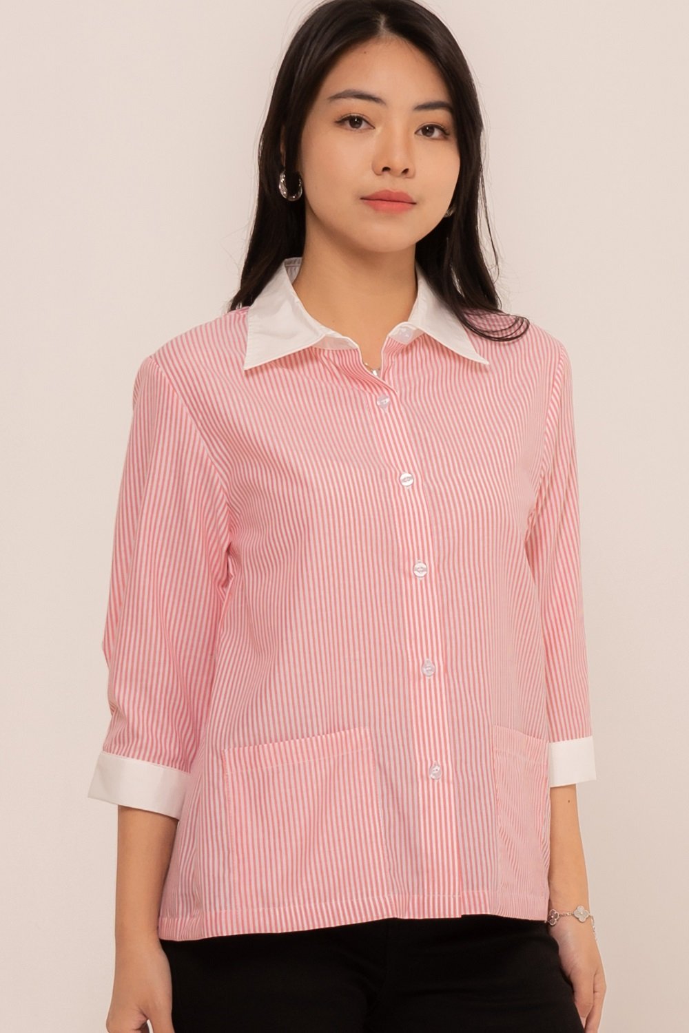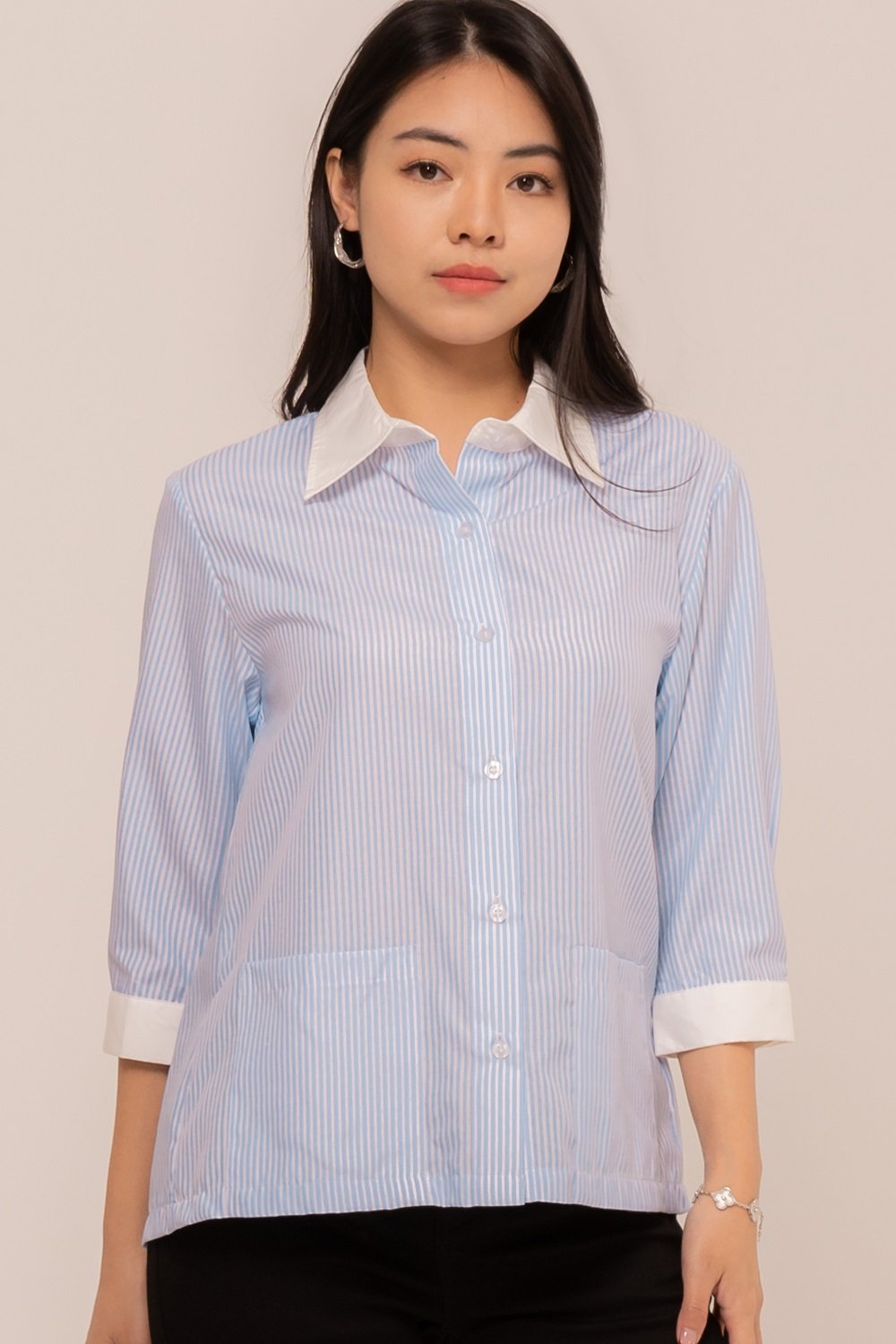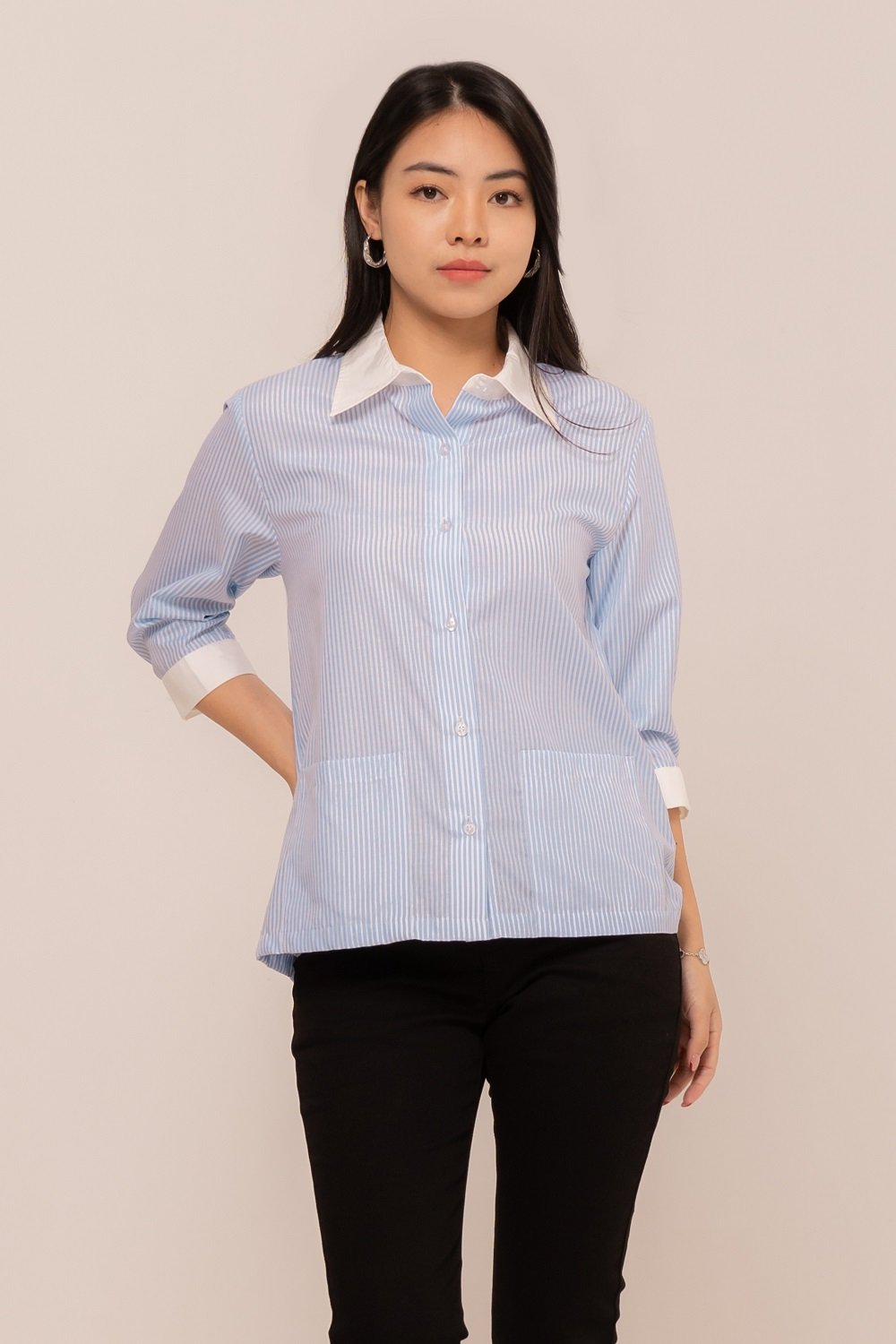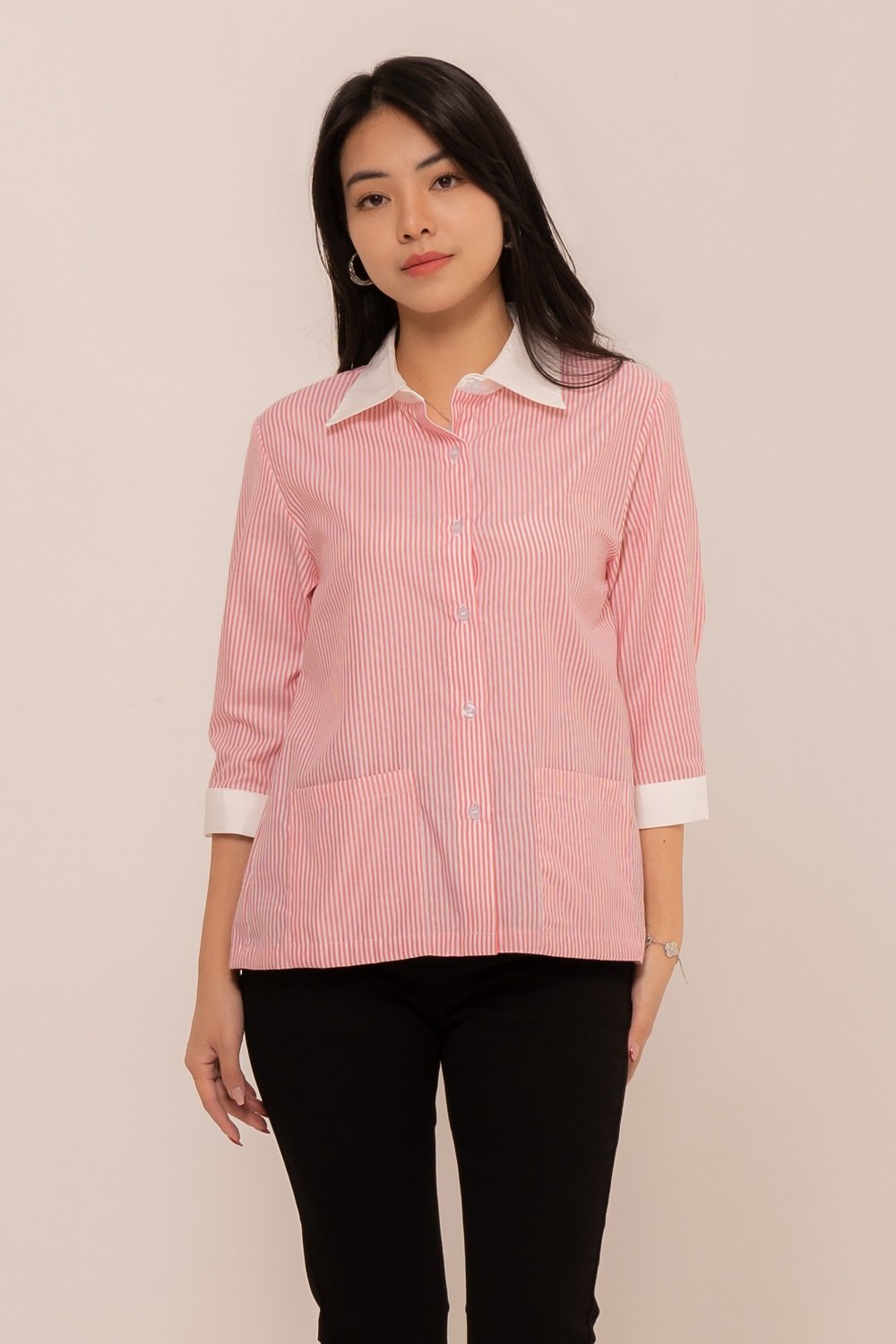 -Kancing depan dan kancing lengan fungsional