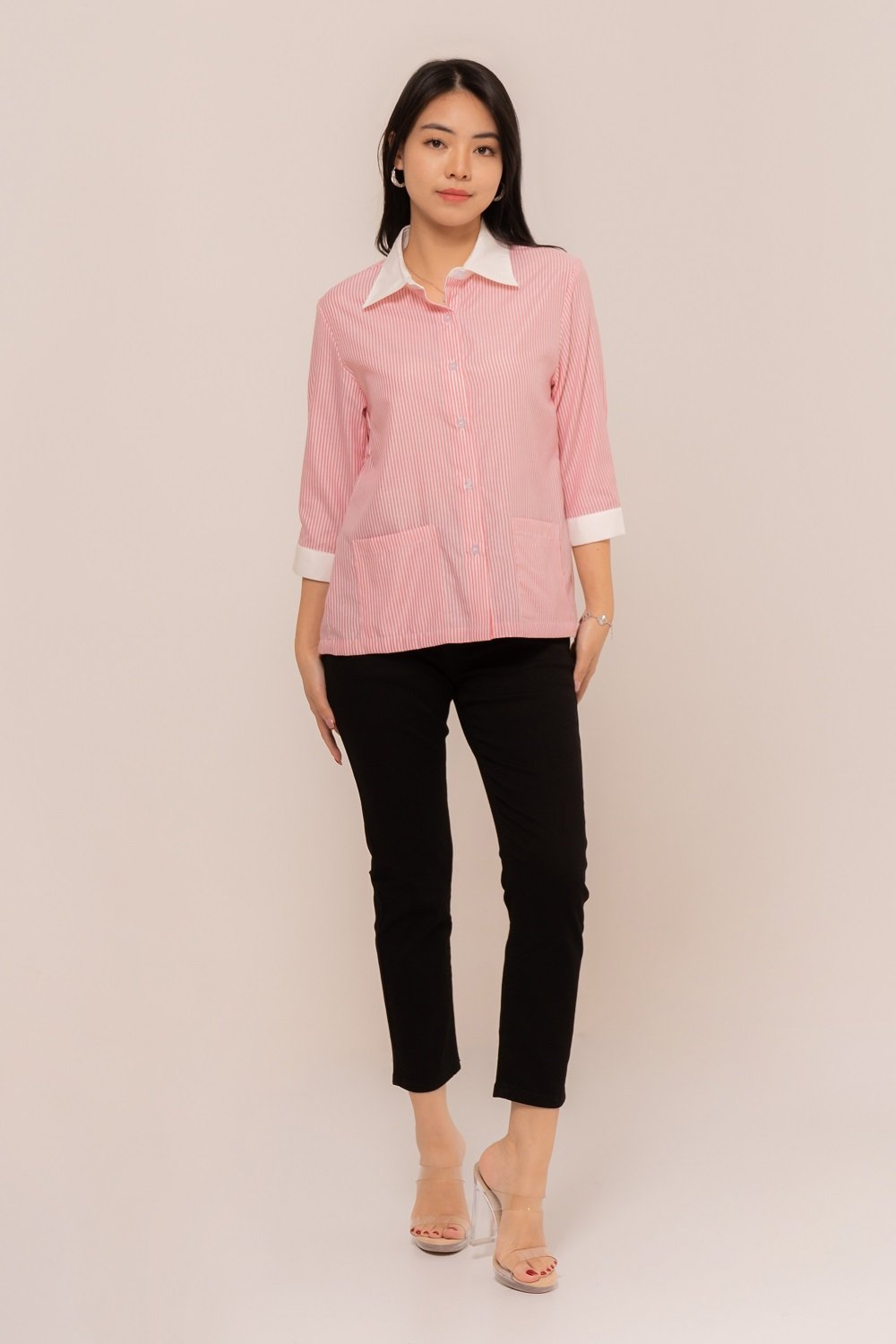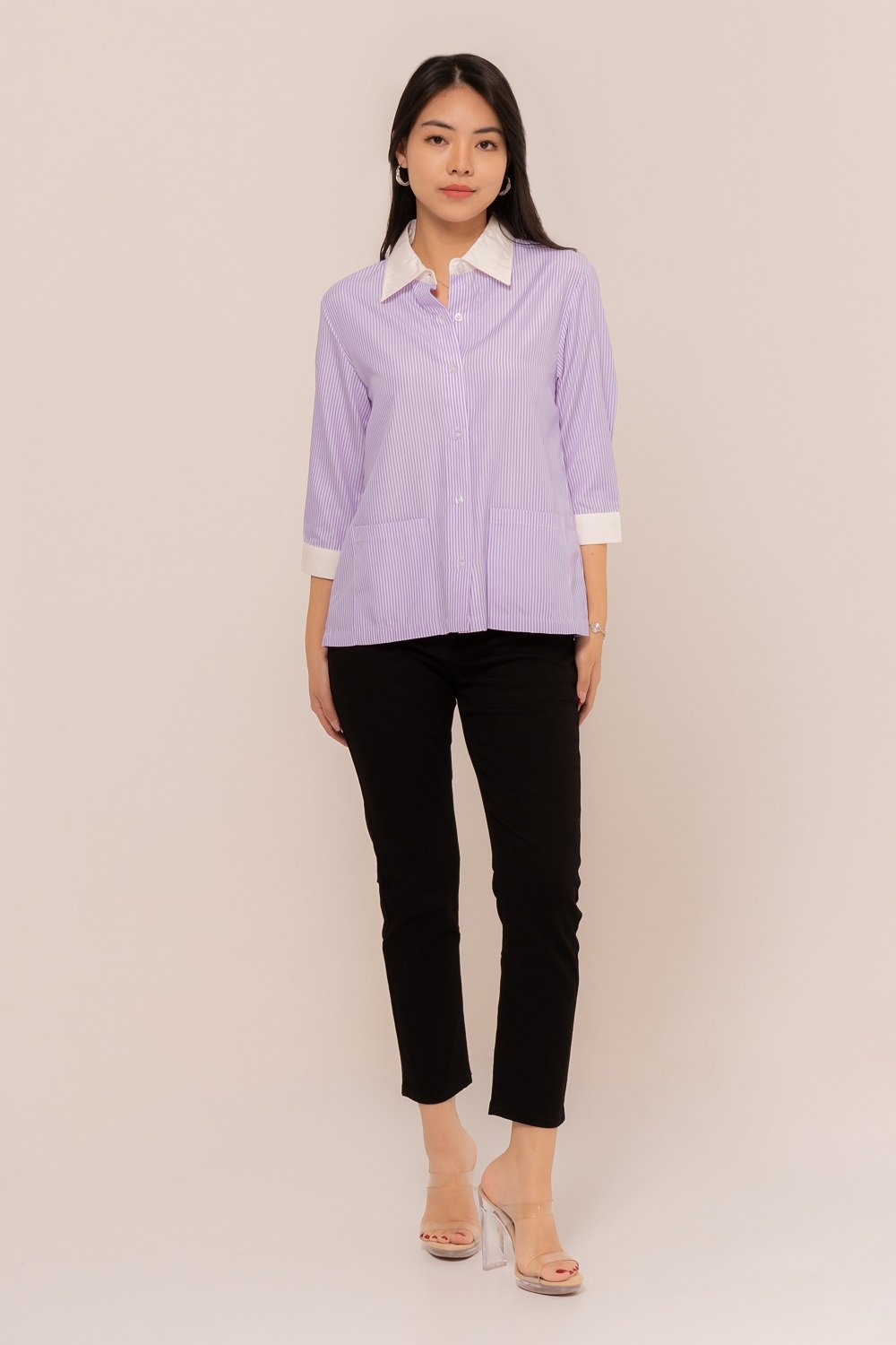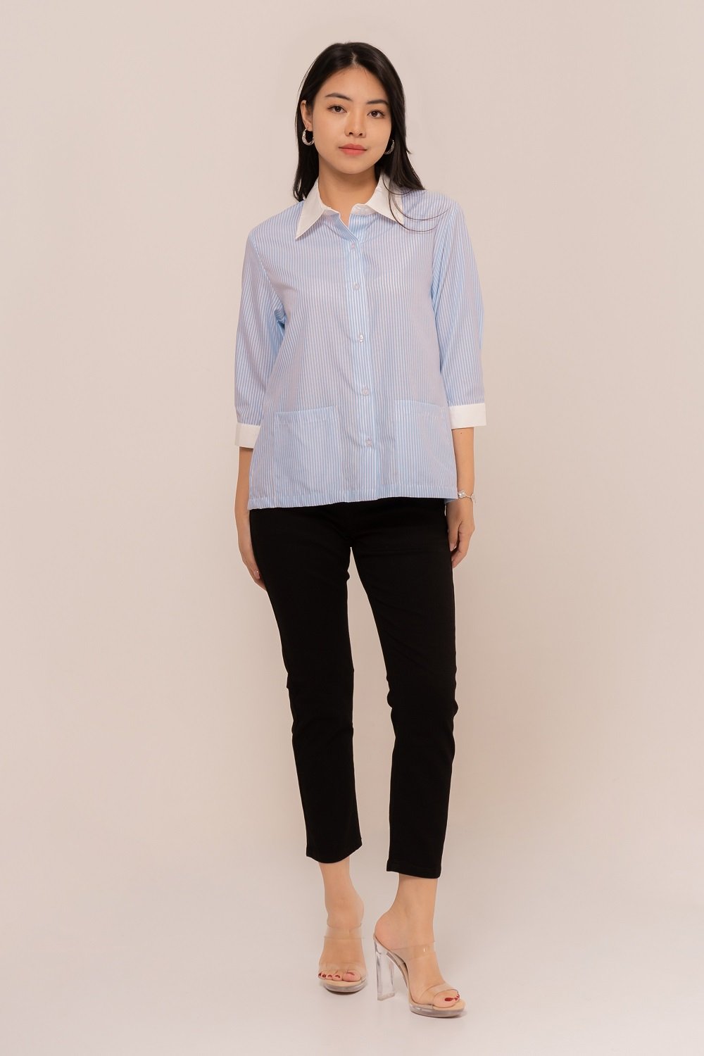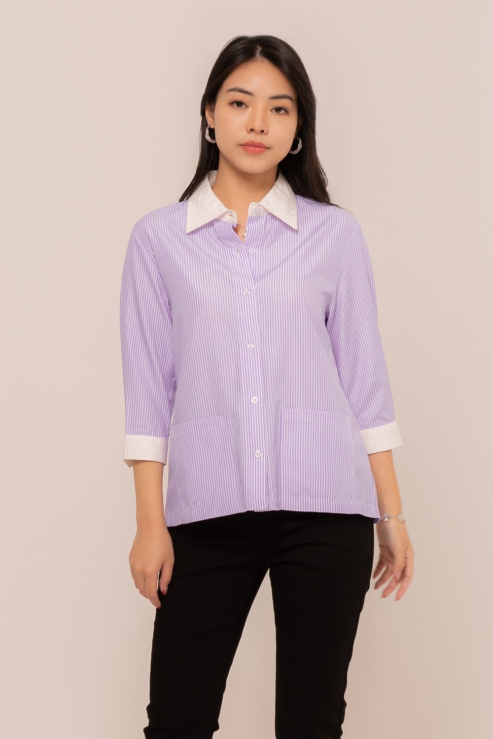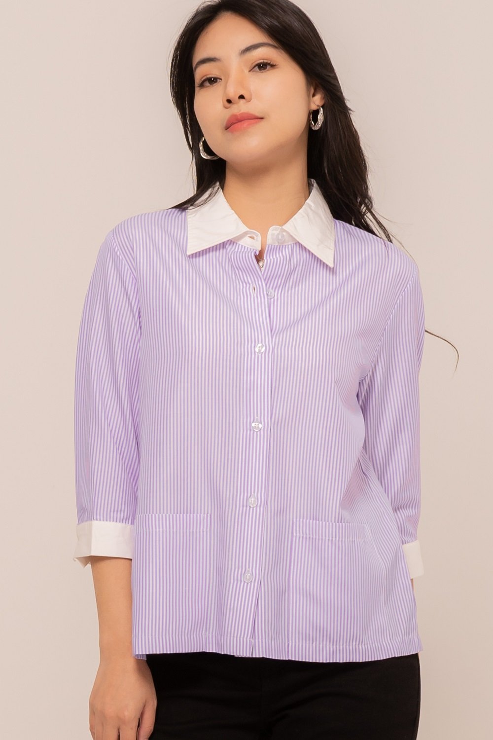 -Kancing depan dan kancing lengan fungsional