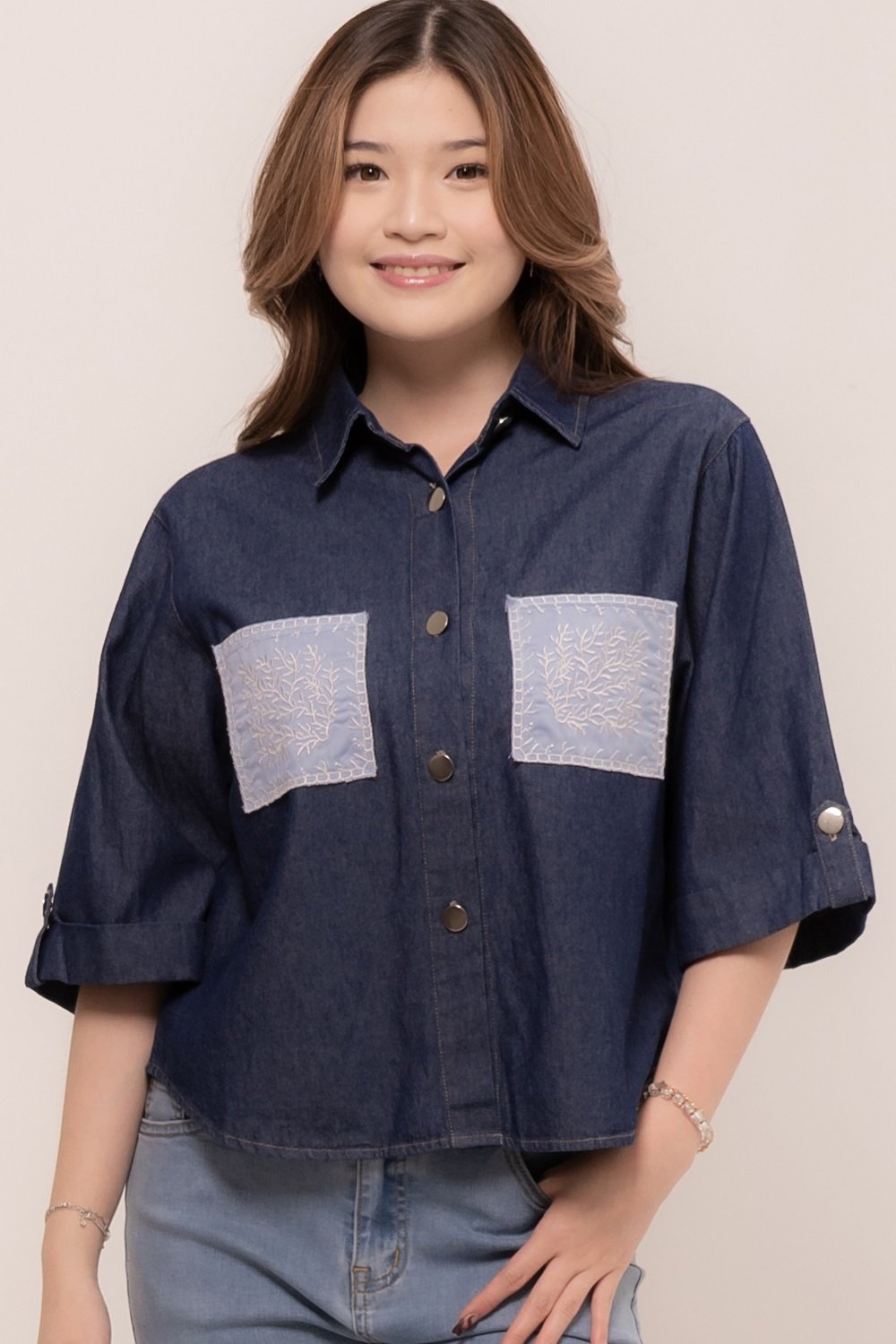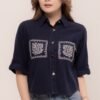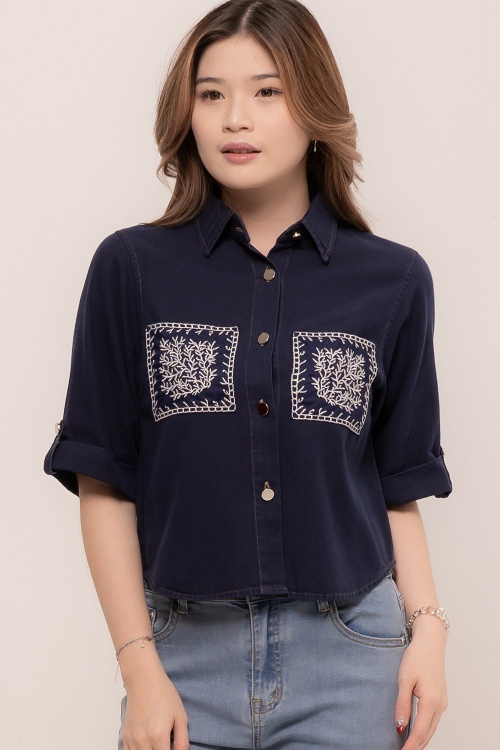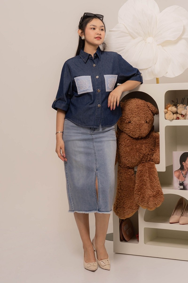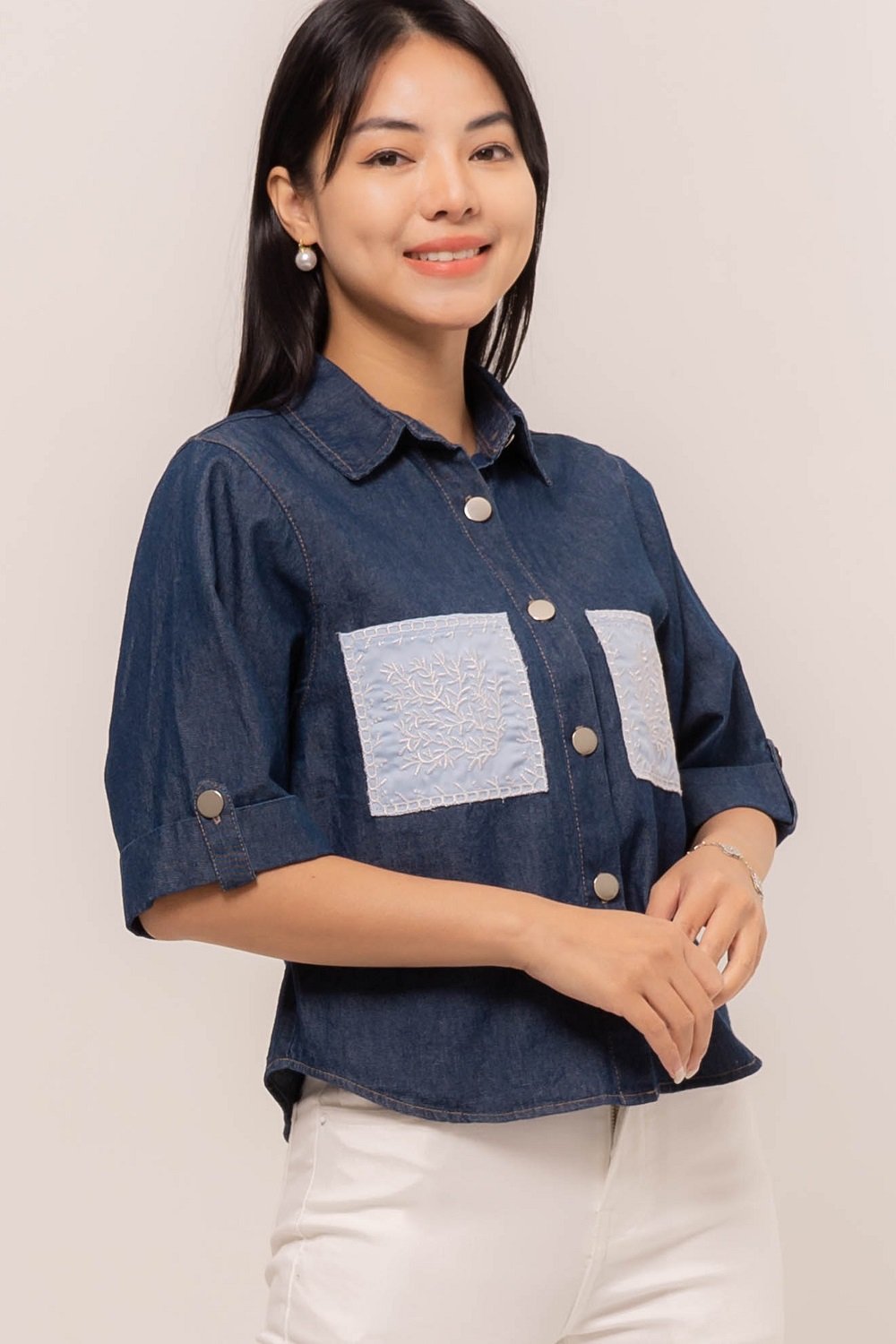 Pretty girl wear pretty clothes like our Aleecia Top! With its beautiful flower embroidery details on pocket, it adds a touch of sweet to your casual look