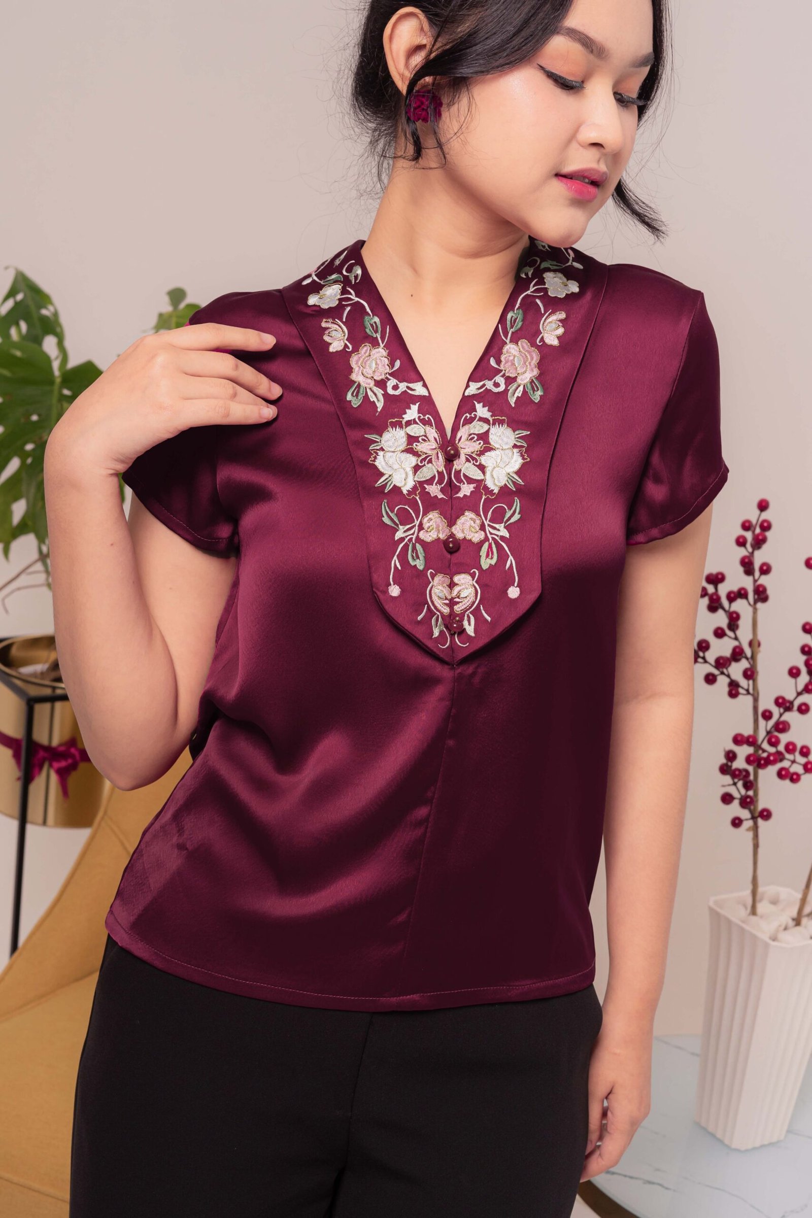XiCai Flower Embroidery Top CO7003