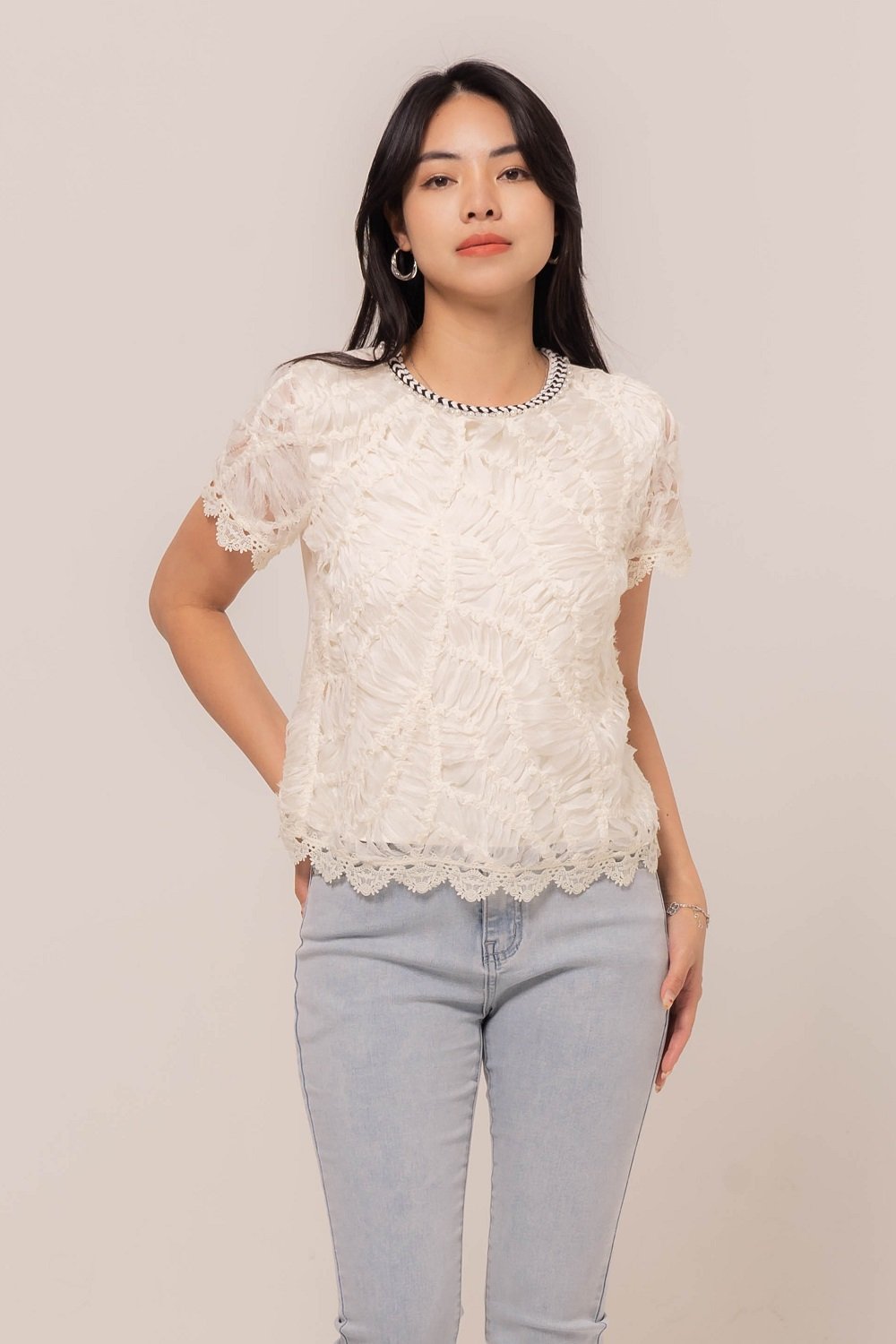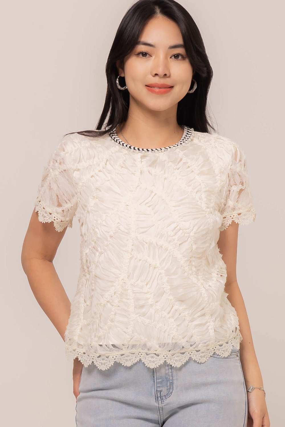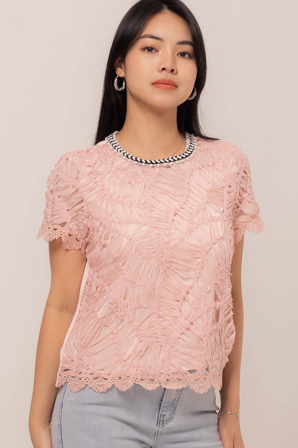 -Kerah yang menawan dengan sentuhan mutiara