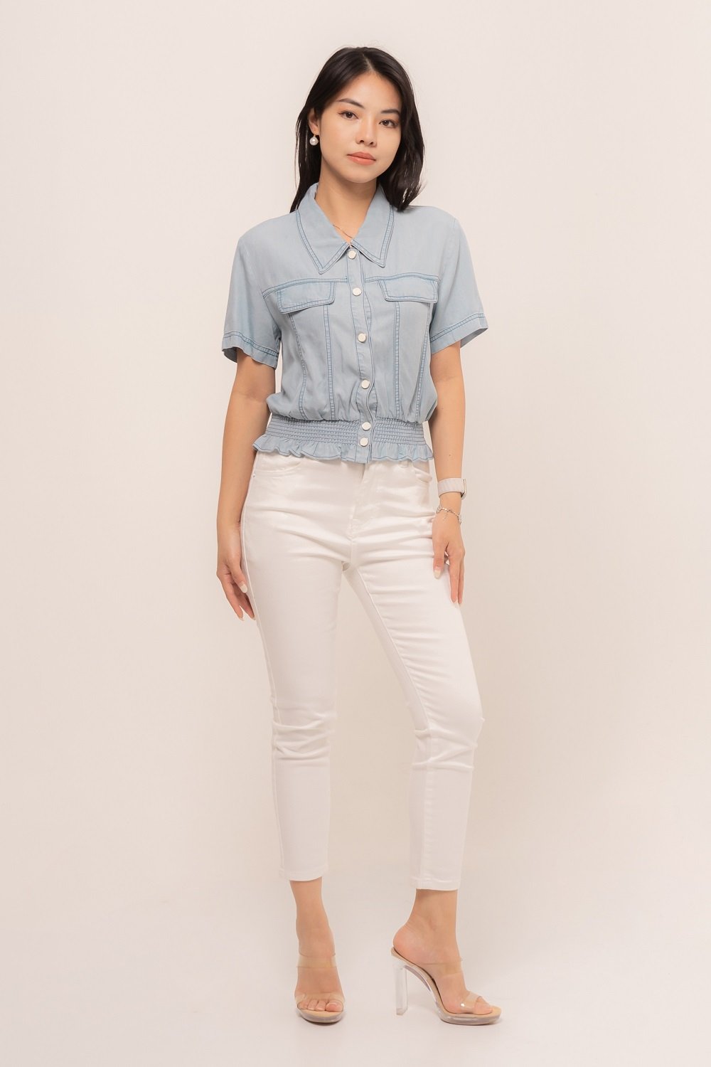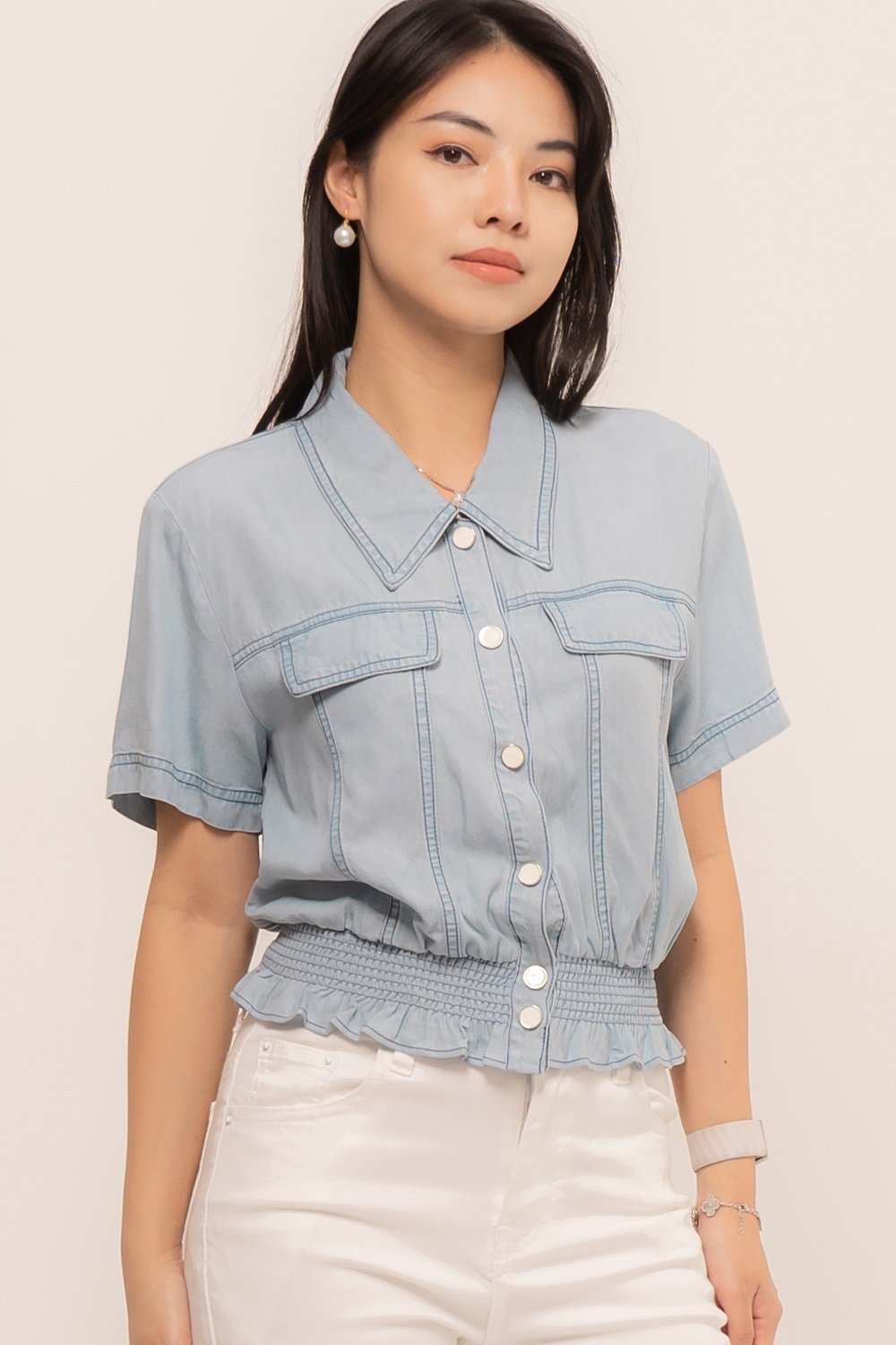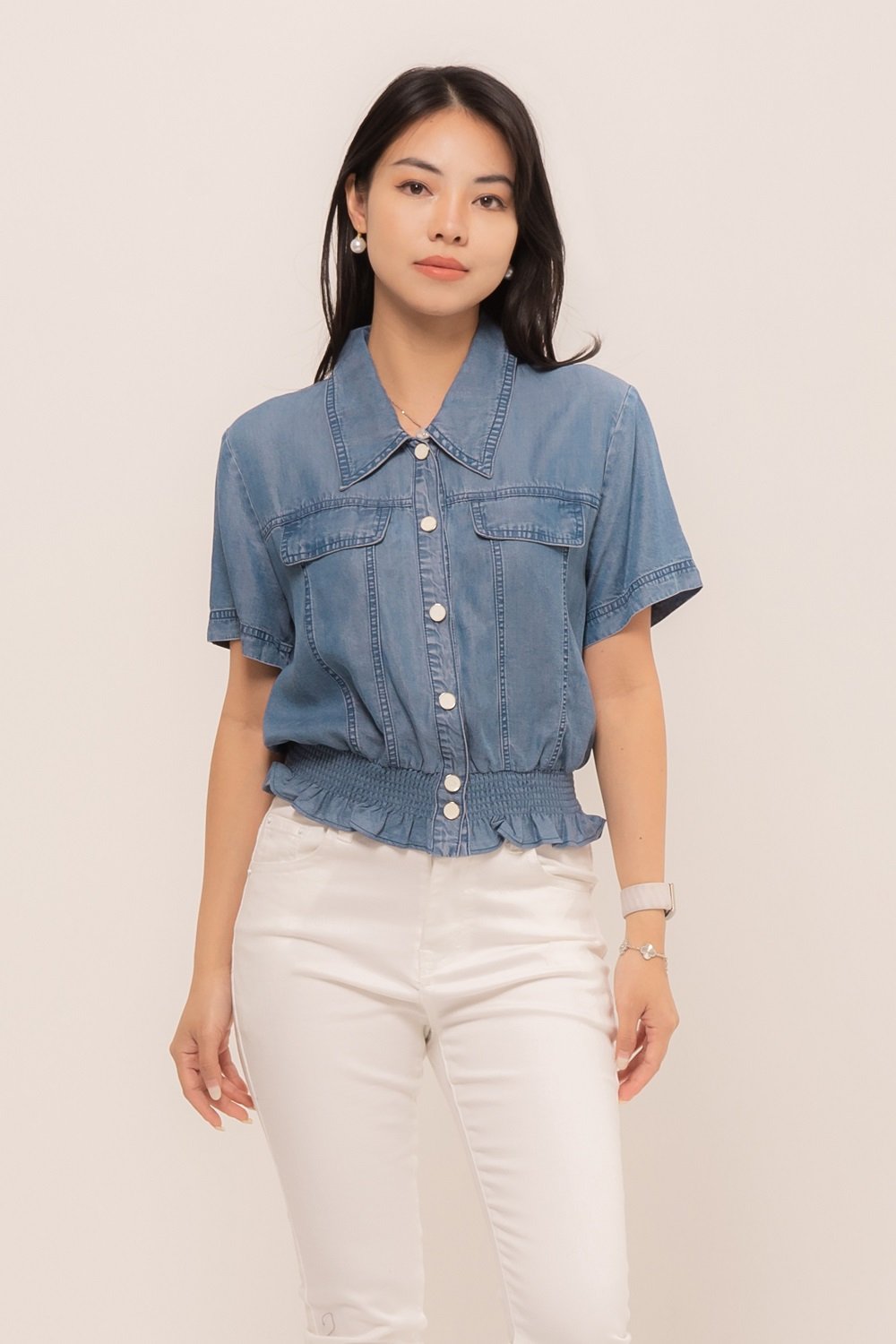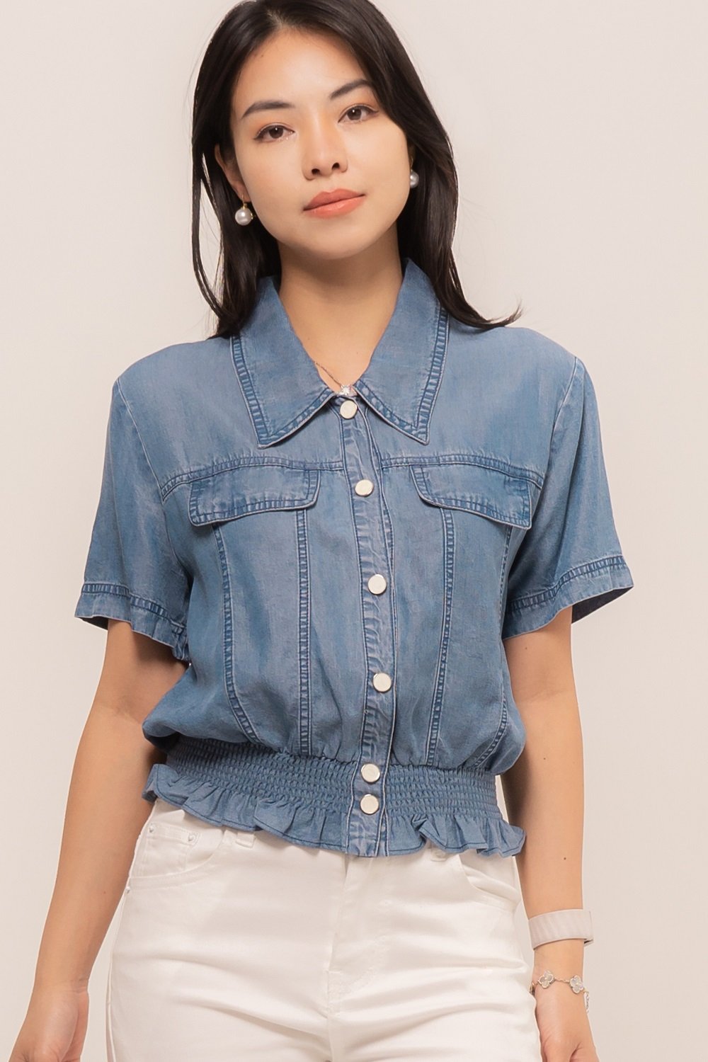 Wear something casual but make a statement everywhere with our Rhenata Top, featuring the sweet shirring at the bottom