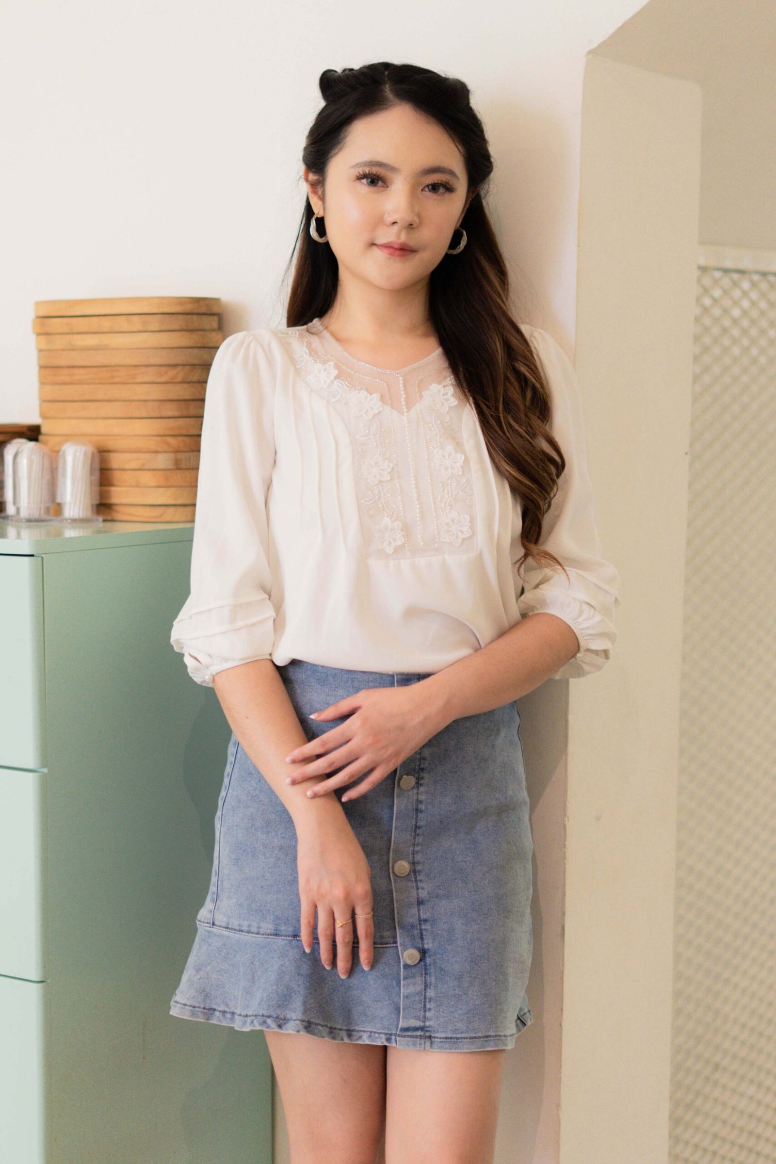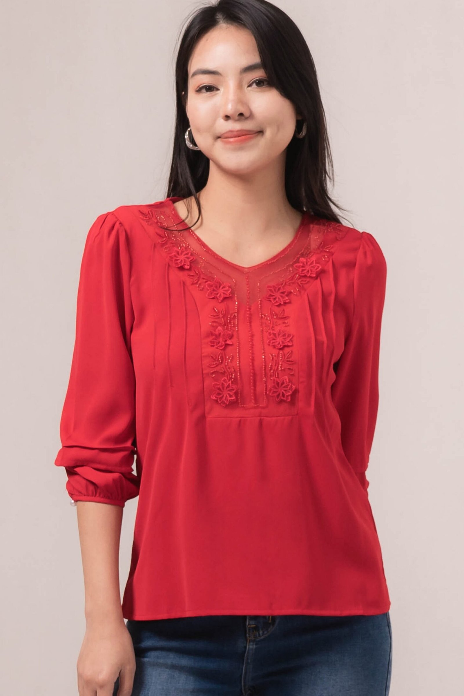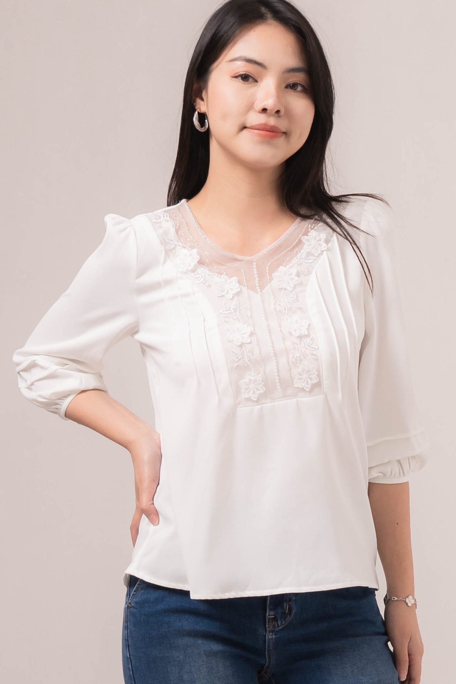 -Patch bunga bordir pada bagian dada