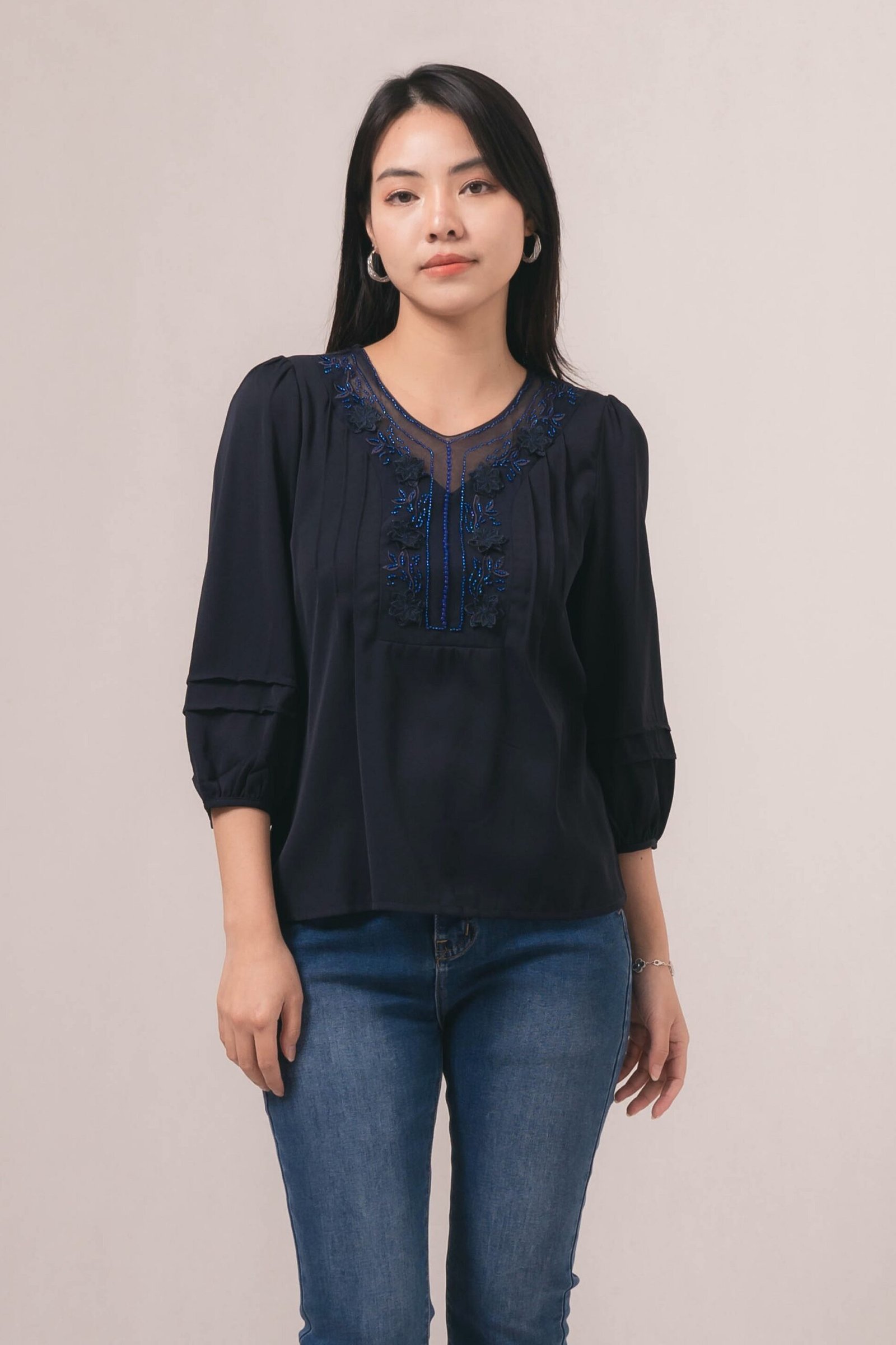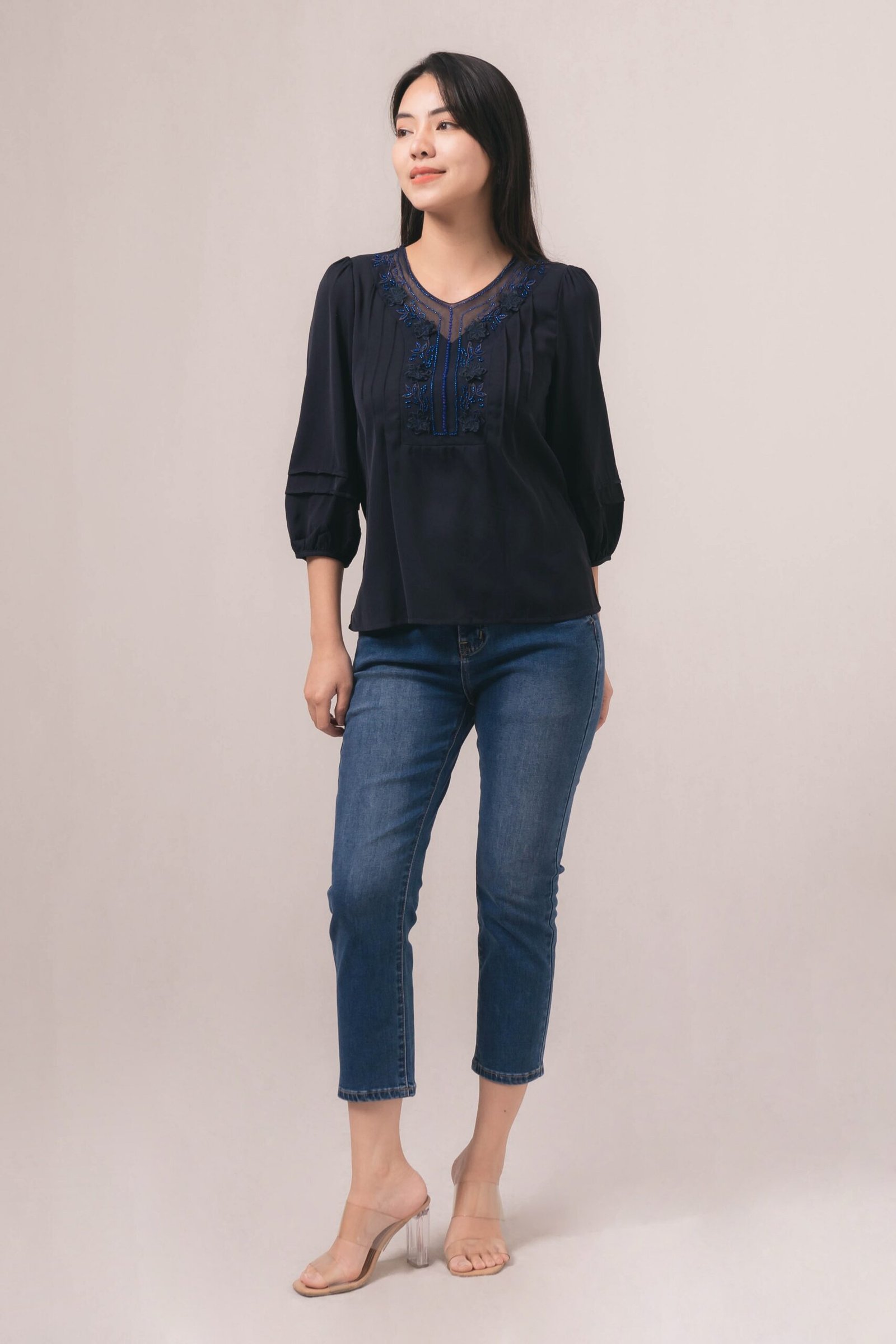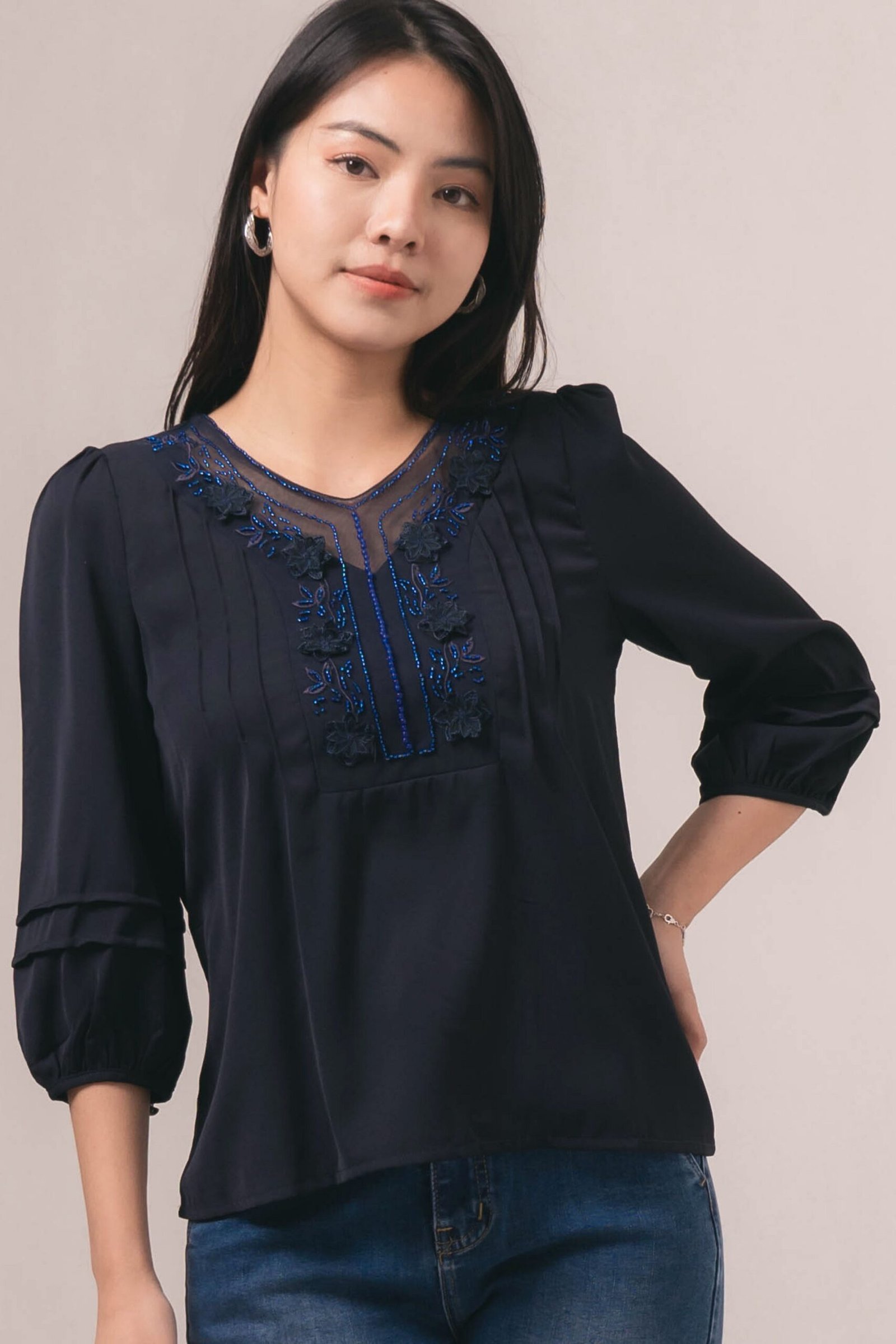 -Detail illusion pada kerah dengan payet elegan
