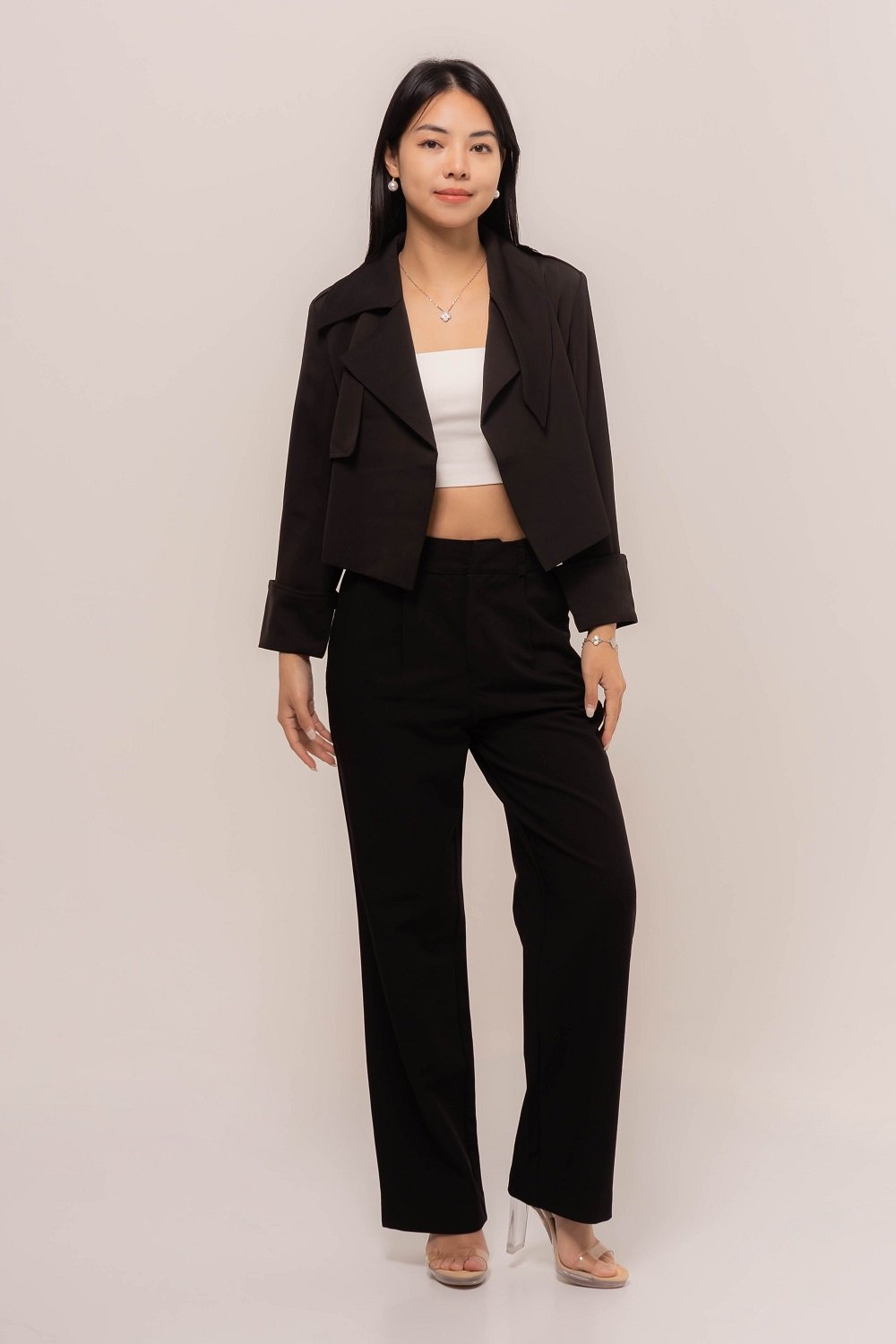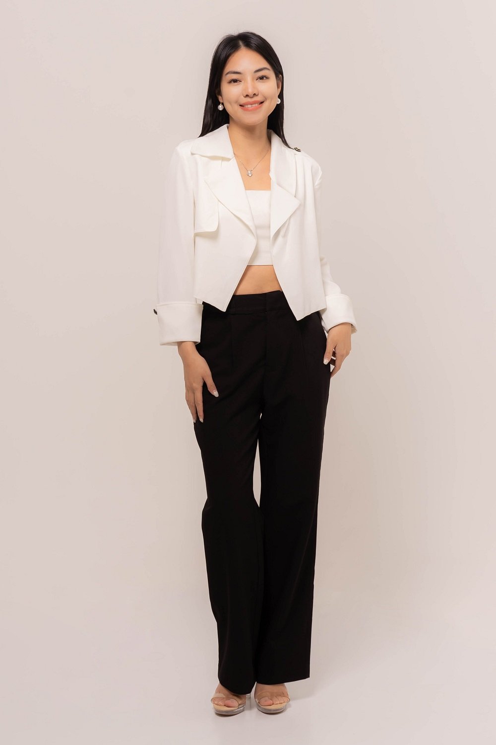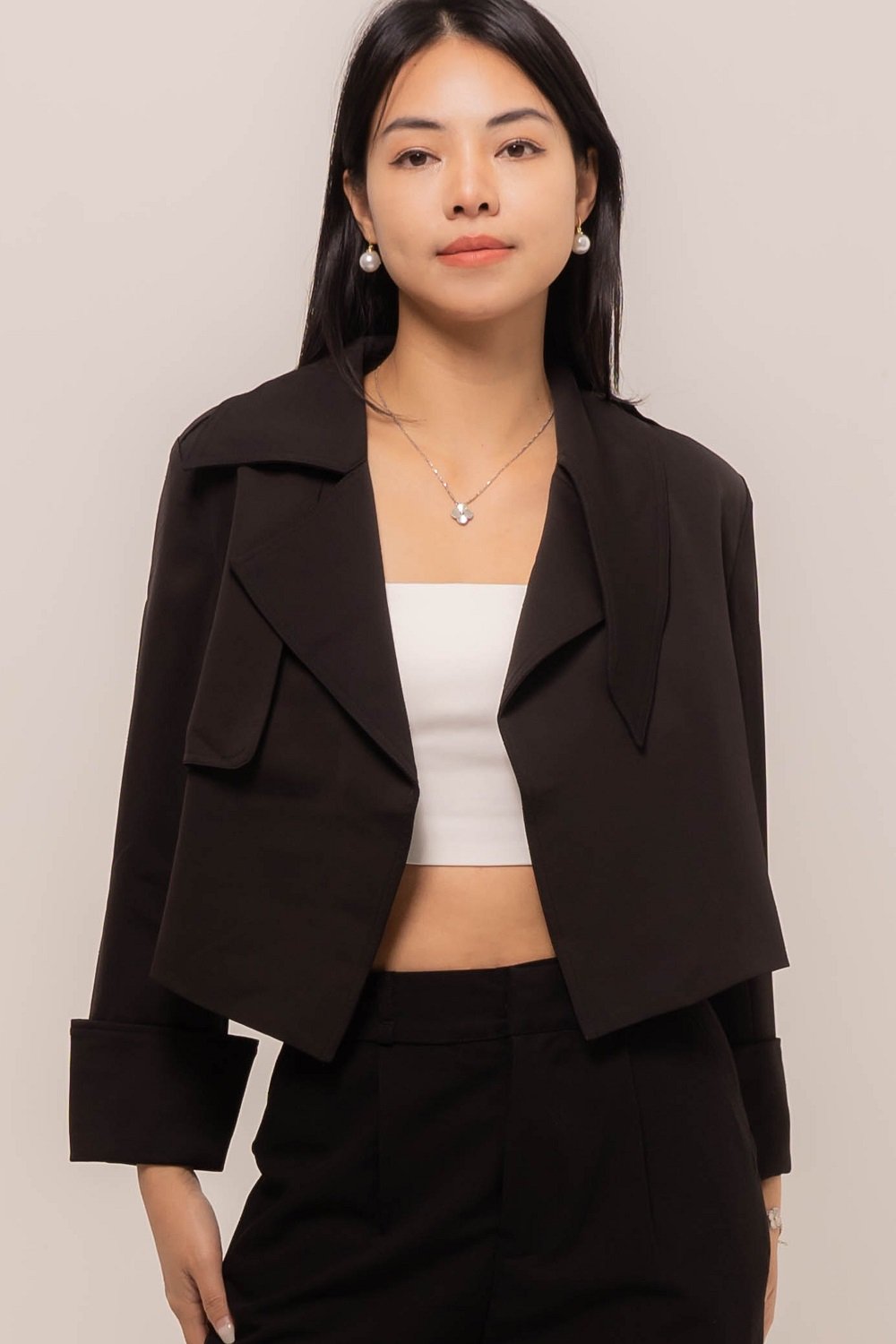 This cropped-length blazer has cuffed long sleeves feat asymmetrical collar that redefines sharp dressing, Serena Blazer