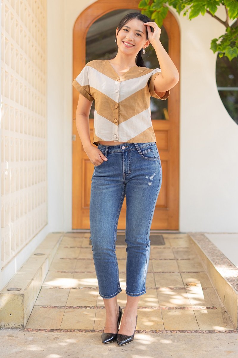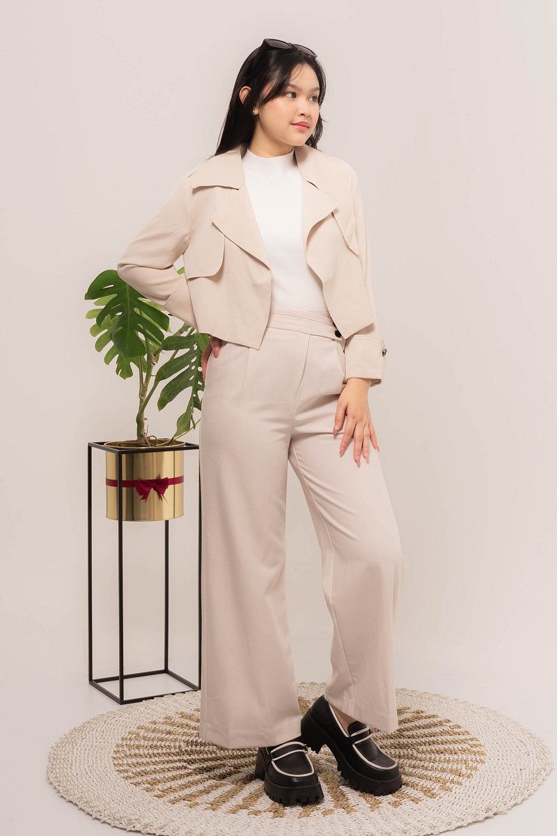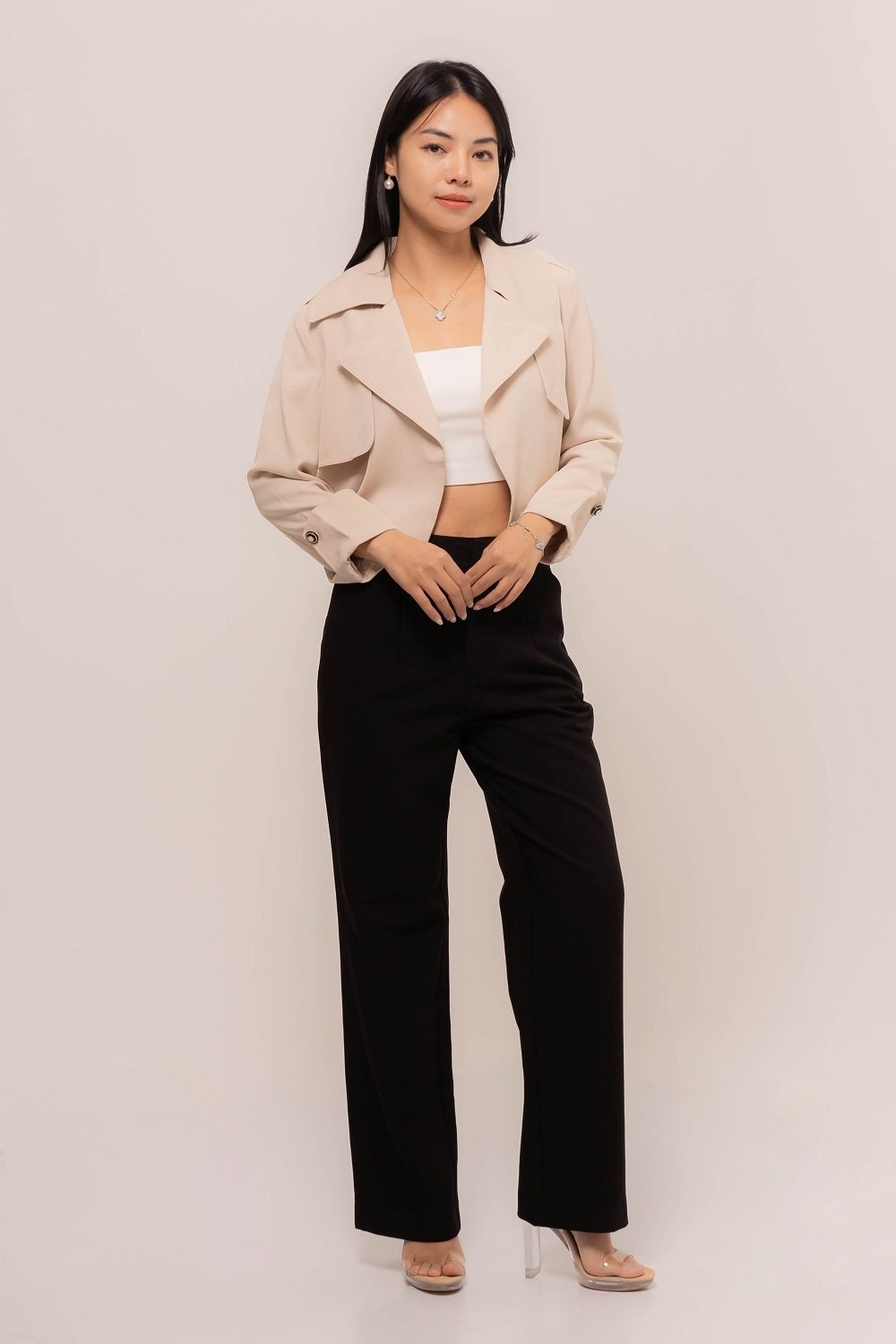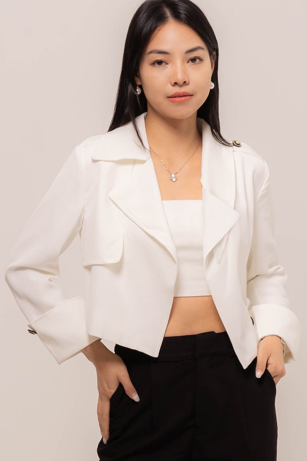 This cropped-length blazer has cuffed long sleeves feat asymmetrical collar that redefines sharp dressing, Serena Blazer