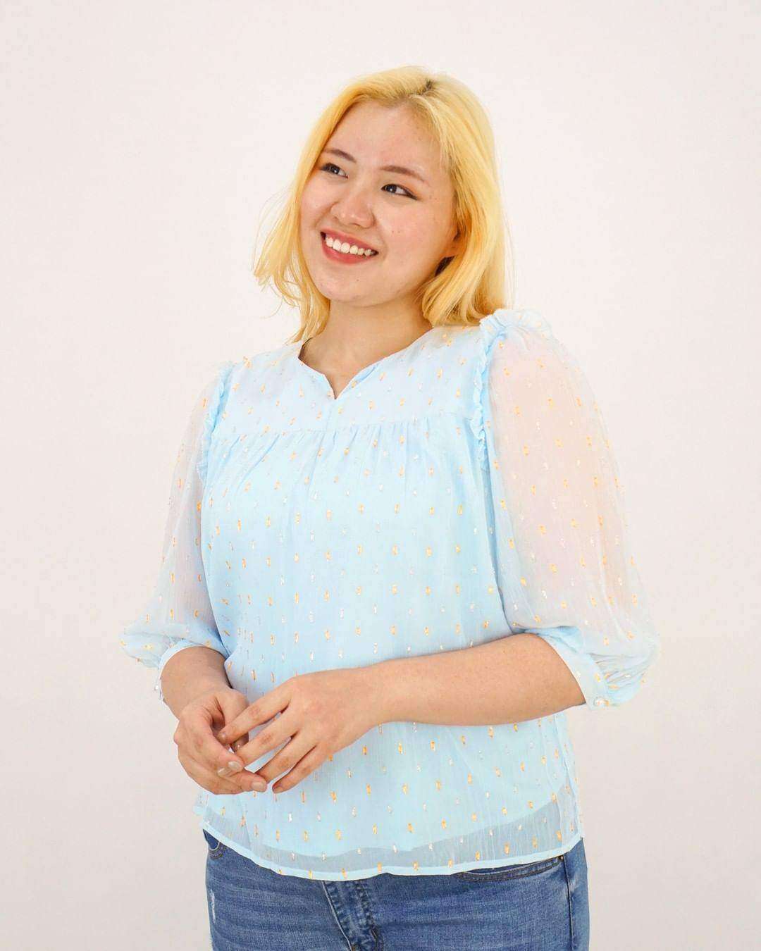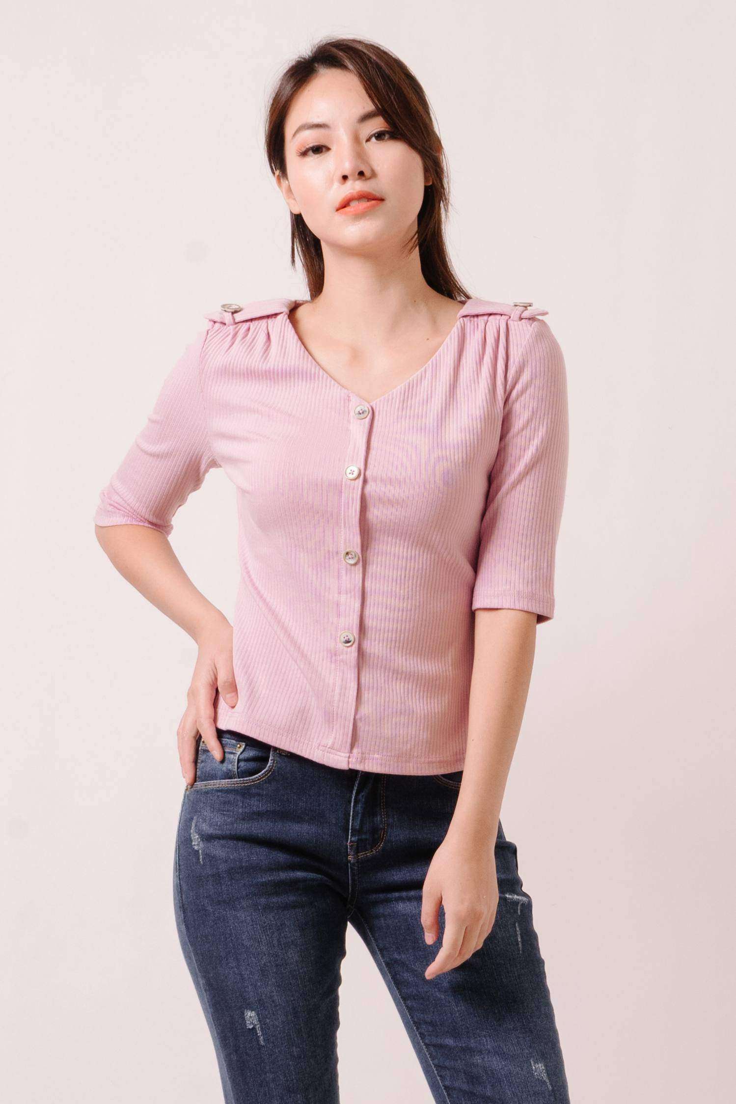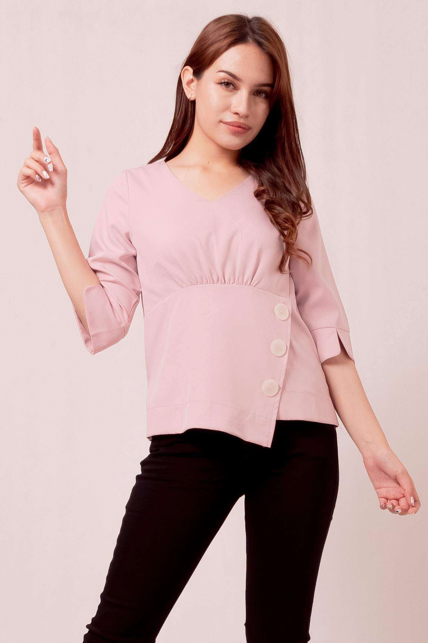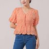 -Detail puff sleeves dengan v-neck yang menawan dan kancing depan variasi